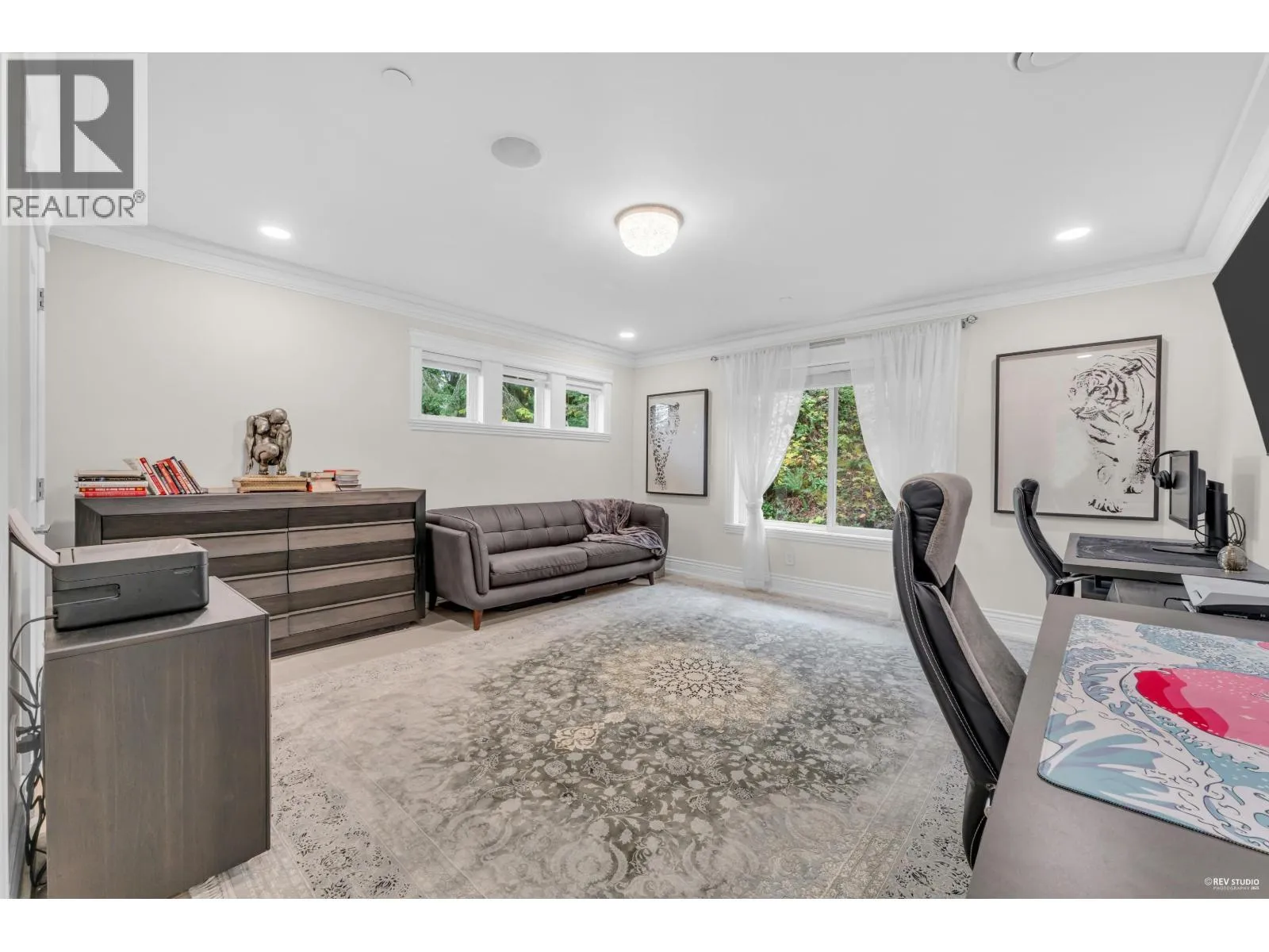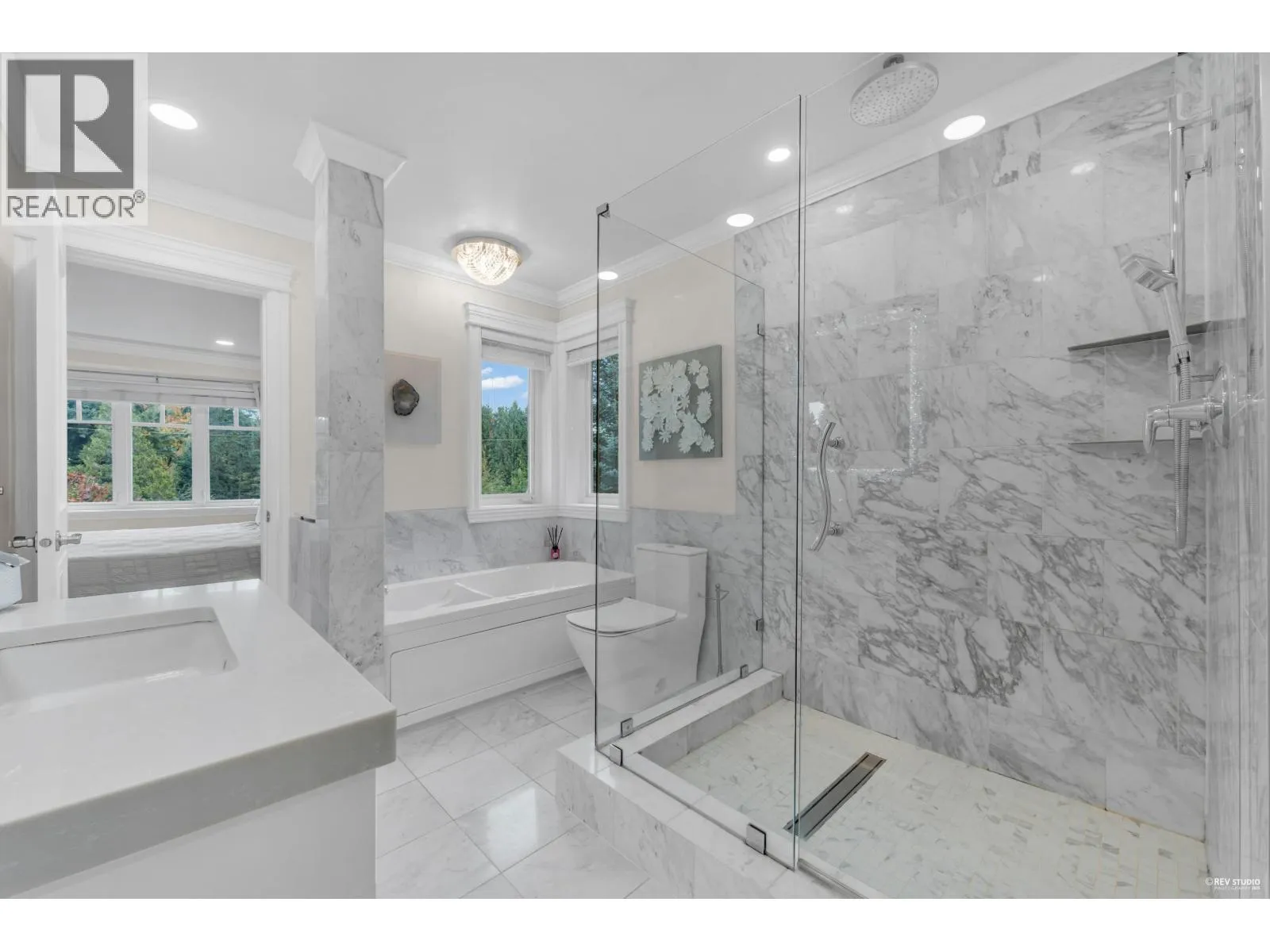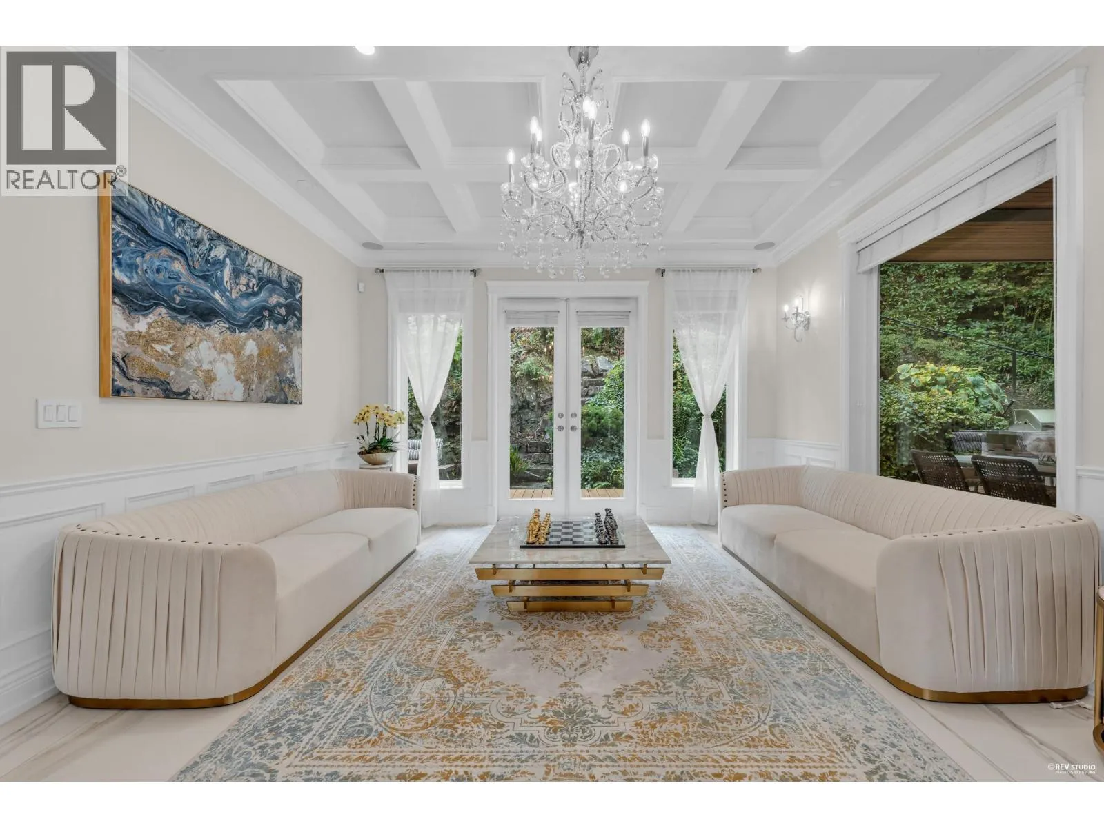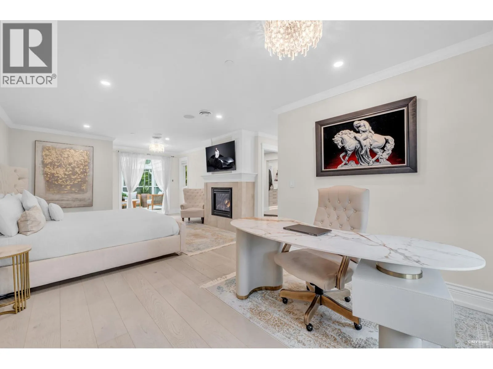 Experience refined luxury and modern elegance in this beautifully crafted residence. The main level features Italian-imported marble flooring. The open-concept kitchen showcases a striking central island, Miele and Gaggenau appliances, complemented by a fully equipped wok kitchen for added convenience. Upstairs offers four spacious bedrooms, including a lavish primary suite with a spa-inspired ensuite, a walk-in closet with clothing sterilizer, and direct access to a heated sunroom balcony. Additional highlights include custom LED lighting system, waterfall landscaping, and a mountain-view gazebo, four fireplaces, A/C, radiant heating, EV charging etc. The entertainment area on the main floor features a private entrance, providing excellent suite potential for rental or guests. This home perfectly blends modern luxury with thoughtful functionality. Conveniently located near top-ranked public schools, Park Royal shopping centre, and all essential amenities. (id:27476)