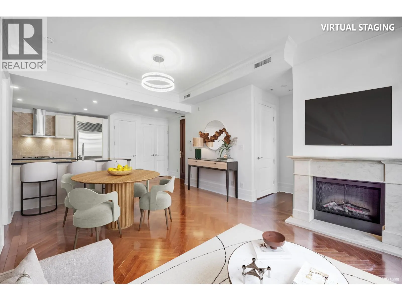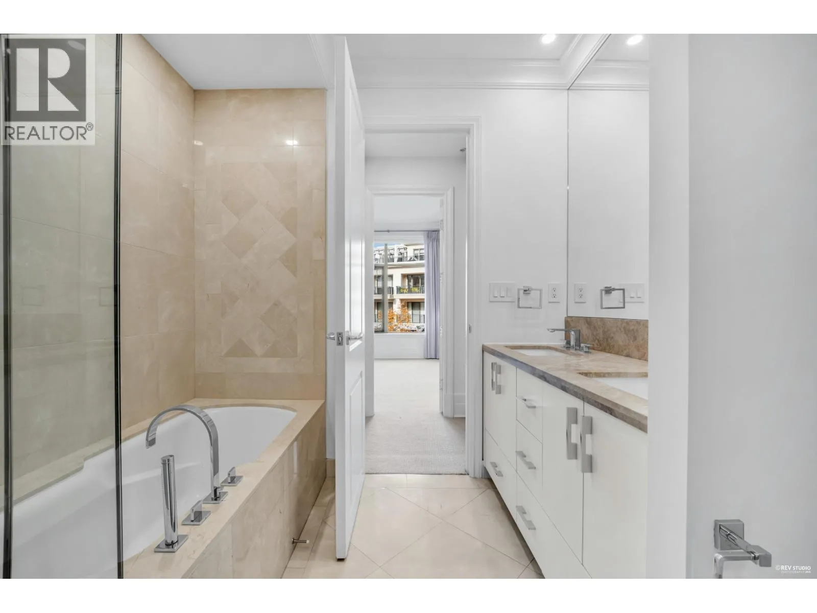 Discover this beautiful & elegant 2 bedroom, 2 bathroom home at Waters Edge. This coveted enclave welcomes you with a sense of luxury and community. Concrete construction, quality & timeless finishings, 10 ft ceilings, air con., chef's kitchen, Miele/Sub Zero app., new W/D, lovely eating area, herringbone h/w flooring, super master with spa like ensuite, custom closets & updates, inc. bathrooms. Great layout with bedrooms on either side. Concierge, impressive lounge, gym, sauna/steam. Exceptionally well maintained building, outdoor landscaping and esthetics to make one proud. Nestled along Capilano River and short stroll to Park Royal, restaurants, seawall, transit, trails & all the conveniences for a carefree lifestyle! Pets welcome. Easy and a pleasure to show. (id:27476)