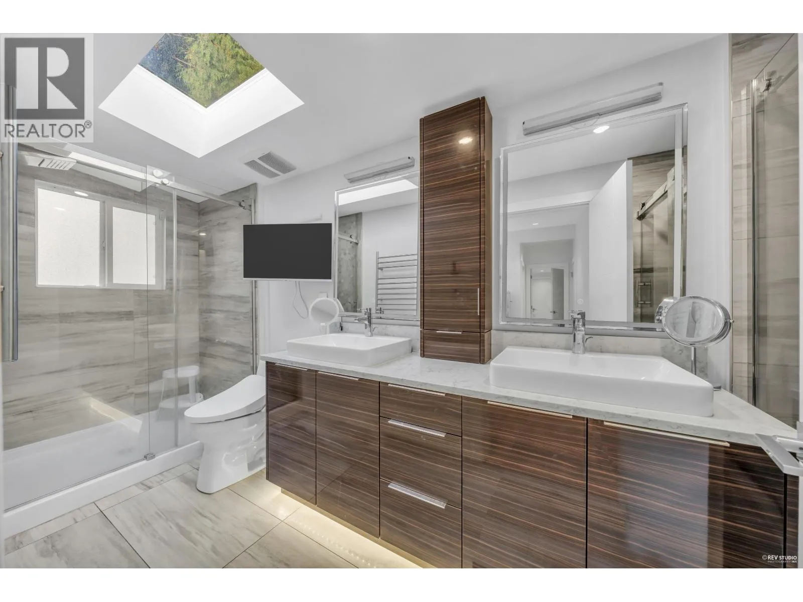 Welcome to Prestigious Cedardale! This beautifully updated family residence sits on a quiet, tree-lined street and showcases exceptional renovations with style and quality at every turn. The bright open-concept main level features newly built western & wok kitchens with granite counters, custom cabinetry, premium appliances, and elegant oak hardwood floors flowing through spacious living and dining areas.Step out to the new covered patio overlooking a private fenced backyard with lush gardens & a charming gazebo, perfect for family gatherings and summer entertaining. Major updates include new electrical 200A, roof & skylights, full repiping, floor heating, 360° security system, new bathrooms, windows & doors, and conversion of the garage into a bright family room. Added carport, 2 EV stations, new concrete driveway, RV parking, and glass-covered patio complete this move-in ready home. A perfect blend of modern luxury and timeless comfort close to Best Schools, Lions Gate Bridge, Park Royal & top-rated schools. (id:27476)