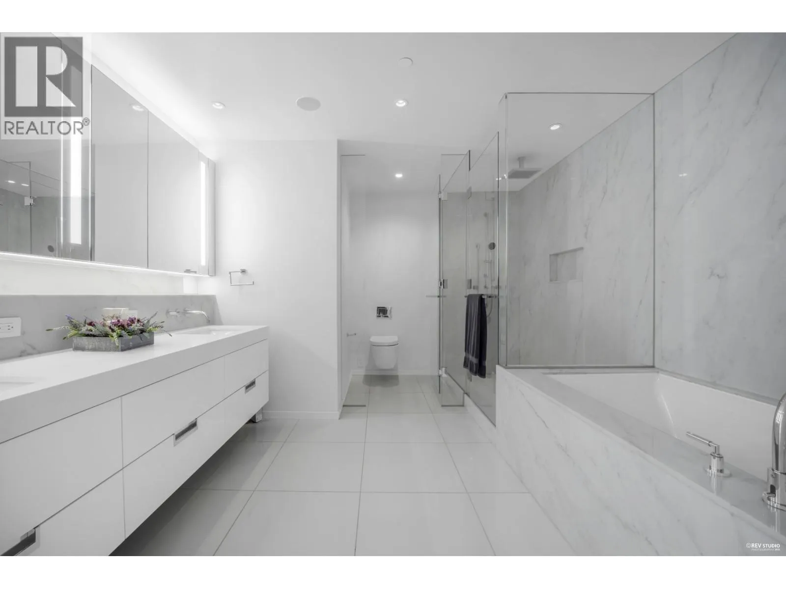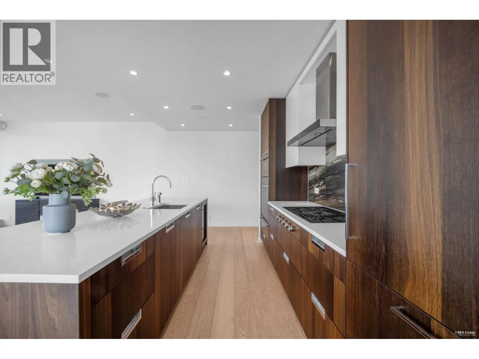 Experience luxury living at its finest in this stunning NE-corner sub-penthouse at Grosvenor Ambleside Phase I, offering breathtaking views of the North Shore Mountains and peek-a-boo ocean views from the expansive wrap-around balcony.This rare and thoughtfully designed floor plan features 9-ft ceilings, floor-to-ceiling windows, and sophisticated modern finishes throughout. The custom Snaidero kitchen is fully equipped with premium Wolf and Sub-Zero appliances. Both bedrooms are ideally separated from the main living area for exceptional privacy, with the spacious primary suite accommodating a king-size bed and offering a generous walk-in closet.Additional highlights include automated blinds, air conditioning, integrated sound system, private double garage, and 24-hour concierge service. (id:27476)