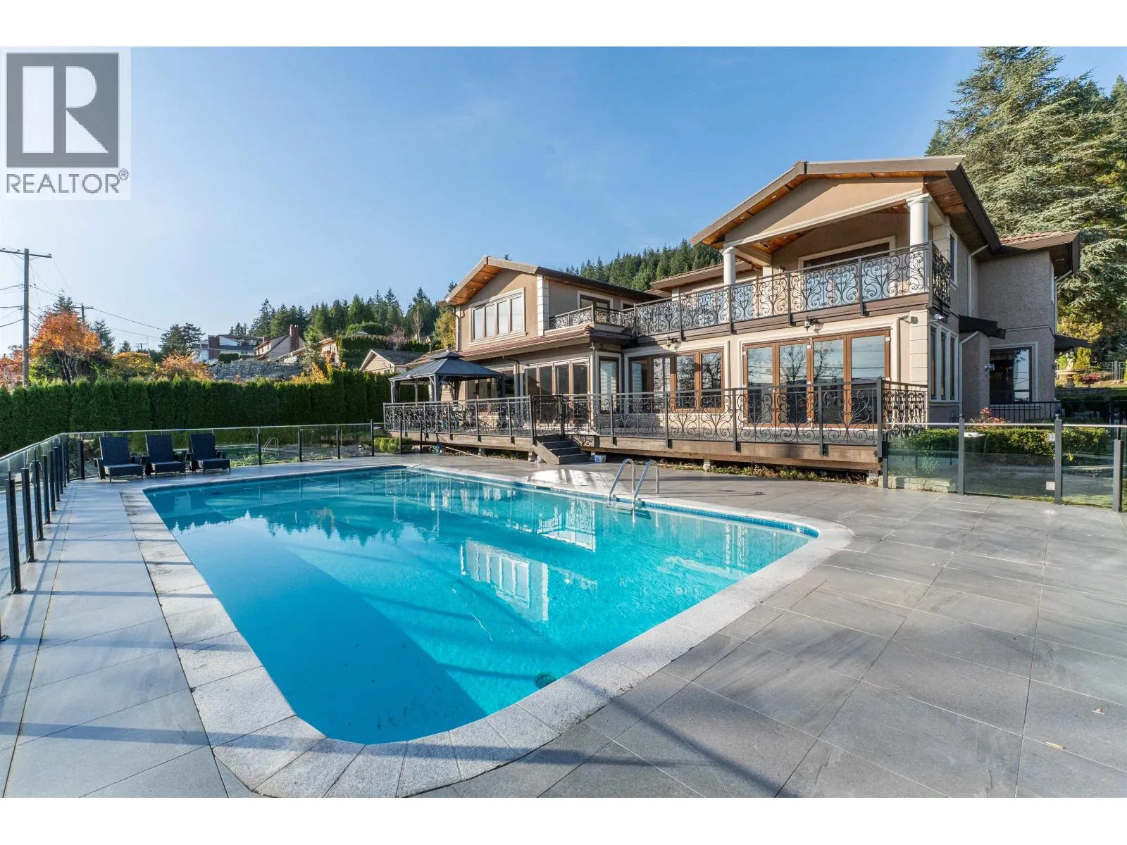 This grand-scale luxury estate in the prestigious British Properties defines elegance and modern comfort. Set on a 16,150 sq.ft. flat lot, it commands stunning panoramic views of the ocean, city, and mountains. With nearly 8,000 sq.ft. across three levels, it offers 7 spacious bedrooms and 9 bathrooms, all crafted with exceptional precision and detail. A grand marble foyer with Schonbek chandeliers leads to formal living and dining areas, while a gourmet kitchen with a wok kitchen-added during a city-approved 2019 renovation-combines function and refinement. Features include a resort-style pool, landscaped gardens, covered balcony, air conditioning, full exterior lighting, and a private two-bedroom in-law suite. A remarkable home of luxury, comfort, and panoramic views. (id:27476)