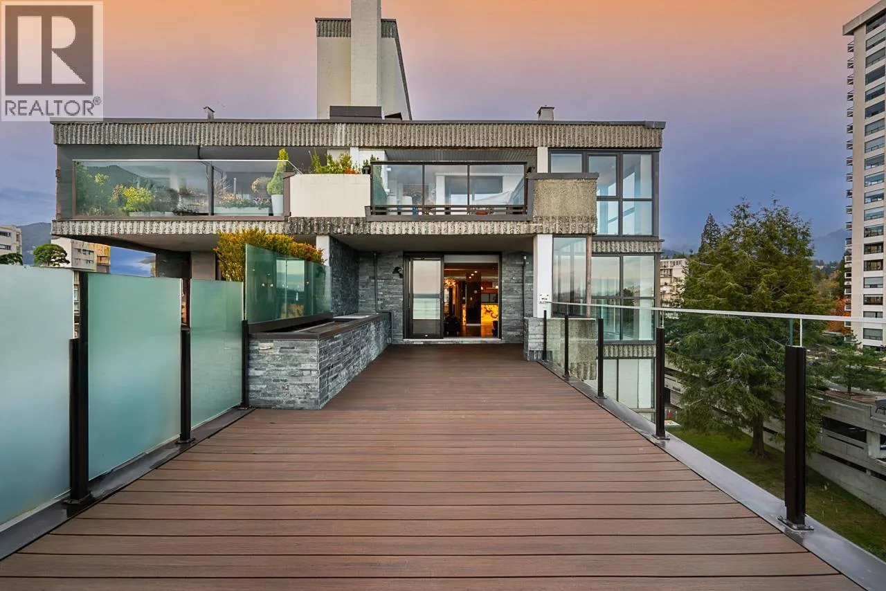 SENSATIONAL EXTENSIVELY RENOVATED 2-BDRM LUXURY SUB-PENTHOUSE WITH SPECTACULAR UNOBSTRUCTED LIONSGATE/STANLEYPARK/CITY VIEW FROM EACH AND EVERY WINDOW. Located in a boutique building with a completely renovated main entrance, this amazing EAST & SOUTH facing condo offers 1,480 sqft of SUMMER-TIME COOL living plus a private 452 sqft partly covered rooftop patio for a total 1,932 sqft of fabulous indoor/outdoor living. Features: spacious living room & dining area off the gourmet kitchen, bright & sunny solarium, office/flex area PLUS a large primary bedroom w/double-sink en-suite and walk-in, second bedroom and second full bathroom ALL OVERLOOKING THE STUNNING VIEW. Steps to West Vancouver's Sea Wall, ocean-side parks and beaches, Dundarave Village, Beach House Restaurant, Rec-Centre & more. (id:27476)