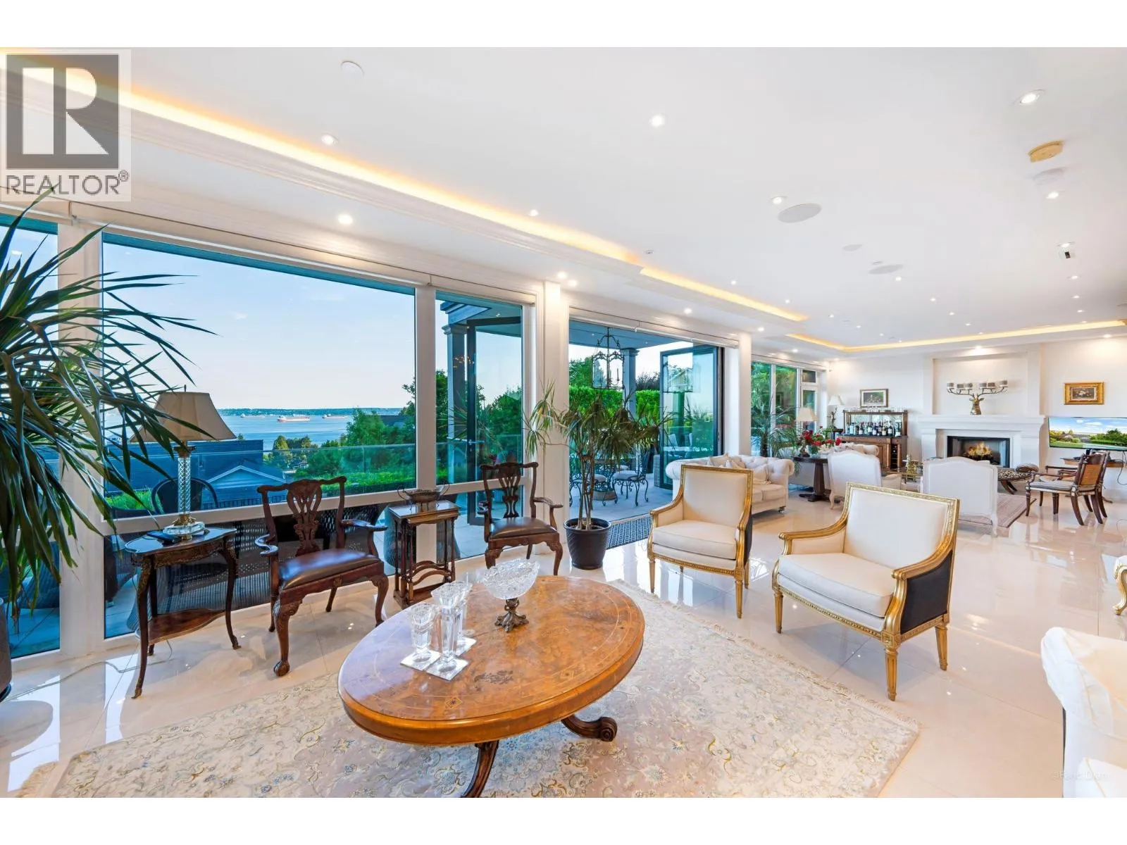 Presenting a masterpiece of architectural design and exceptional craftsmanship, this exquisite home is nestled in the prestigious Dundarave neighborhood, among some of West Vancouver´s finest properties. Spanning nearly 6,000 sqft, this luxurious residence offers five spacious bedrooms, six opulent bathrooms, and breathtaking panoramic views of the ocean, city, and iconic Lionsgate Bridge. The seamless blend of indoor and outdoor living is epitomized by expansive entertainment areas, including a year-round covered dining terrace, pool, fully equipped outdoor bar, fireplace lounge, and jacuzzi spa. Featuring impeccable materials, sophisticated finishes, and state-of-the-art technology, this home provides unparalleled comfort and security. With incredible stonework and a flat backyard. (id:27476)