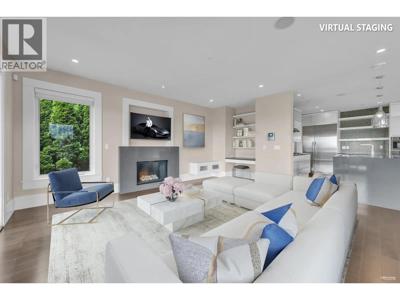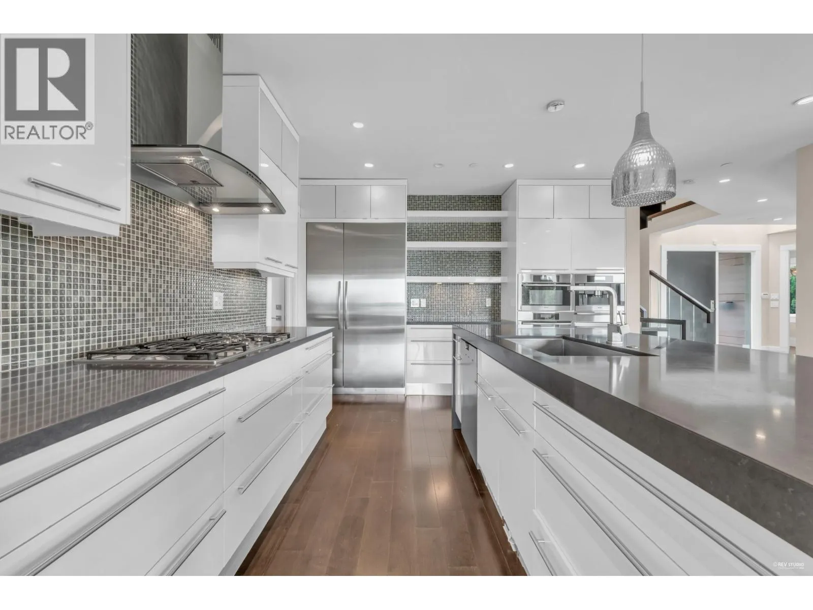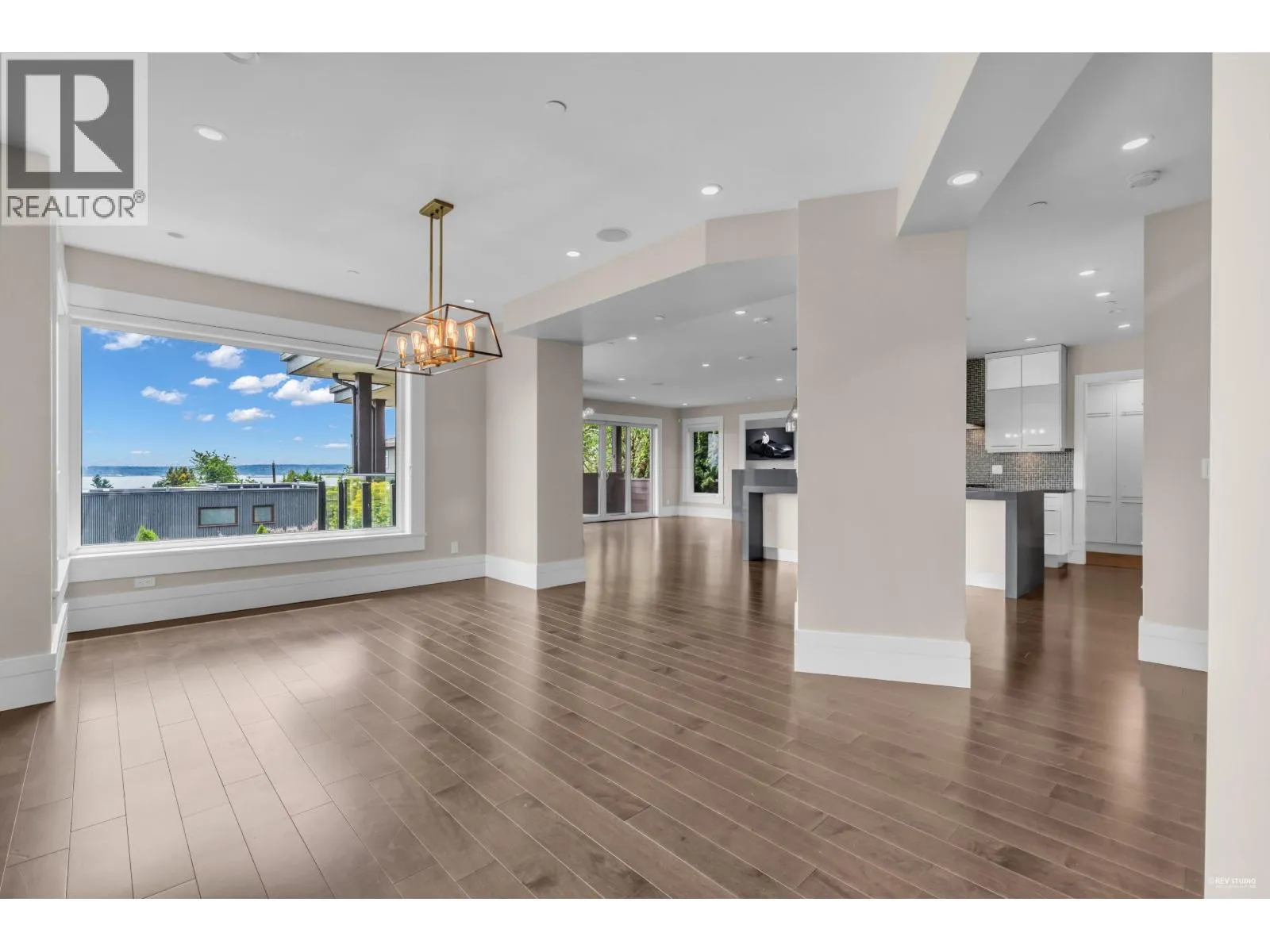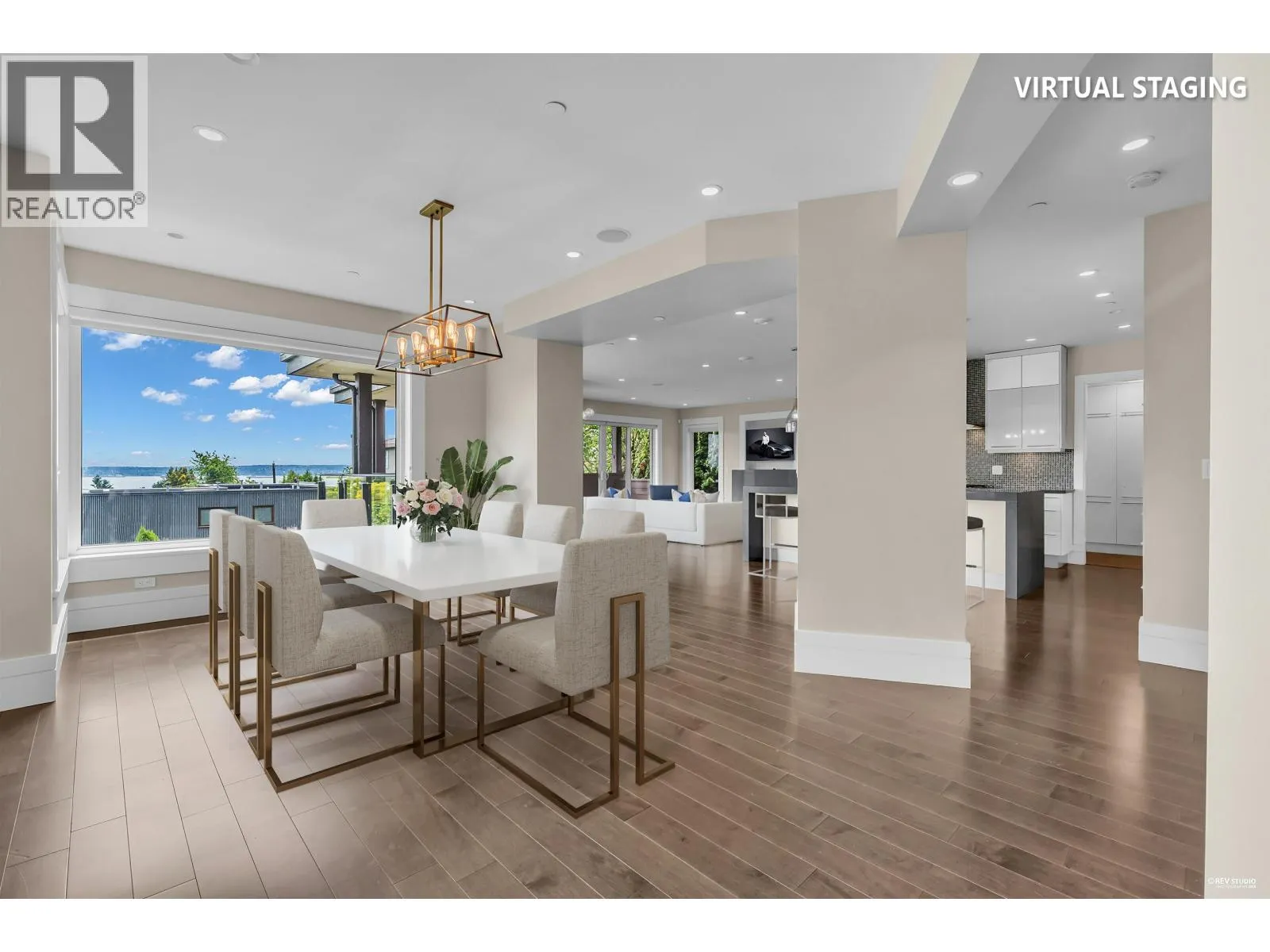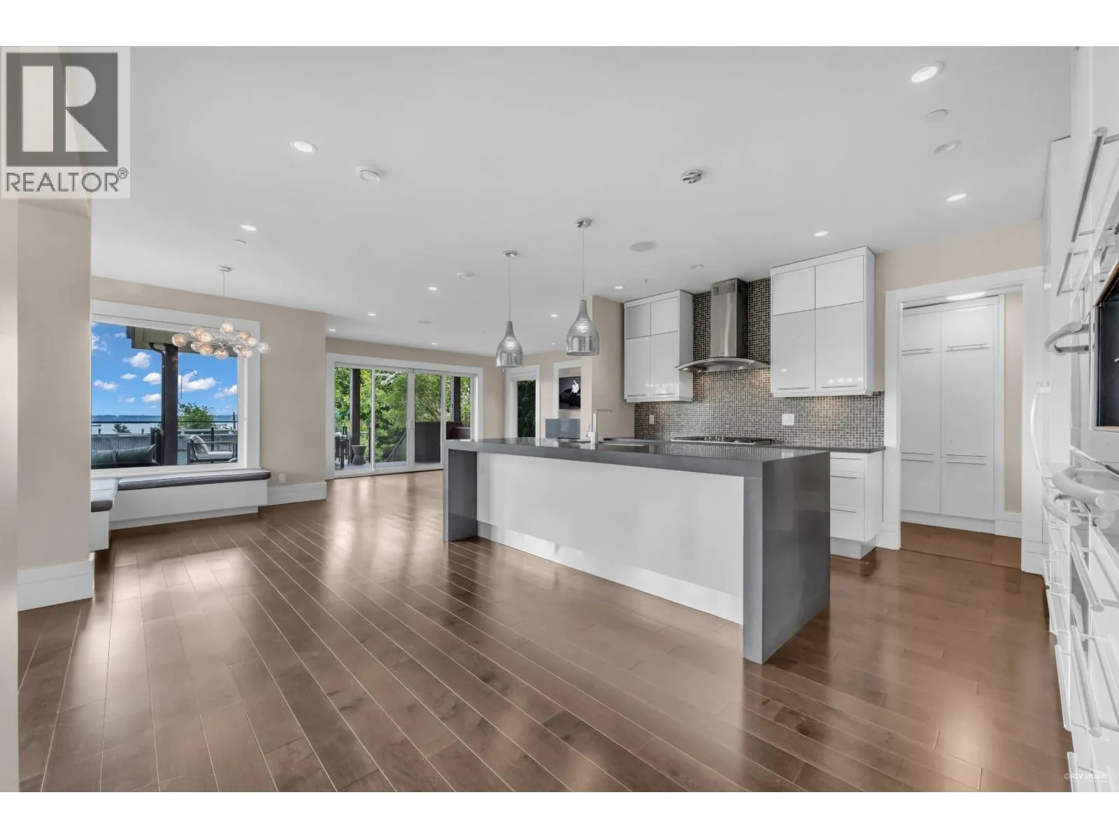 Perfectly positioned to capture sweeping ocean views, this beautifully designed three-level home by Mason Kent offers exceptional indoor-outdoor living in the heart of Dundarave. The expansive main floor is bathed in natural light and features high ceilings and rich hardwood floors. A spectacular chef´s kitchen flows seamlessly into the family room, dining area, and breakfast nook. Step out onto the large covered deck and enjoy panoramic water views. A striking floating staircase leads to three spacious ensuite bedrooms, including a luxurious primary suite with a walk-in closet, spa-like bathroom, and private ocean-view balcony. The lower level offers incredible versatility with a private media room, a fourth bedroom, and a bright walk-out recreation area complete with a summer kitchen, ideal for guests or extended family. Just steps to top schools, shopping, and the beach, this is West Vancouver living at its finest. Open House: Sunday, Dec 21st, 2-4pm (id:27476)
