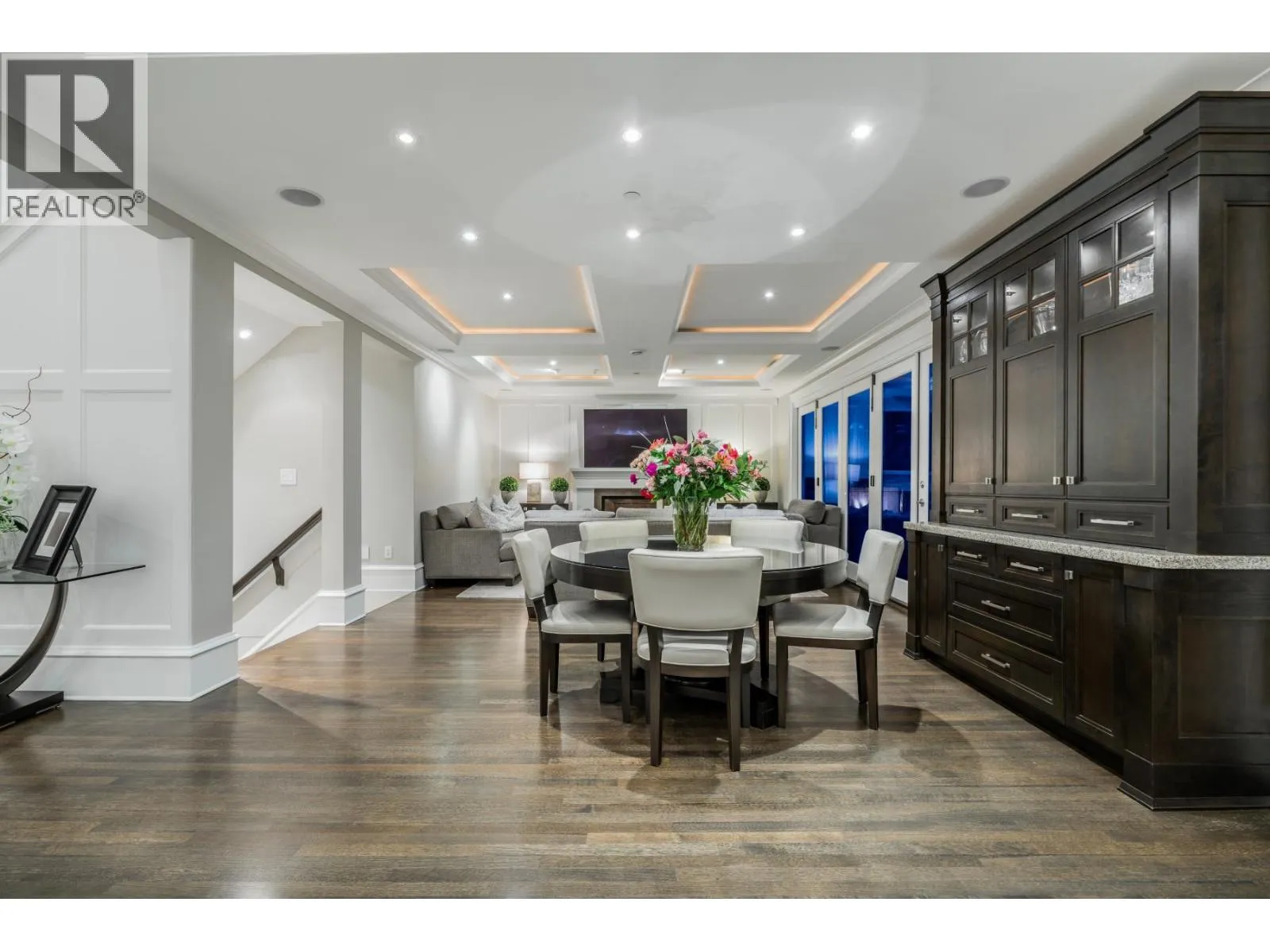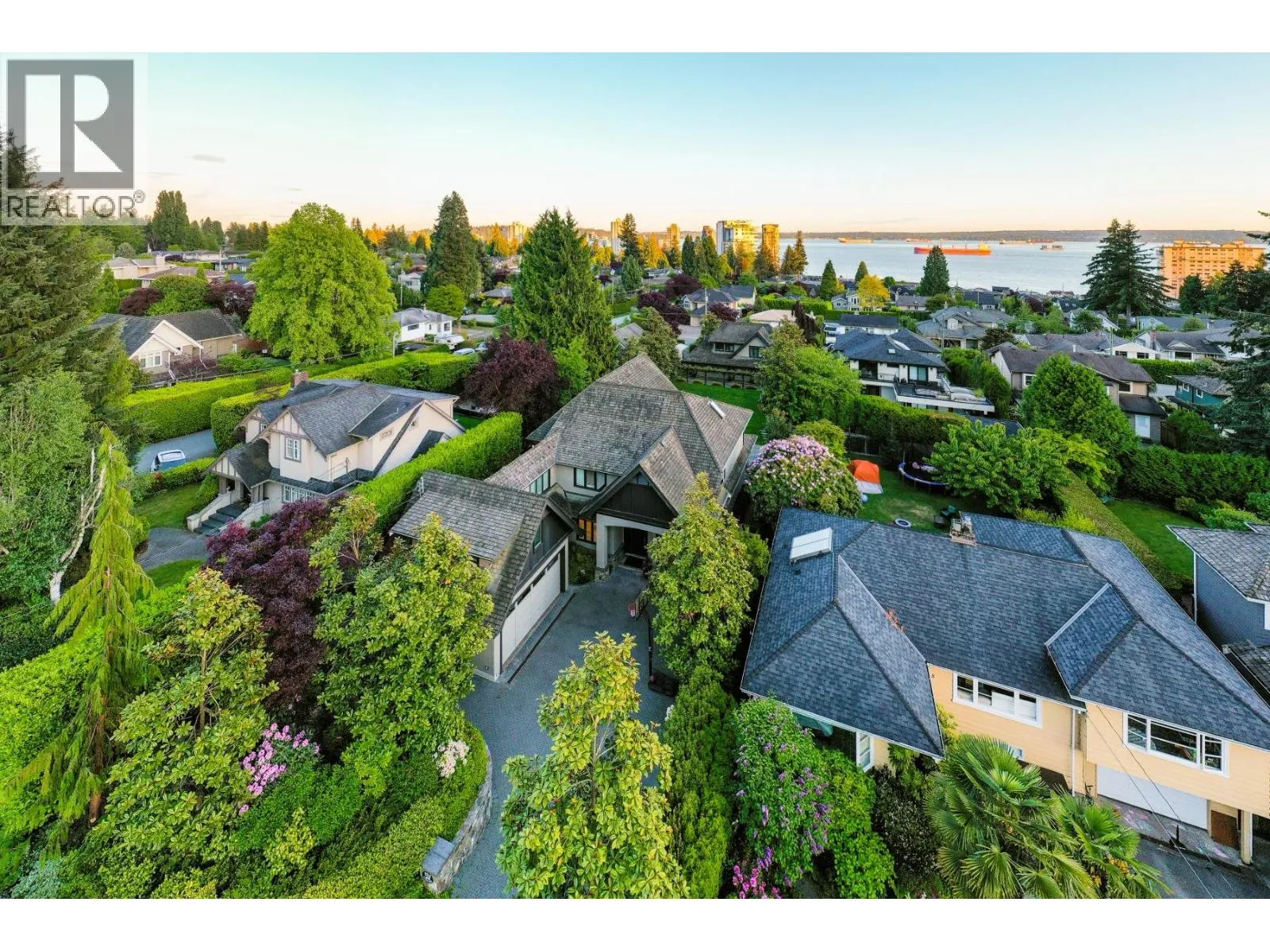 Discover one of the finest and most elegant homes in Dundarave, perfectly situated on one of the area´s most coveted streets. This custom built residence showcases exceptional craftsmanship and an attention to detail rarely seen. Set on a flat 60' x 132' southside lot, the property offers 5,401 sq. ft. of sophisticated living space, plus an additional 540 sq. ft. attached garage/storage area. The main level features a beautiful living room and a gourmet kitchen with a casual dining area that opens through eclipse doors to a stunning, covered BBQ patio. Outside, enjoy over 1,500 sq. ft. of sun-drenched outdoor living complete with a pool, hot tub, outdoor shower, and a level lawn area-perfect for entertaining. Upstairs are four generous bedrooms, each with its own ensuite. The expansive primary suite includes a large walk-in closet and a luxurious 6-piece spa-inspired ensuite. This trophy property is a must-see, offering air conditioning, a home gym, and a wine cellar. (id:27476)