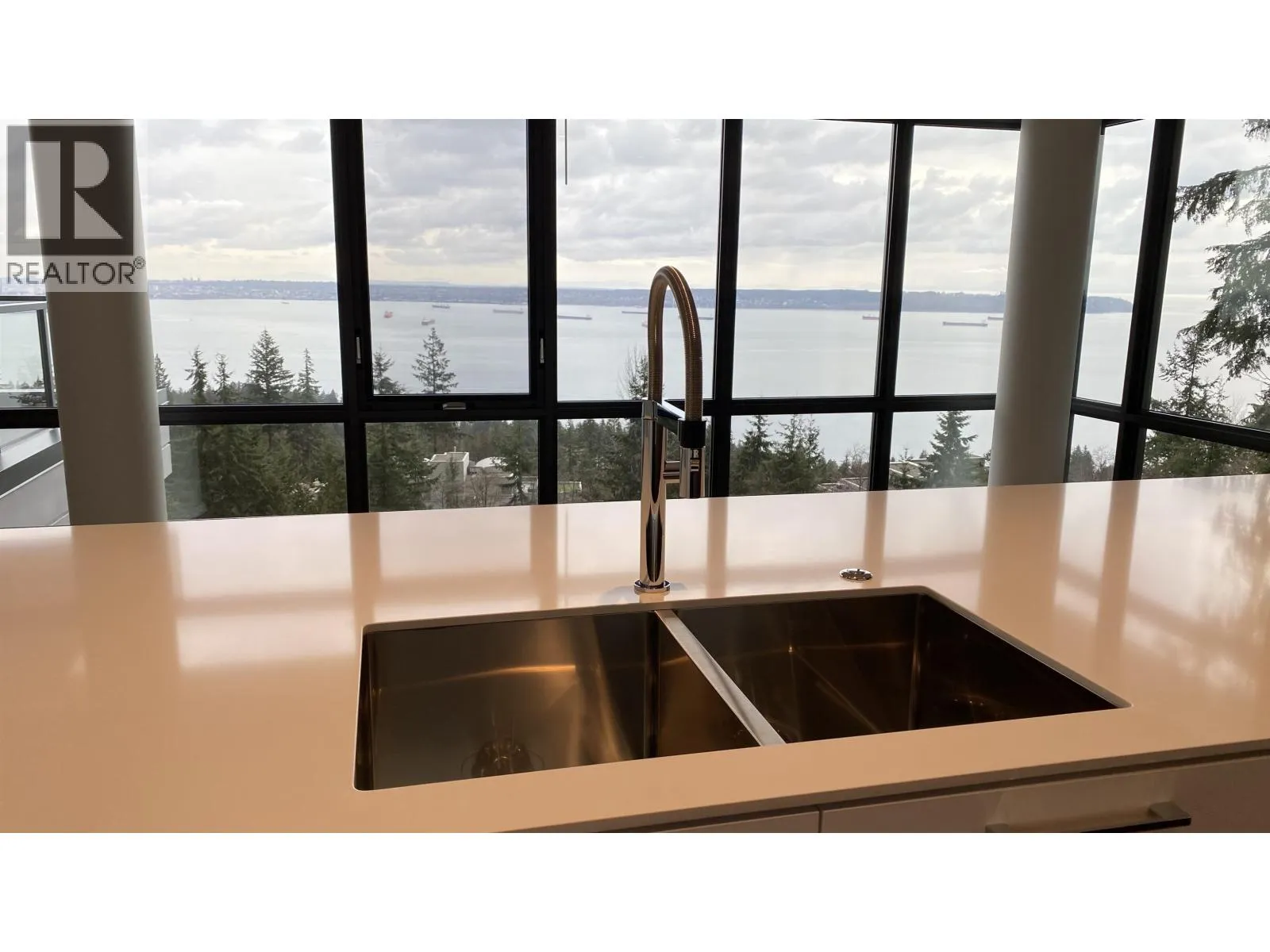 A rare opportunity to live in one of West Vancouver´s most exclusive modern residences. Perched high above the city, this high-floor, sub-penthouse, 3-bed, 3-bath home offers complete privacy in the forest combined with sweeping views of Burrard Inlet, Downtown, Kitsilano and UBC. Full-height windows bring the outdoors into every room - a breathtaking experience day and night. A premier mountainside neighbourhood just minutes to Park Royal, private clubs, Cypress Mountain skiing, hiking and nature trails - and walking distance to Mulgrave School, making this an exceptional choice for families wishing to pair luxury living with top-tier education access. Stunning architectural design of outdoor covered pathways leading to this home, nestled in the woods. (id:27476)