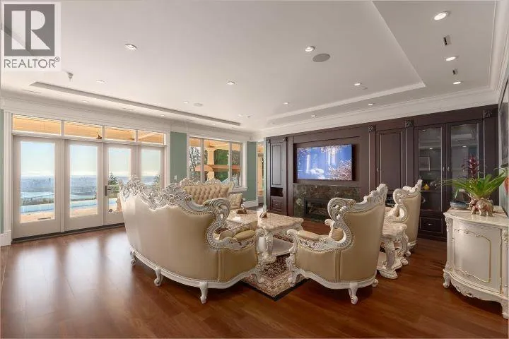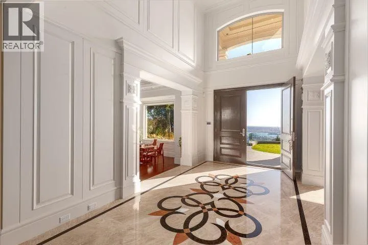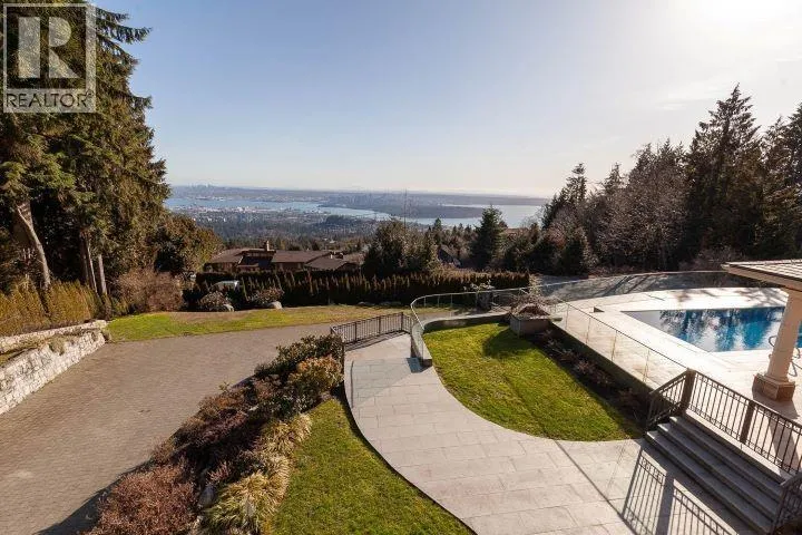 his extremely elegant luxury home with Panoramic Ocean view in British Property. This mansion perfectly sited on 26,237 SF level lot, 200' wide ocean & city view. Excellent layout, spacious hallways & bedrooms. Top workmanship, gourmet kitchen, over sized wok kitchen, exquisite moldings, walnut & marble slab flooring, granite counters. Highlights including 7 bedrooms, 10 baths, 42' deep foyer, formal LR & DR, Den, stunning KITCHEN merging to nook & huge family-room opening to covered porch & infinity outdoor pool perfect for entertainment. Fabulous Master w/sittting area, grand ensuite & private decks. Basement is entertainer's delight billiard recreation room, home theatre, wet bar & wine room, 4-car garage. Close to Chartwell School/Collingwood School/Mulgrave School. (id:27476)