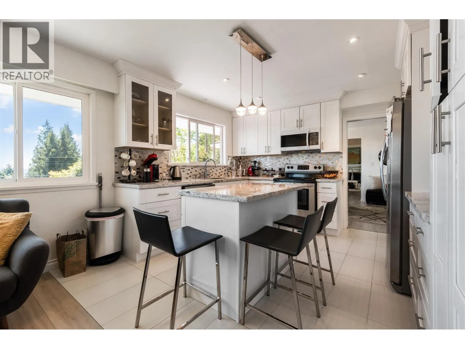 Breathtaking panoramic views from this fully renovated home, perched high on a quiet street in West Vancouver. Set on a 12,143 sq.ft. (88 x 137) lot, this 3,200+ sqft residence offers sweeping ocean, city, bridge, and mountain views. Spent $200k+ on renovations include upgraded electrical, lighting, all interior doors/hardware, fully renovated primary ensuite, staircase and flooring, plus new appliances (washer, dryer, fridge, range hood, cooktop for upstairs). Additional upgrades include new walkway, and windows. The flexible layout features 3BR/2BA upstairs and a 2-3BR/1BA suite below, ideal for extended family or mortgage helper. Minutes from West Van Secondary, Ridgeview Elementary, Hollyburn Country Club, less than 10-min from Capilano Golf course, Ambleside and Park Roy. (id:27476)