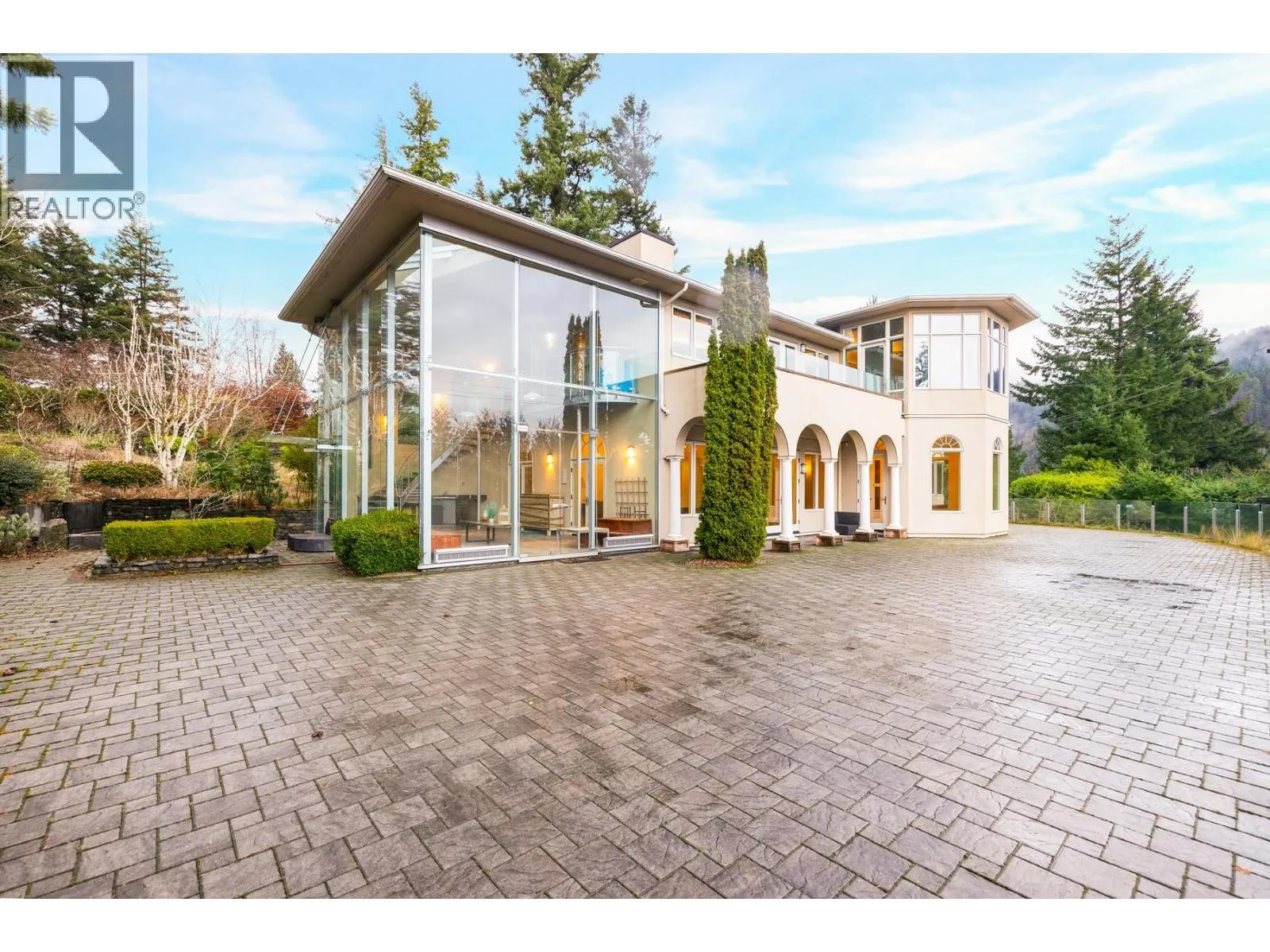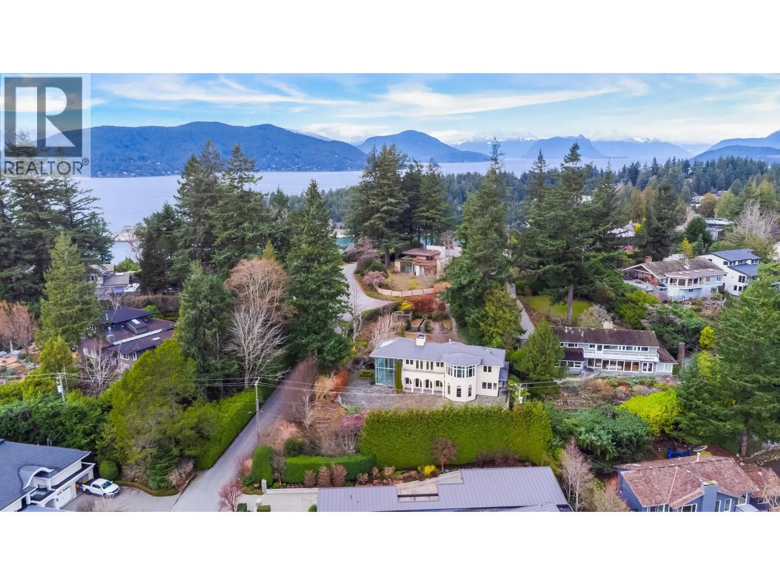 An estate-sized offering with exceptional privacy, expansive grounds, and coveted south-facing ocean views in a prime West Vancouver location. Situated on a 19,602 sq.ft. lot, this custom-built 2005 Mediterranean-style residence showcases concrete, steel, and wood construction, highlighted by a dramatic glass atrium and elevator access across three levels. The spacious floor plan includes six bedrooms, five bathrooms, a recreation room-ideal for customization or extended family living. The property features existing water elements, open grounds with a level lawn, and a private driveway leading to an oversized double attached garage. Just steps from Larson Beach, Gleneagles Recreation Centre, schools, and golf. An exceptional opportunity on a premier property, offered well below assessed value. (id:27476)