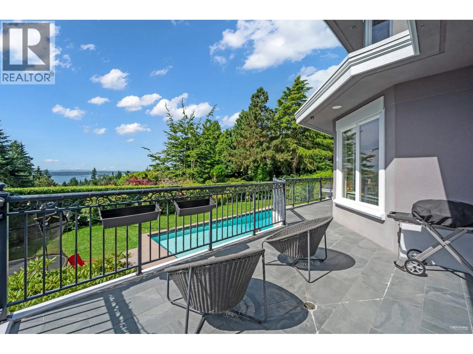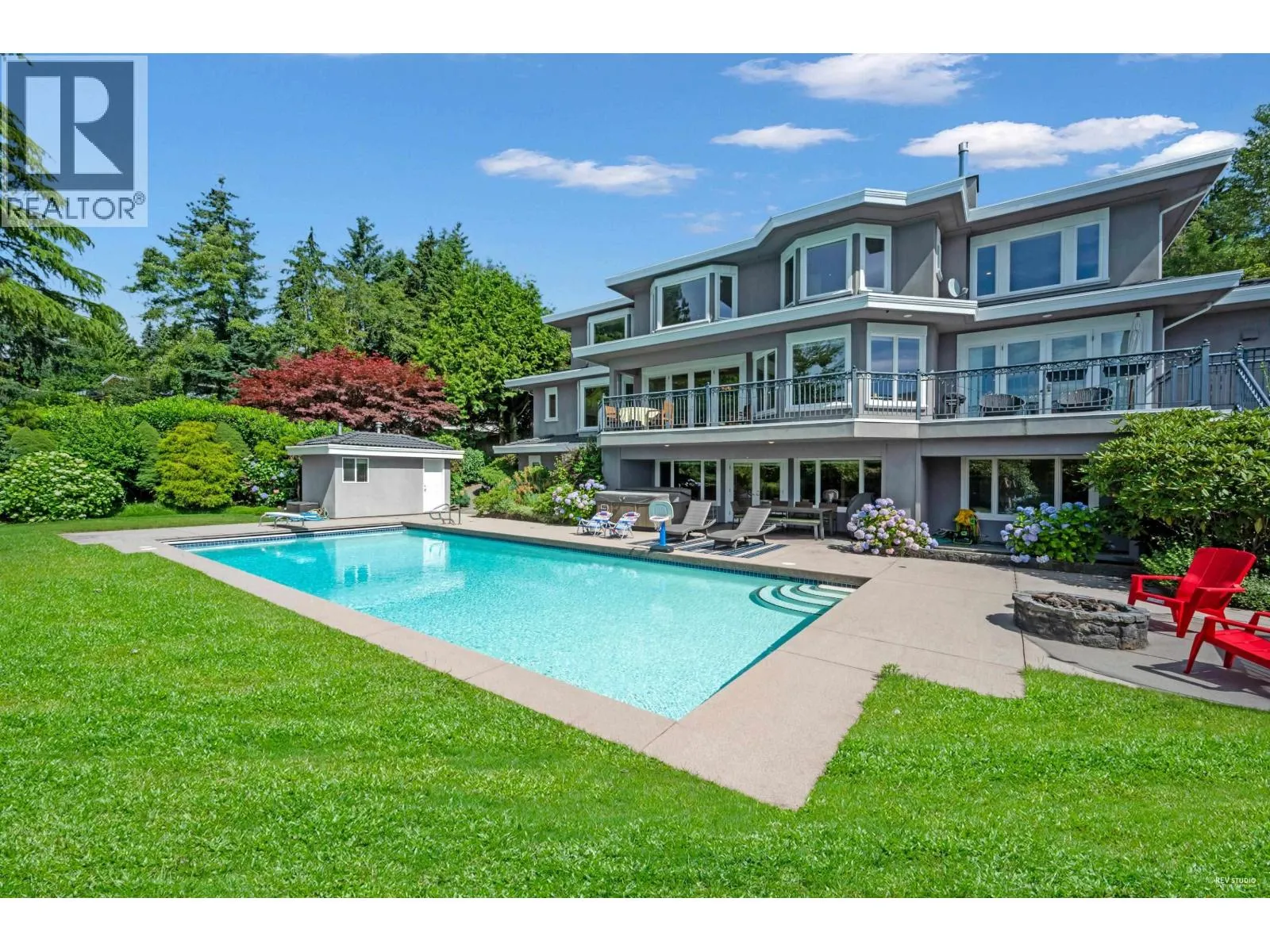 This charming residence is located on a palatial 17859 square ft lot in British Properties, one of the most coveted neighborhoods in West Vancouver. House was designed by David Poskitt and built by Bradner Homes, with spanning views from downtown to ocean, offering over 6300 square ft of living with 3 levels of functional layout, 5 bedrooms upstairs, main floor with gourmet kitchen, private office and one bedroom, the full walk-out basement is kid-friendly with large recreation room, media room, and many built-in storage, it opens out to a south-facing sun-flooded patio veranda overlooking a full-size pool and tranquil green all with complete privacy. Close to schools, Hollyburn Country Club, and Park Royal shopping center. This home is perfect for those who value family and enjoyment. (id:27476)