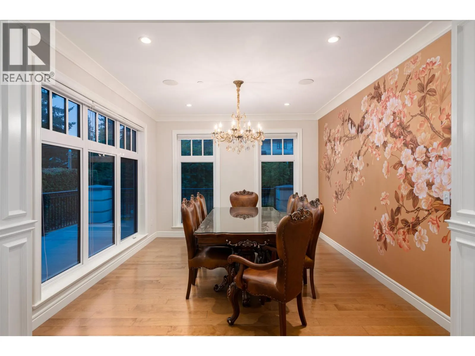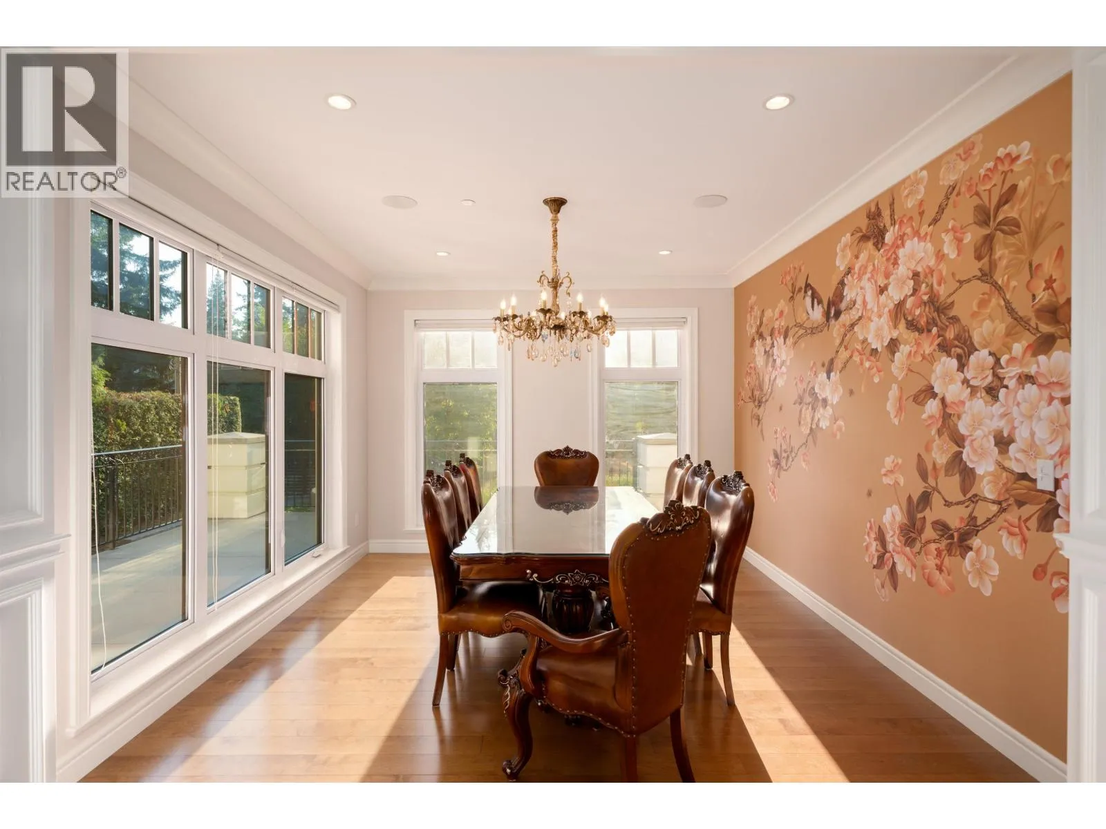 This luxurious private residence is situated on a flat 17,338 sf lot in most convenient area of West Vancouver, offering 5,800+ sqft living space over 3 levels. Featuring a 20ft grand foyer, 7 spacious bedrooms, 8 baths, elegant kitchen with painted white shaker Italian cabinetry, dry pantry, secondary kitchen, Miele appliances, wine fridge, sun-drenched family rm & more. A stunning formal dining rm with imported silk-pattern wallpaper, perfect for entertaining. Extra spacious master rm has an office nook, gorgeous ensuite & a huge walk in closet. 5 ensuite bedrooms with full of light. Downstairs features a family theatre rm, rec-room, sauna & full equipped guest suite with laundry. French-inspired design with wide plank hard flooring, stunning copper refined chandeliers, extensive millwork, marble countertops carefully curated with the desire to create a classic home. Westcot Elementary & Sentinel Secondary catchments, mins to private school, Park Royal & Seawall. (id:27476)