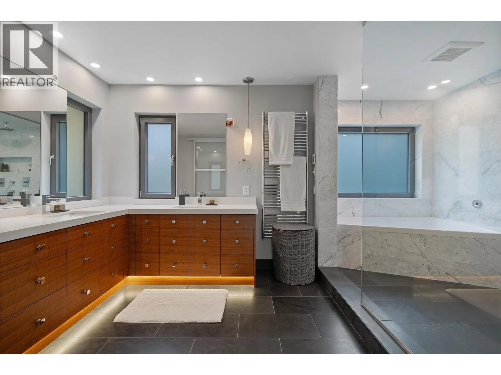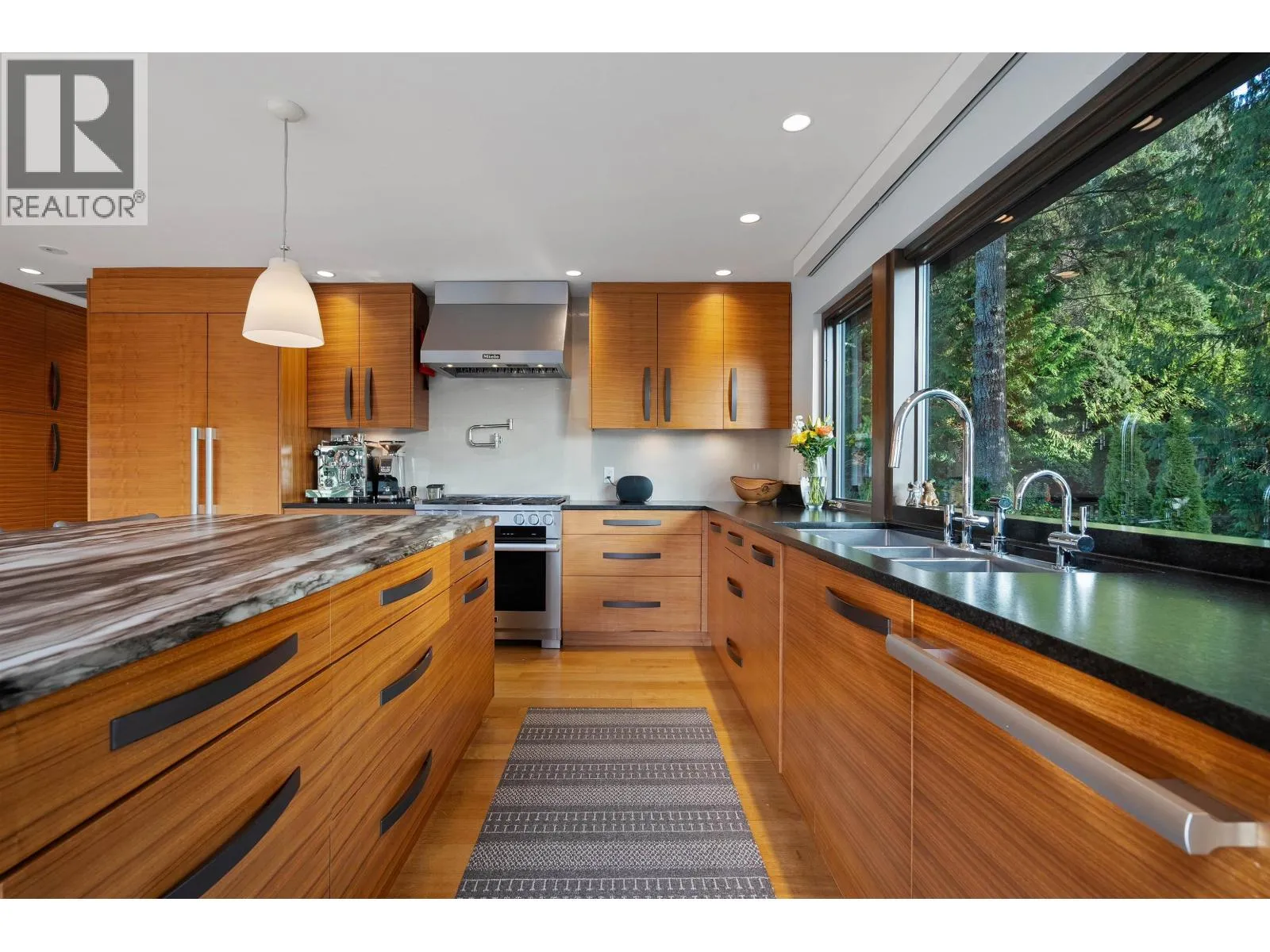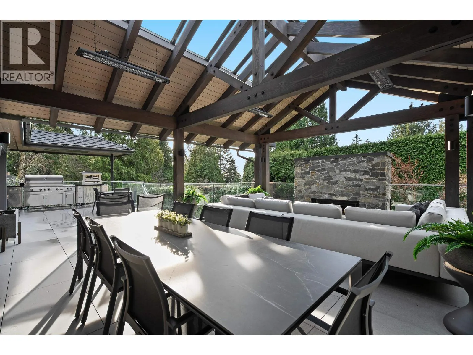 Beautifully re-imagined Caulfeild family home on a private 14,015 sq.ft. lot. Rebuilt down to the studs in 2018/19 with over $2.5M invested, ideal for everyday living & an entertainer´s dream. Living/dining area flows seamlessly through huge Eclipse doors to a massive, covered patio w/incredible outdoor kitchen complete with pizza oven & fireplace, perfect for year-round entertaining. Main floor is anchored by a chef´s kitchen complete with top-of-the-line appliances, a serene primary retreat w/spa-like ensuite & a private office. The lower level is designed for relaxation & recreation with a family room, rec area, gym, sauna, & outdoor hot tub. Complete with a double garage, this home sits on a quiet, family-friendly street near top schools & trails. (id:27476)