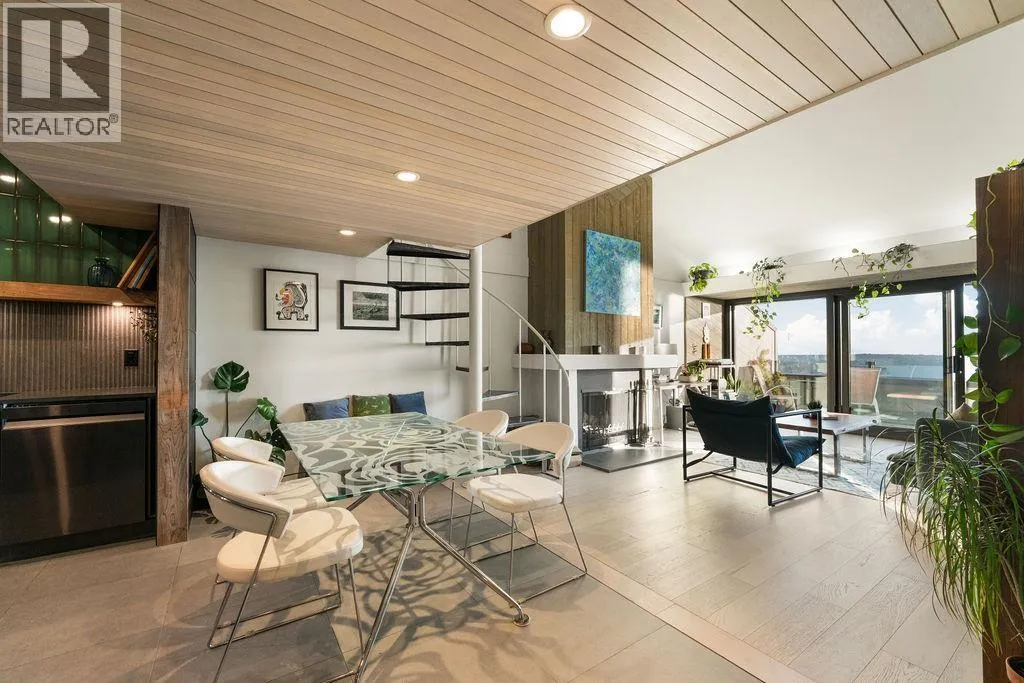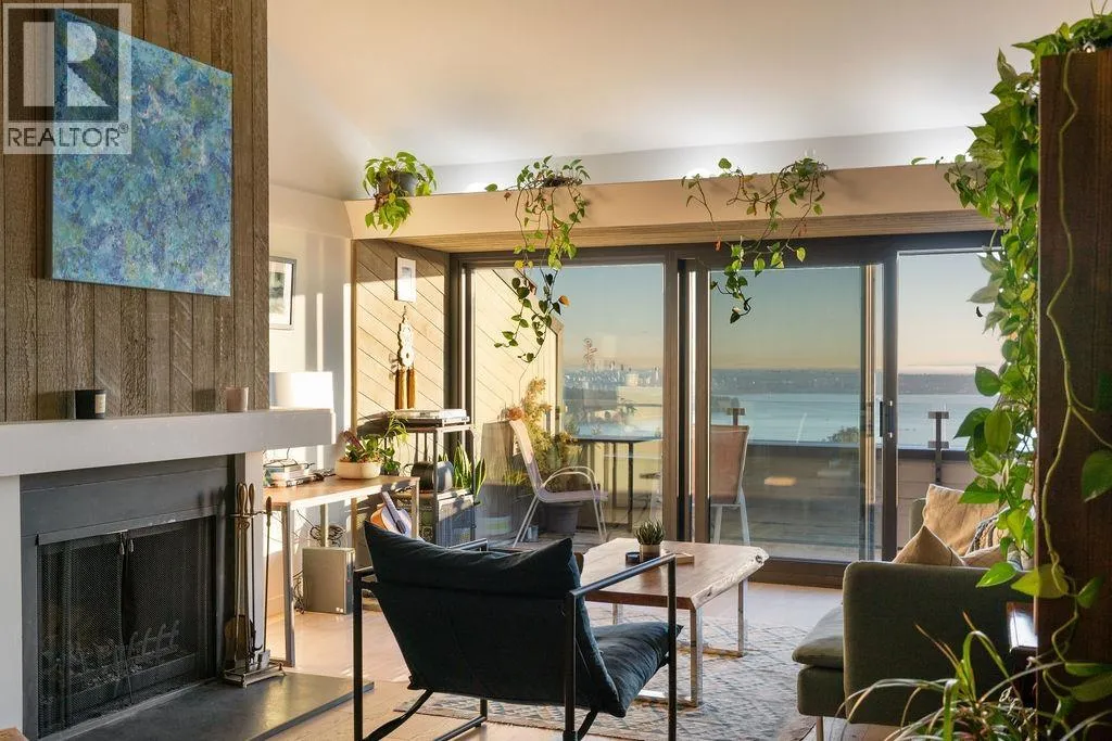 Executive 1 Bedroom & Loft (Being used as a 2nd Bedroom),1 Bathroom 1045 sqft PENTHOUSE with commanding unobstructed panoramic ocean views from Mt. Baker to Vancouver Island at the late Fred Hollingsworth´s condominium development. Fully Renovated using the finest materials from slate countertops, European tiles & fixtures, wide plank Oak Flooring, radiant heated stone flrs, French wallpaper & a cozy wood burning fireplace. 15 ft vaulted ceilings & a spiral staircase leads you to the loft which can be a 2nd Bedroom or Home Office. 188 sqft of Patio access from the Living Room & Bedroom with NEW Balcony Windows. Well run building with Newer Roof and updated hallways. A spiral staircase leads you up to the Bedroom/loft area. Shared Laundry. Cypress Mountain Next Exit over. Easy access to Downtown, Park Royal, Shopping, Beaches, Groceries, Recreation, Top Schools, Ferries, 1&1/2 hr to Whistler. Open House Sunday 2-4 (id:27476)