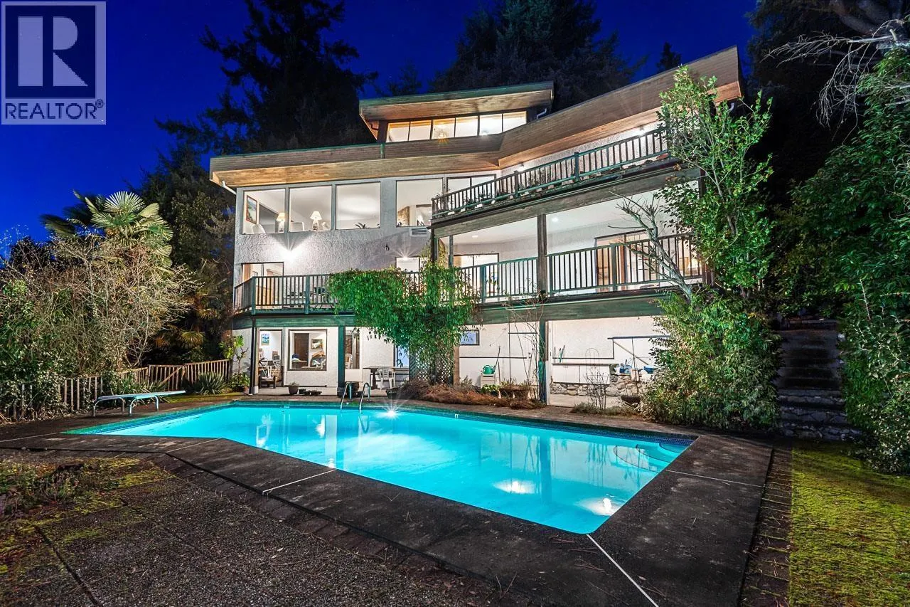 This exceptional, 1-owner residence offers total privacy and is located in the highly sought-after Eagleridge community, renowned for its stunning ocean views & access to nature. This 5 bedroom, 5 bathroom home spans 4 levels & provides outstanding flexibility for large or multi-generational families. The main living level features a bright, open-concept layout with spacious living, dining & kitchen areas, ideal for everyday living & entertaining, all positioned to capture the ocean vistas and year round sunsets. The top floor offers a generous family room or secondary living space, also showcasing sweeping water views. The lower level includes 4 beds, 3 baths & the basement level boasts a 1 bed/1bath suite overlooking the pool area. Outdoors, enjoy a beautifully landscaped & private backyard with a pool area, perfect for summer entertaining. Bonus: 2 car attached garage with flat entry, plus a workshop & ample storage! Close proximity to Gleneagles & Rockridge schools, shopping, Seaview Trail & Horseshoe Bay. (id:27476)