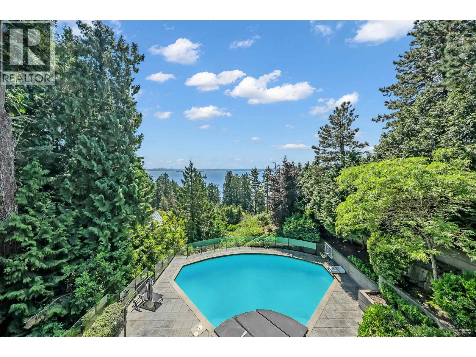 This exquisite custom residence, built by renowned master builder Steven Bradner and designed by Gordon Hylinski, is tucked away on a private, gated half-acre in prestigious Lower Caulfeild. Thoughtfully positioned to capture tranquil ocean glimpses, the home offers over 2,500 sq.ft. of refined main-level living, including a gourmet chef´s kitchen and an inviting family room that seamlessly extends onto an expansive 800 sq.ft. terrace-perfect for entertaining-overlooking the sun-soaked pool and spa. Upstairs, four generously sized bedrooms each feature their own ensuite bathrooms and private balconies, creating a resort-like experience for every family member. The walk-out lower level boasts a spacious rec room with direct access to the pool deck, ideal for indoor-outdoor family living. Immaculate craftsmanship and high-end finishes are evident throughout, including a triple-car garage. All just moments from the charming "Someplace Special" village and some of West Vancouver´s top-rated schools. (id:27476)