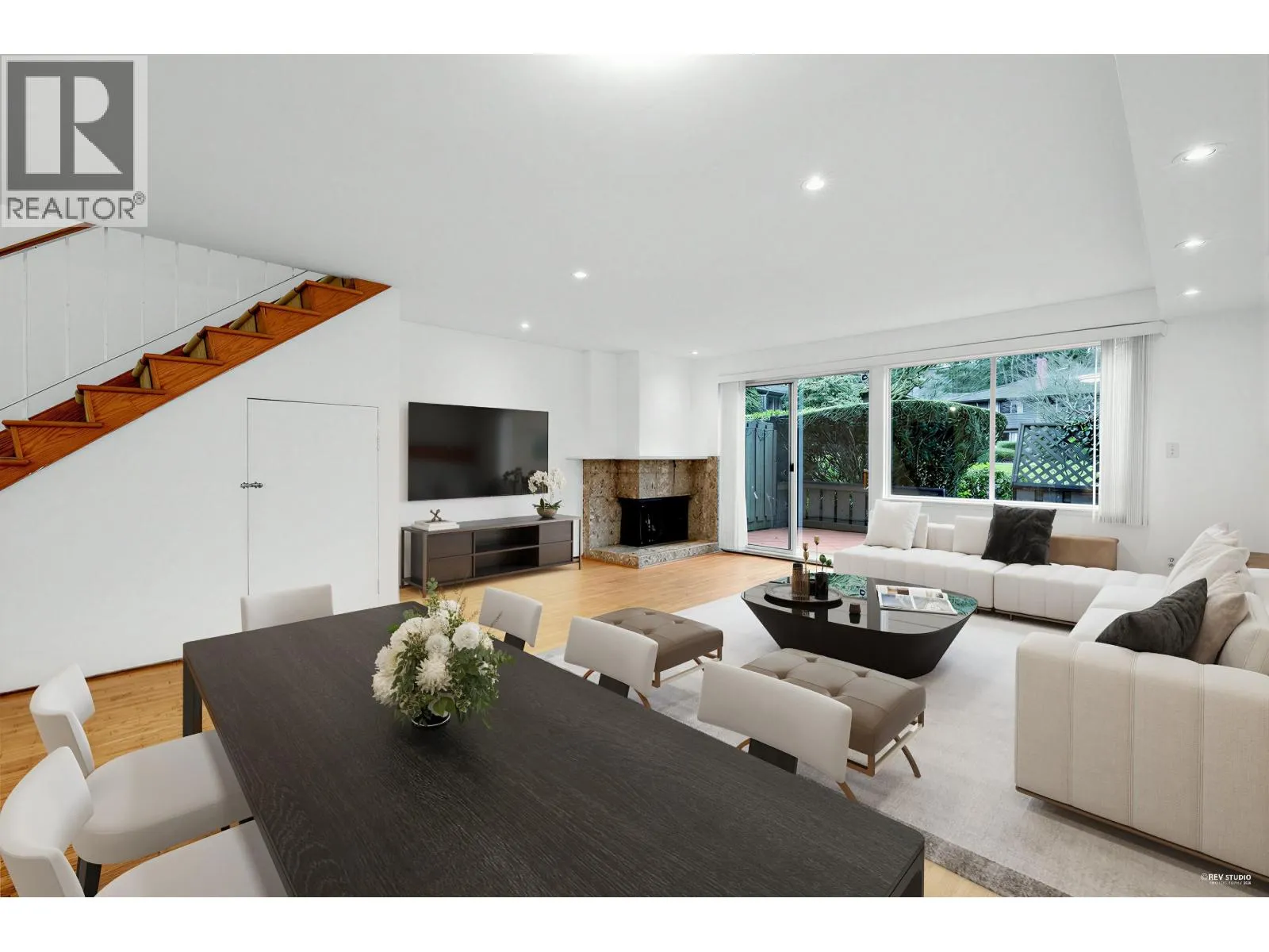 This rarely available townhouse presents an ideal opportunity for a growing family or downsizers wishing to remain in the area. This well-designed two-level home is thoughtfully utilized, featuring 3 bedrooms on the upper level and 2.5 bathrooms, offers a terrific floor plan with a bright living and dining area ideal for entertaining, a wood burning fireplace, and a versatile den perfect for home office. The spacious back patio overlooks a beautifully private setting with manicured garden perfect for children and outdoor enjoyment. Residents can enjoy excellent amenities including an outdoor pool, and a club house with guest suite. Located in the heart of West Vancouver´s top school district,Just steps to Capilano River trails, Park Royal shopping, and only minutes to Downtown Vancouver. (id:27476)