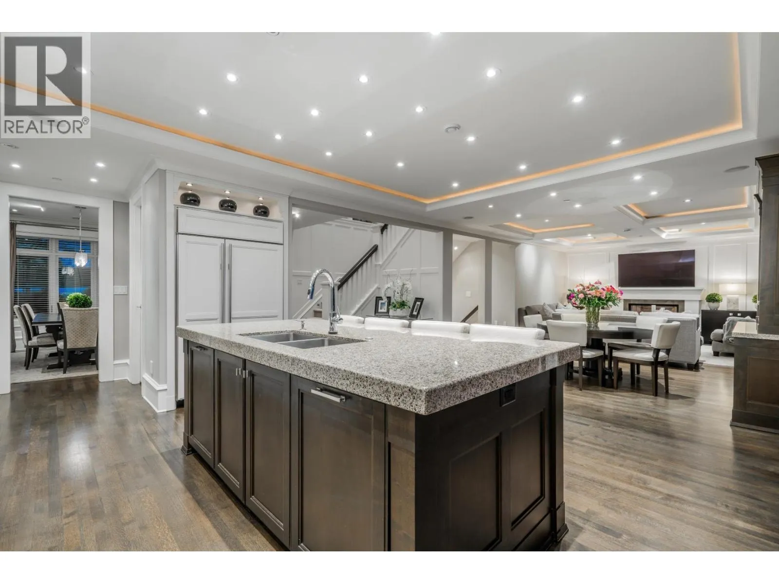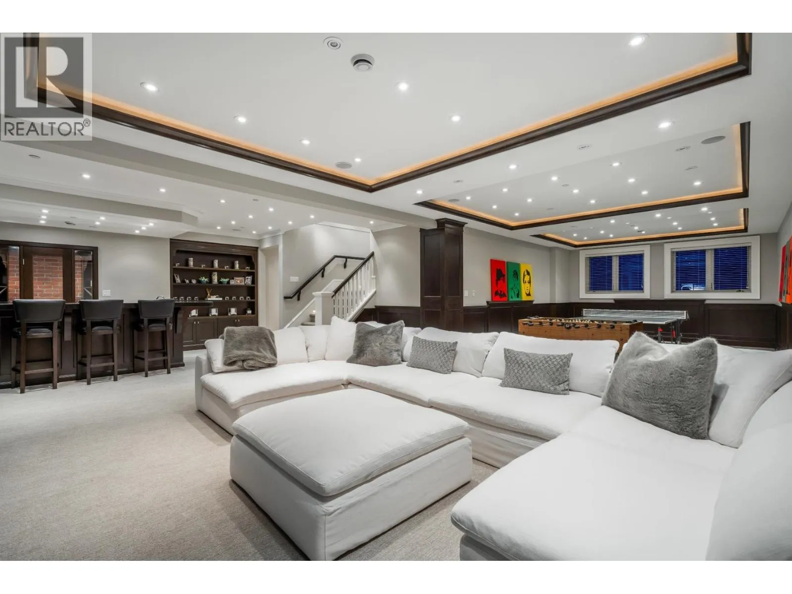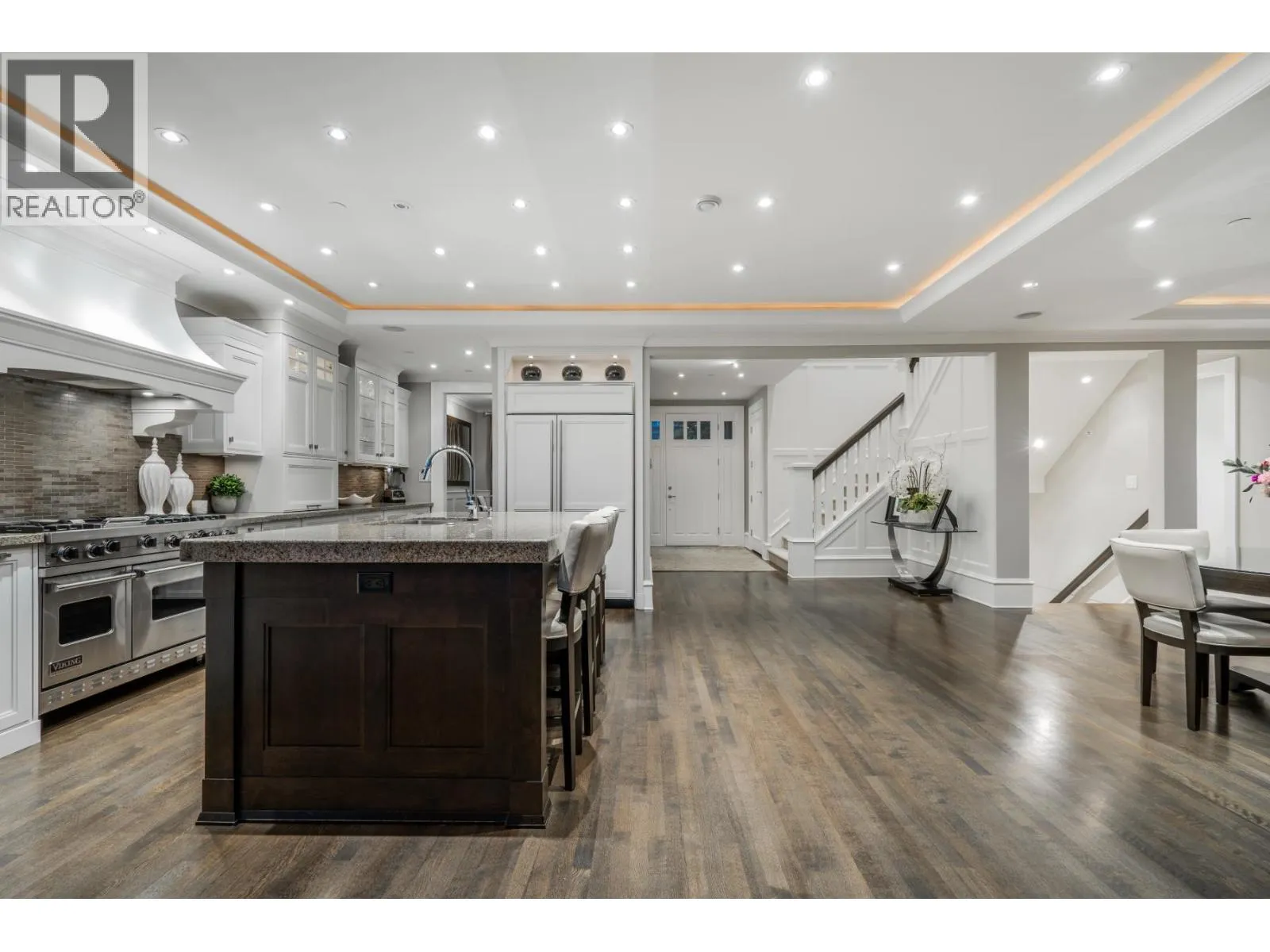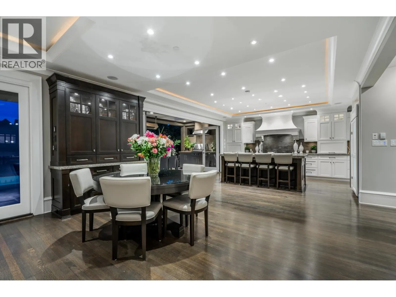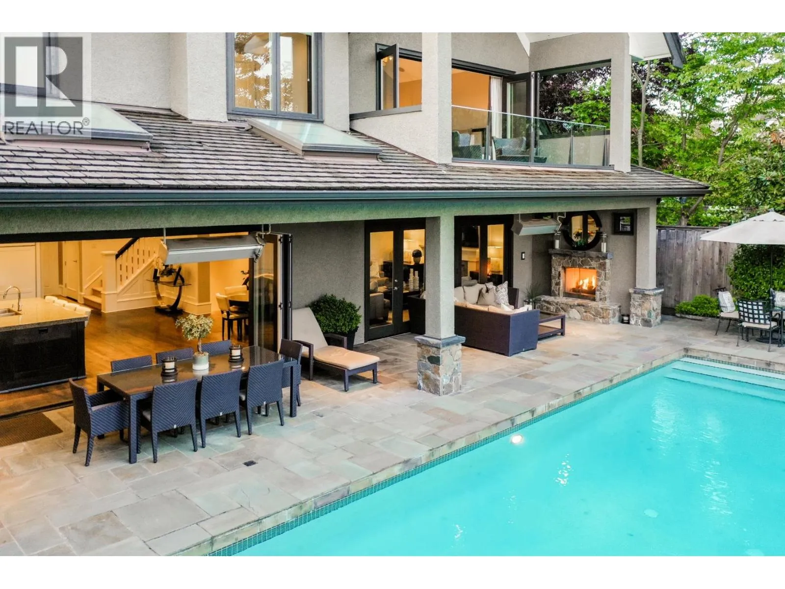 Discover one of the finest and most elegant homes in Dundarave, perfectly situated on one of the area´s most coveted streets. This custom built residence showcases exceptional craftsmanship and an attention to detail rarely seen. Set on a flat 60' x 132' southside lot, the property offers 5,401 sq. ft. of sophisticated living space, plus an additional 540 sq. ft. attached garage/storage area. The main level features a beautiful living room and a gourmet kitchen with a casual dining area that opens through eclipse doors to a stunning, covered BBQ patio. Outside, enjoy over 1,500 sq. ft. of sun-drenched outdoor living complete with a pool, hot tub, outdoor shower, and a level lawn area-perfect for entertaining. Upstairs are four generous bedrooms, each with its own ensuite. The expansive primary suite includes a large walk-in closet and a luxurious 6-piece spa-inspired ensuite. This trophy property is a must-see, offering air conditioning, a home gym, and a wine cellar. (id:27476)