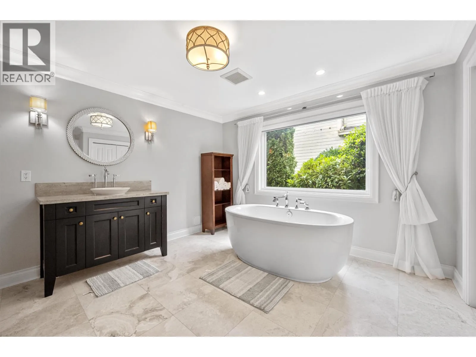Spectacular 7,283 Sq Ft Traditional Estate in Prestigious Westhill. Nestled on beautifully landscaped grounds, this elegant and meticulously renovated residence offers stunning ocean and city views. Fully redesigned and professionally decorated to the highest standards, the home features exquisite craftsmanship and luxurious finishes throughout. The grand granite foyer welcomes you into formal living and dining areas. The gourmet Chef´s kitchen offers both function and style for the culinary enthusiast. Upstairs, the impressive primary suite is complemented by three additional spacious bedrooms and a den. The lower level boasts a state-of-the-art media room and large recreation space, ideal for family living or hosting guests.Immaculate and move-in ready, this home is truly a masterpiece. (id:27476)