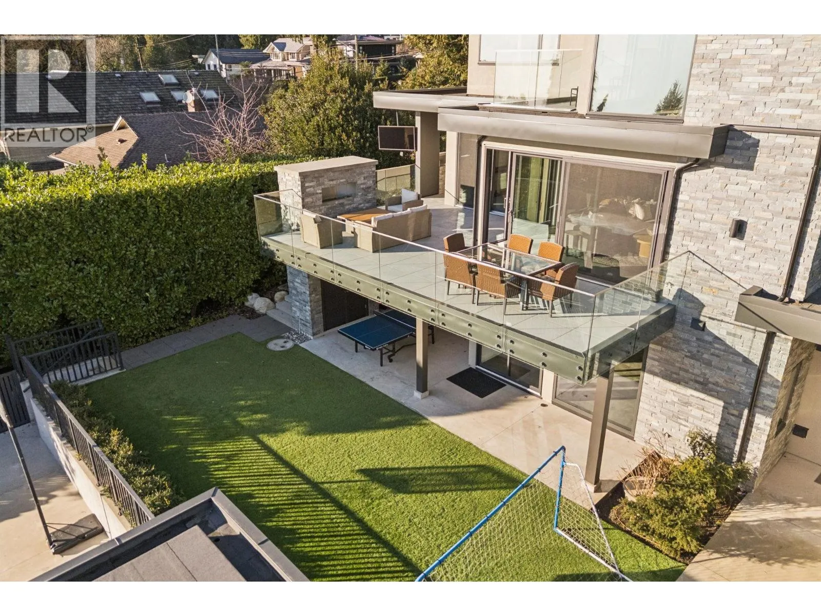 Enjoy the total package in desirable Dundarave. This 3-year-old architectural stunner has gorgeous ocean views & high-end finishes including extensive custom millwork, AC, & radiant heating. The main floor is designed for modern living with a comfortable open plan. It features a professional-grade kitchen with prep area and an oversized mudroom with specialized ventilated storage for kids' gear. The main DECK is an entertainer´s dream, featuring views, a lounge area with a fireplace and TV, an OUTDOOR KITCHEN with both charcoal and BBQ stations and a dining area. Upstairs, you´ll find 4 BEDROOMS, including a luxurious primary suite with private deck for amazing sunsets. The lower level offers a 1-bedroom LEGAL SUITE, plus a huge recreation room, bar and media space with 84" TV. Outside, the property boasts a flat, TURFED YARD and sports pad ideal for soccer, basketball or hockey. Just blocks from Dundarave Village, the seawall, beaches, Irwin Park Elementary, and WV High, this is the ultimate family home! (id:27476)