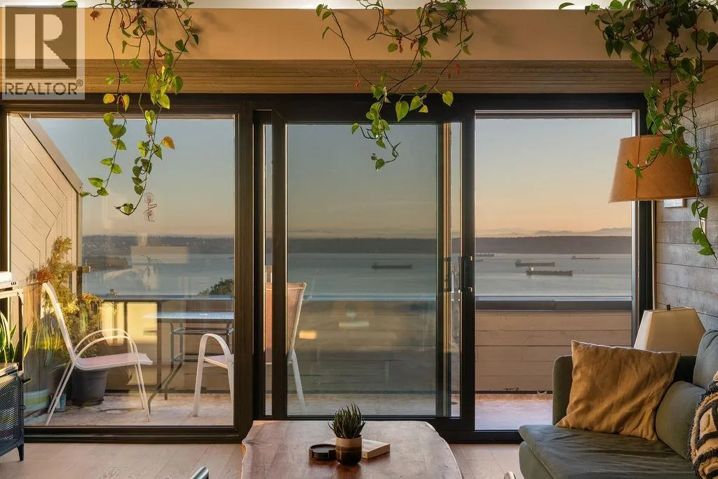 Executive 1 Bedroom & Loft (Being used as a 2nd Bedroom),1 Bathroom 1045 sqft PENTHOUSE with commanding unobstructed panoramic ocean views from Mt. Baker to Vancouver Island at the late Fred Hollingsworth´s condominium development. Fully Renovated using the finest materials from slate countertops, European tiles & fixtures, wide plank Oak Flooring, radiant heated stone flrs, French wallpaper & a cozy wood burning fireplace. 15 ft vaulted ceilings & a spiral staircase leads you to the loft which can be a 2nd Bedroom or Home Office. 188 sqft of Patio access from the Living Room & Bedroom with NEW Balcony Windows. Well run building with Newer Roof and updated hallways. A spiral staircase leads you up to the Bedroom/loft area. Shared Laundry. Cypress Mountain Next Exit over. Easy access to Downtown, Park Royal, Shopping, Beaches, Groceries, Recreation, Top Schools, Ferries, 1&1/2 hr to Whistler. (id:27476)