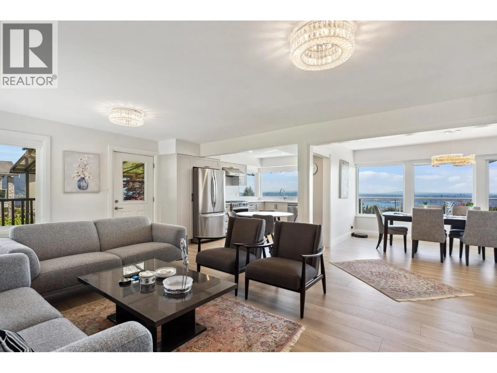 Located in high-end community is a fully renovated home that offers captivating water and city views from every angle, ensuring a daily embrace of nature's beauty. The upper level features three generously sized bedrooms illuminated by sunlight streaming through large windows. The master suite includes a private bathroom. A beautifully landscaped yard provides an ideal setting for dining, relaxation, or hosting gatherings, complemented by an upper deck offering panoramic view of the surroundings. The lower level features a well-planned suite with two bedrooms, a modern kitchen, and a cozy living space. Conveniently situated near ski resorts, golf courses, and shopping hubs, Chartwell elementary and Sentinental secondary schools catchment. (id:27476)