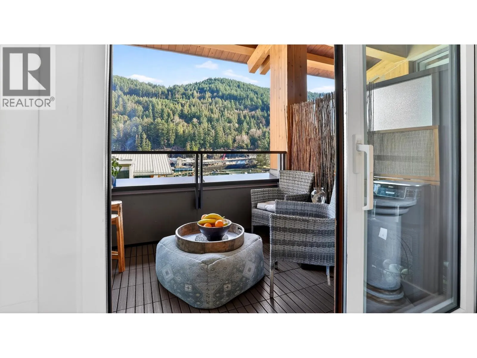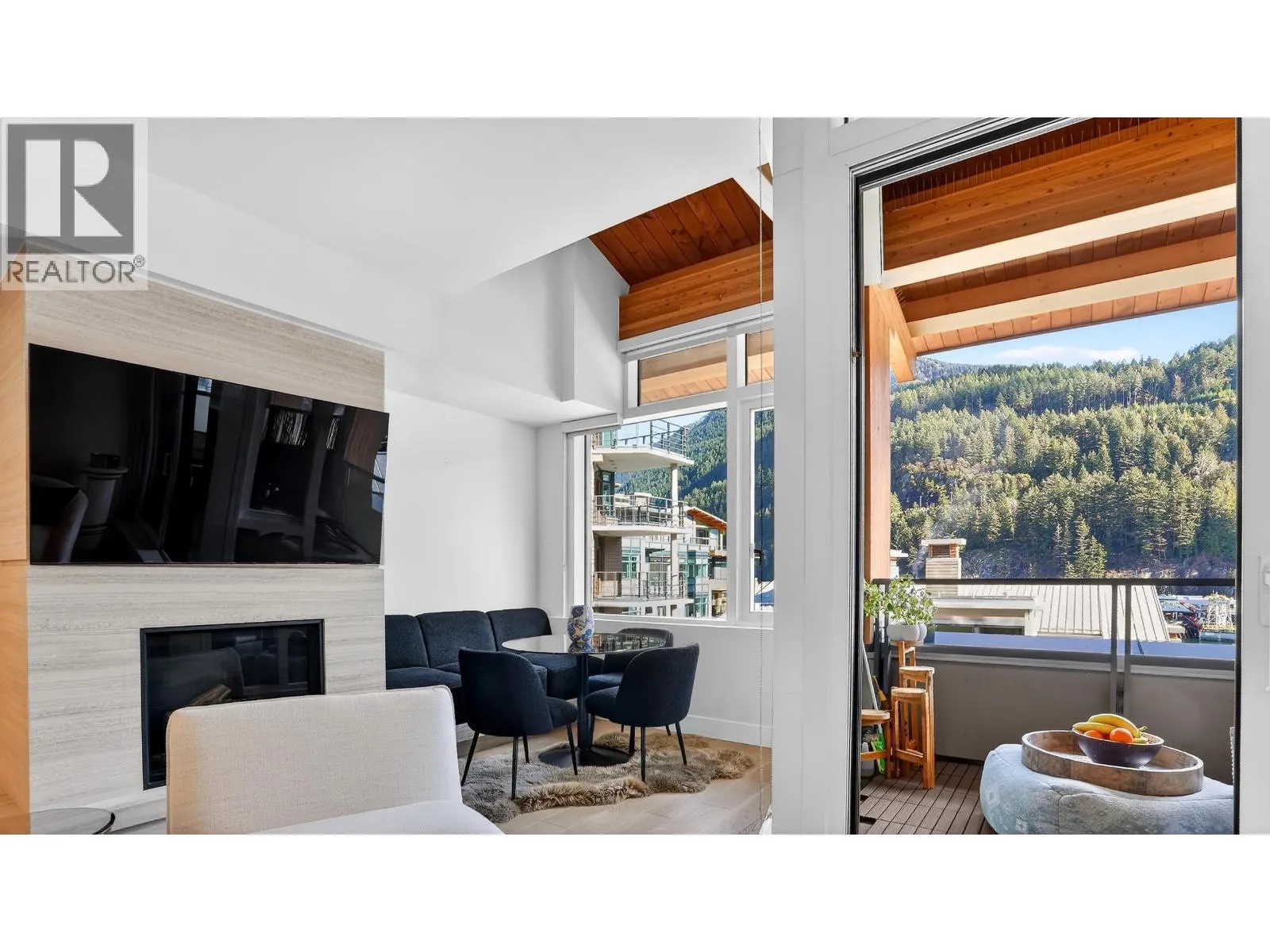 Bright and elegant 1 bed, 1 bath residence at Sanctuary in charming Horseshoe Bay. This thoughtfully designed home features high ceilings, 837 square ft of interior living space, and a covered balcony with lovely MOUNTAIN VIEWS . The open layout showcases premium Miele appliances, stone countertops, a gas fireplace, a spa-inspired tiled bathroom, and luxurious wool carpeting in the bedroom. Residents enjoy quality amenities including a fitness centre, EV charging, resident lounge, and access to a Chris-Craft boat. 1 parking stall and 1 storage locker included. Steps to local shops, restaurants, and scenic waterfront trails. (id:27476)