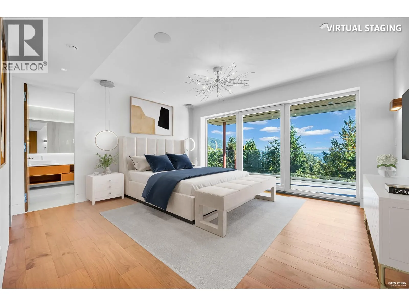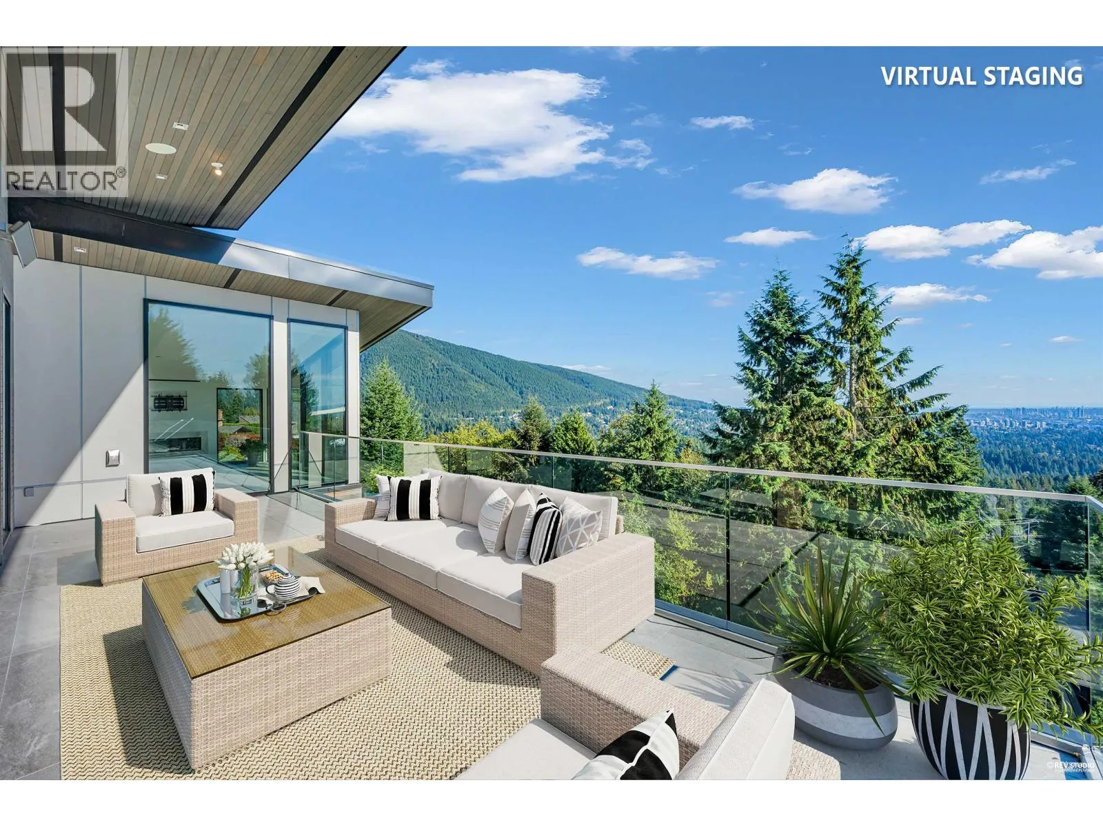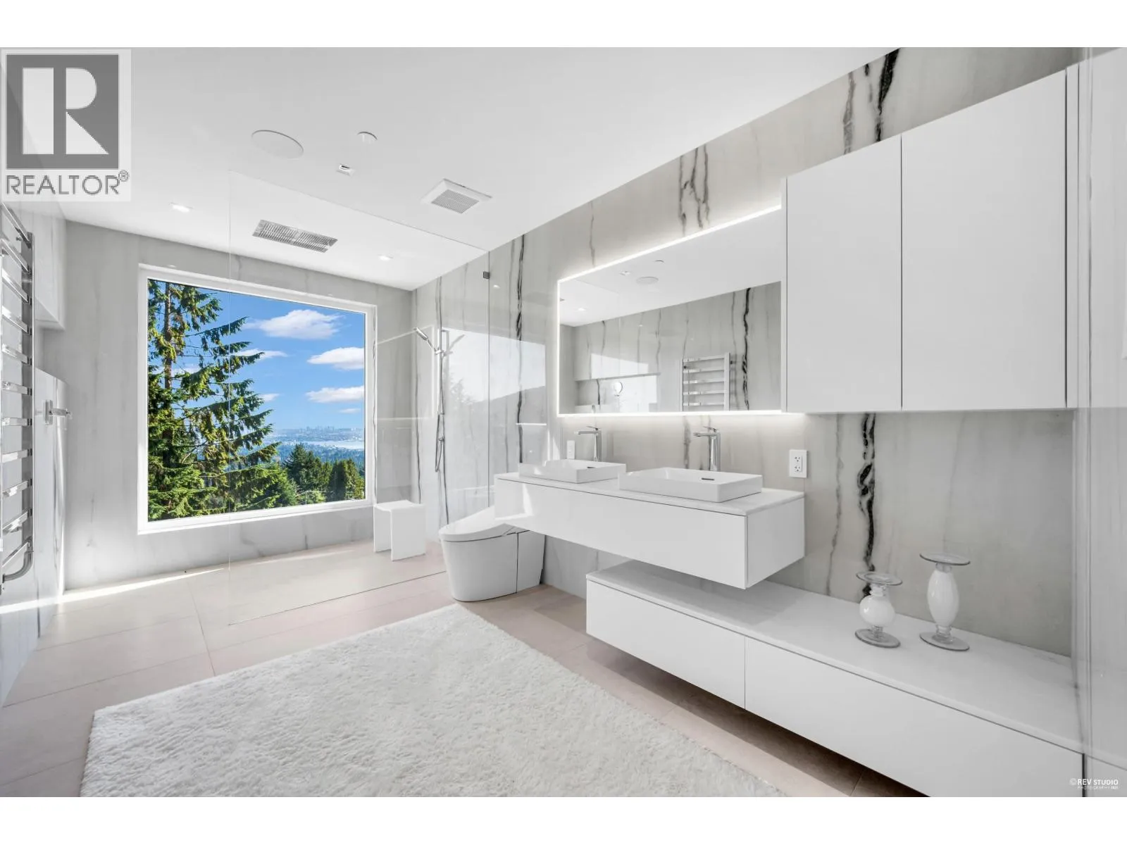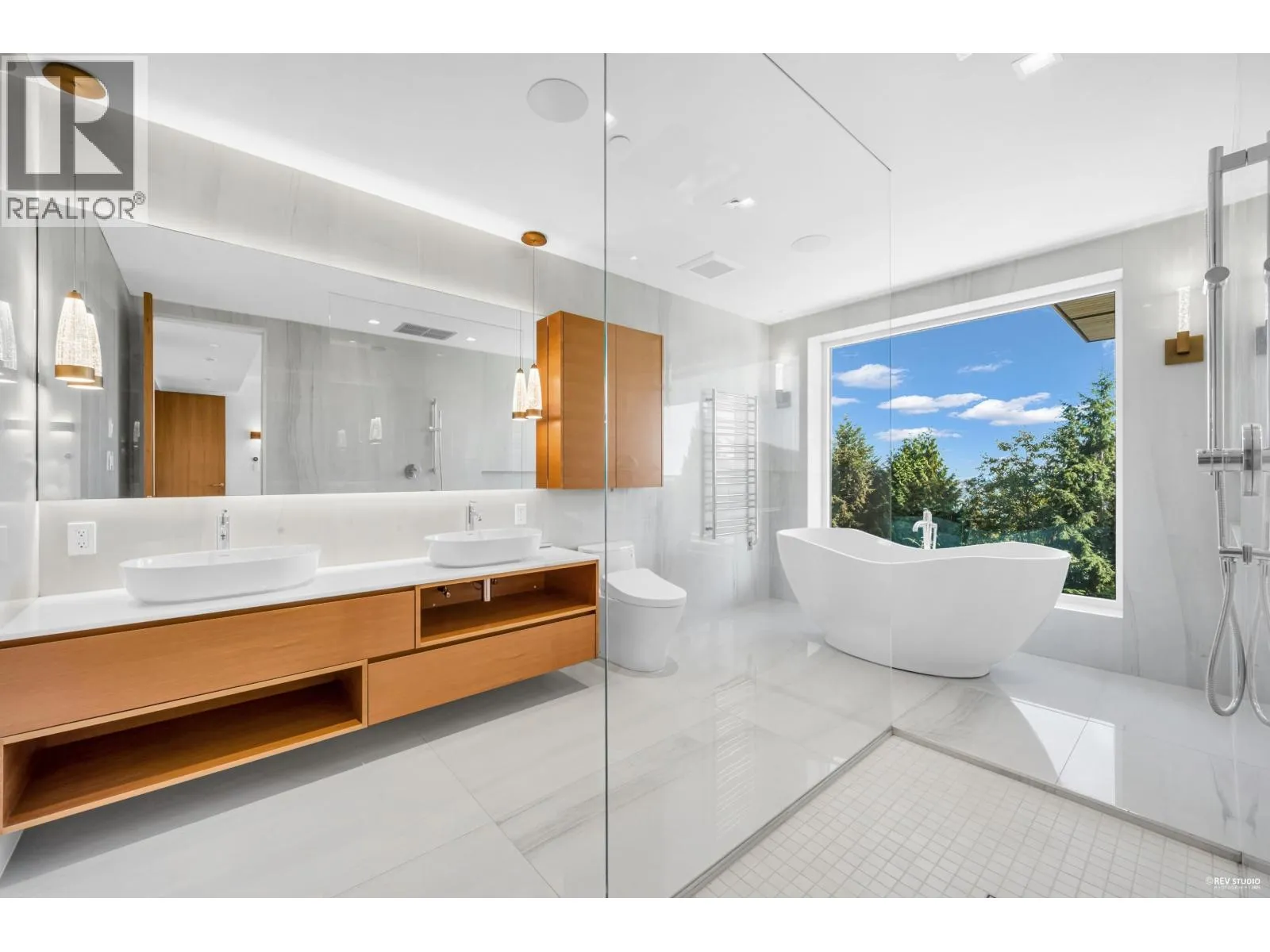 This modern masterpiece showcases clean architectural lines, expansive glass, and natural materials, offering panoramic ocean and city views. The main floor features bright open living spaces with high ceilings, floor-to-ceiling windows, and seamless flow to a large terrace. Gourmet and wok kitchens are equipped with high-end appliances and custom cabinetry. A rare dual primary suite layout provides ideal flexibility for families or multigenerational living, each with spa-inspired ensuites, walk-in closets, and private balconies. The lower level includes a spacious recreation room, home theatre, and direct access to the outdoor oasis with pool, hot tub, generous patio and the pool house. Thoughtfully designed for refined luxury and effortless modern living. (id:27476)