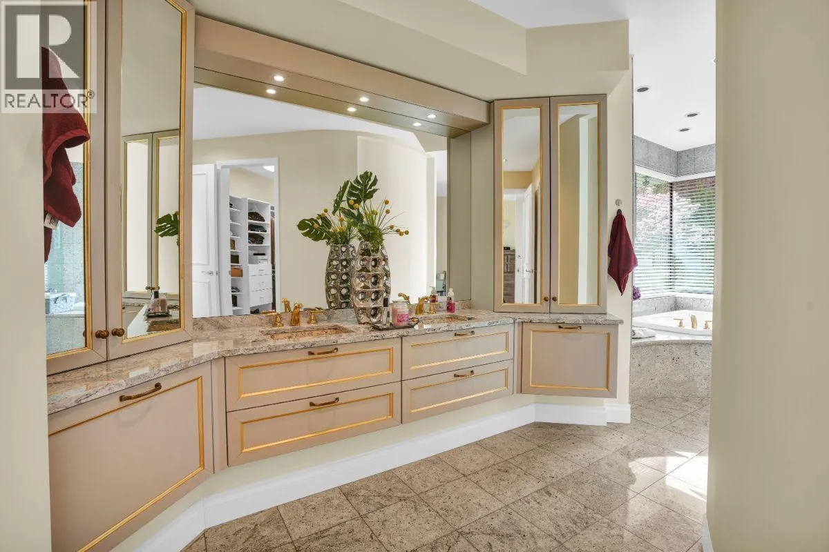This rarely available gated mansion sits on a stunning corner lot with nearly 23,000 sqft of land.This beautifully landscaped lot contains a fully flat and paved driveway, huge frontage,10 parked cars and a 3-car private garage. This rare property has some of the city's most gorgeous panoramic views of the sparkling ocean, breathtaking mountains. double-height curved staircase, stone-slab floors & spa-like ensuite on the main level which opens to sun-filled terraces & outdoor lounge w/BBQ. 8,200 sqft of living space, this property is meticulously designed with luxury. This unit was extensively renovated in 2016 .4 ensuite oversized bedrooms on the upper floor, plus another bonus master bedroom on the main floor. this lot is subdividable to two lots, ask the listing agent (id:27476)