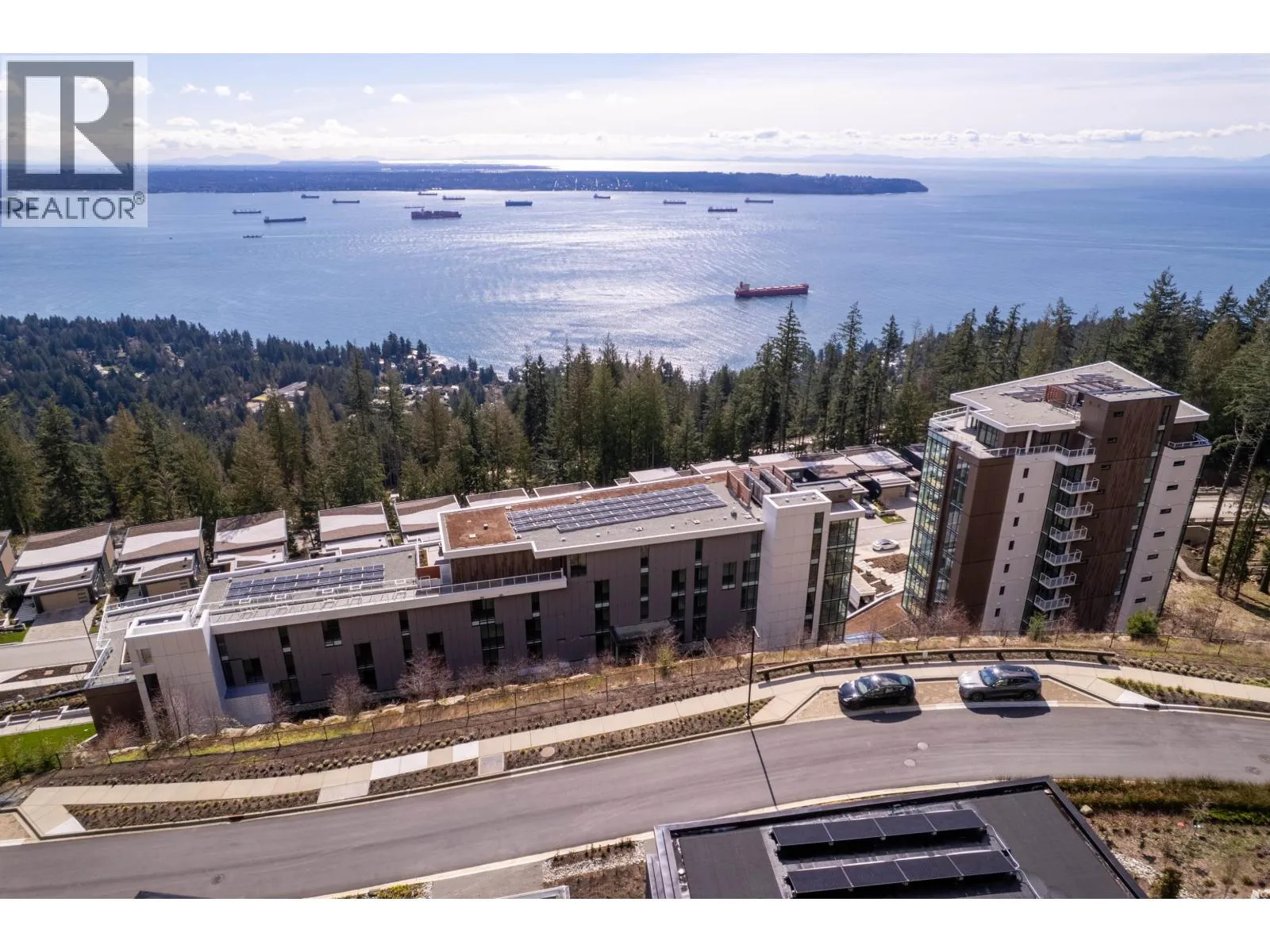 The Hawksley is a prime example of modern architecture, space, and design, showcased in this bright SW 1 bed + den home offering 667 sq.ft. of efficient living. Floor-to-ceiling windows allow the interior and exterior spaces to meld as one, opening onto an exceptional 590 sq.ft. private patio with unobstructed ocean views from every window and a built-in planter, perfect for year-round enjoyment. Includes 1 parking and 1 storage locker. Located in the desirable Uplands neighbourhood with premium amenities including gym, meeting rooms, music room, and visitor parking. Close to top private schools Mulgrave and Collingwood. Touchbase for showings. (id:27476)