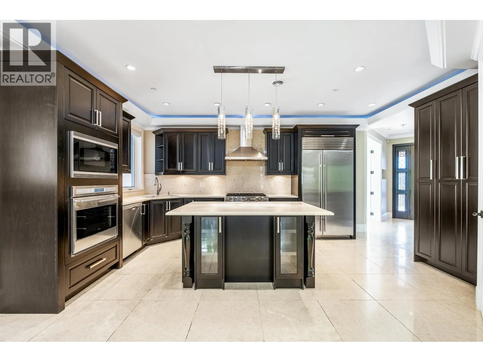 Nestled at the end of a quiet cul-de-sac, this executive residence offers over 6,100 sq. ft. of luxurious living across three levels. Designed with 8 bedrooms and 8 bathrooms, it features a grand double-height foyer, entertainment-sized living room, and a gourmet kitchen with granite counters, premium appliances, and a wok kitchen. The main level includes a guest ensuite, while upstairs offers four bedrooms including a spa-inspired primary suite with walk-in closet. The lower level, with separate entrance, provides 3 bedrooms, 3 bathrooms, a full kitchen, and recreation room-ideal for multi-generational living. Situated on a 13,800 sq. ft. lot with private terraces and a triple-car garage, this home is walking distance to top schools and shopping. (id:27476)