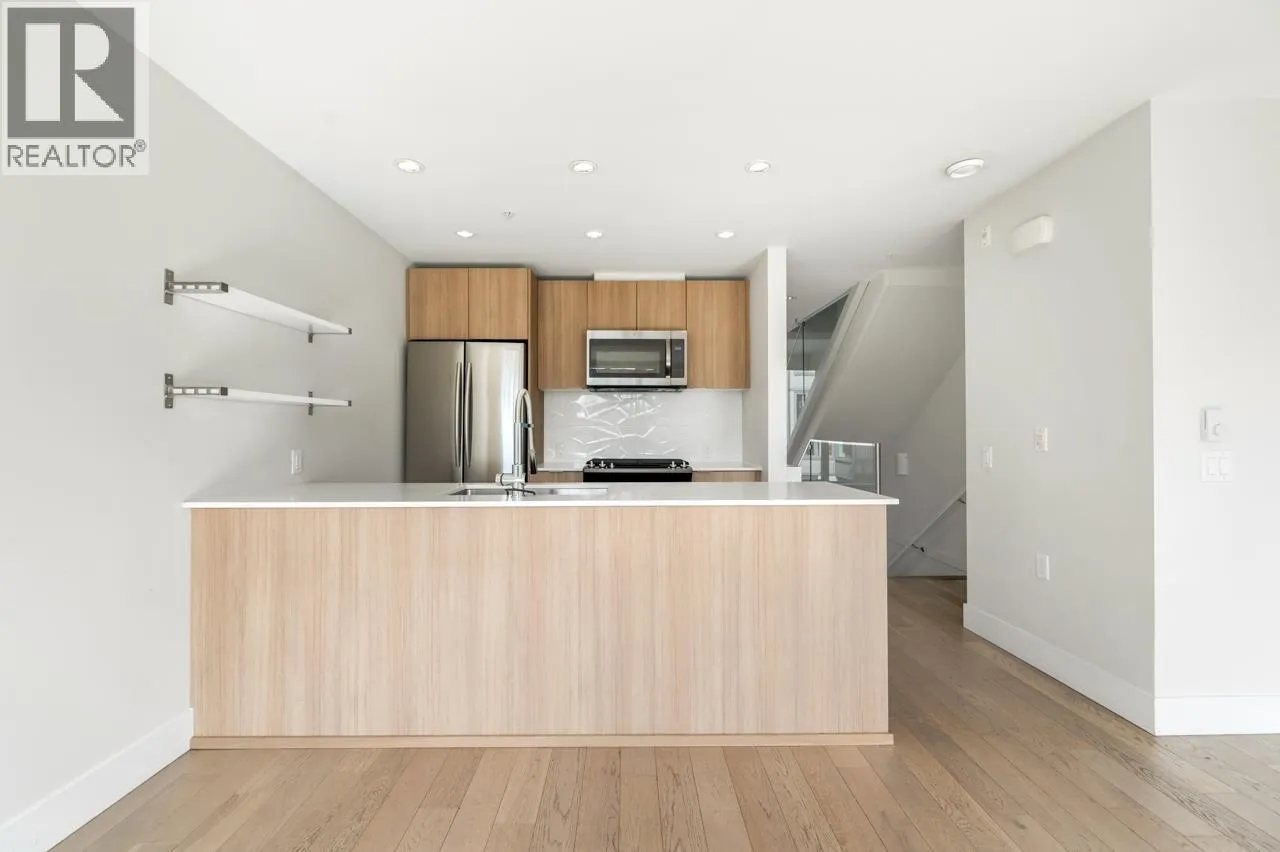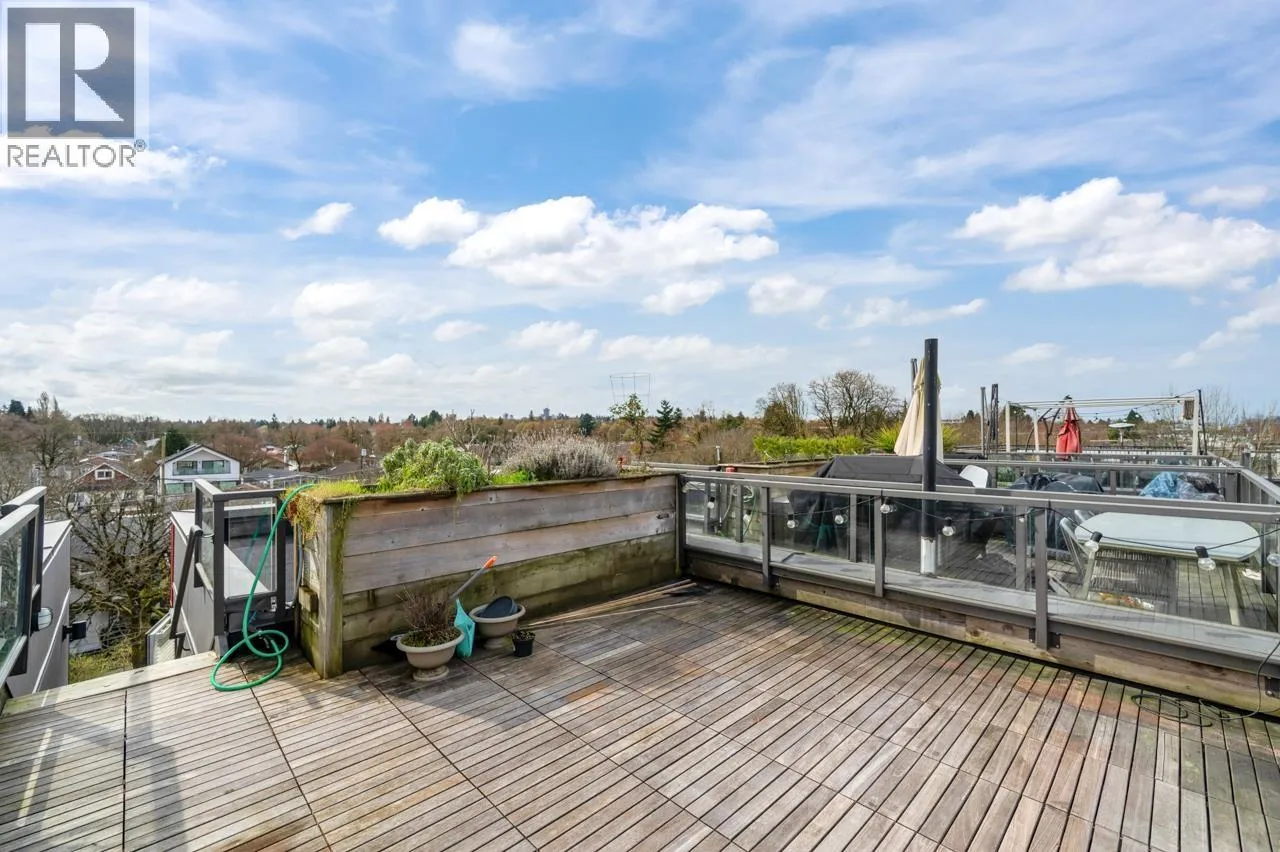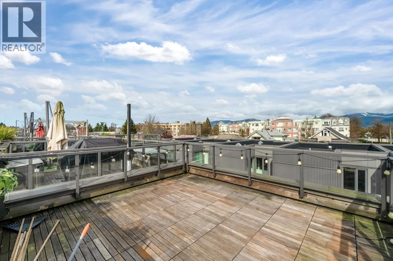 Welcome to this stylish 2-bedroom plus den, 2.5 bath townhouse in Vancouver's vibrant Mount Pleasant. The showpiece is the 229 square ft rooftop sundeck with panoramic city and mountain views-- perfect for entertaining or relaxing under the stars. This modern home features a bright open layout and a gourmet kitchen with quartz countertops, sleek cabinetry, S/S appliances, and gas range. Upstairs are two spacious bedrooms & 2 full baths, while the main level offers a versatile den or optional third bedroom plus a half bath. Additional highlights include direct rooftop access, ample storage in the unit, one parking stall, and bike storage. Steps to trendy Main and Fraser cafes, restaurants, shops and transit, this home is perfect for owners or investors seeking contemporary Vancouver living. (id:27476)