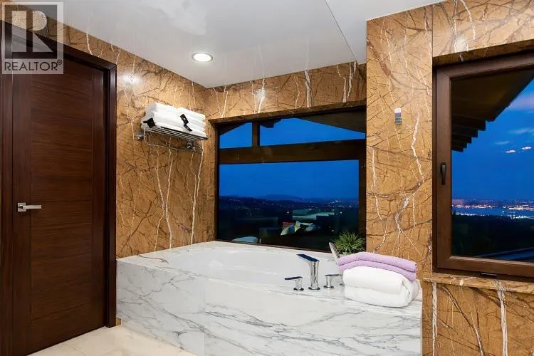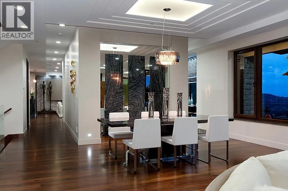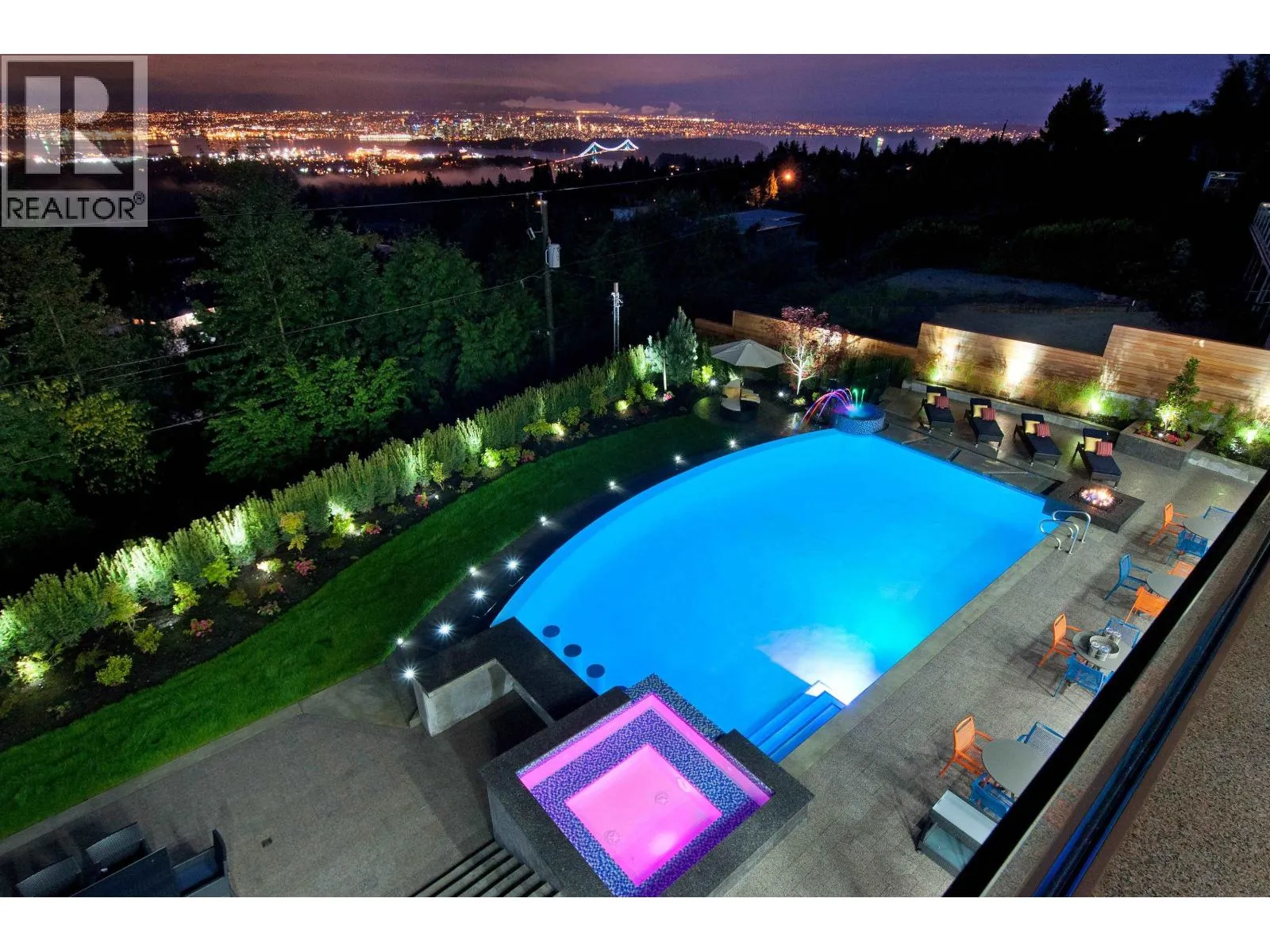SENSATIONAL 6-BEDROOM RESIDENCE W/STUNNING DOWNTOWN/LIONSGATE VIEW BUILT BY RENOWNED EUROHOUSE GROUP & DESIGNED BY DAVID POSKITT. This extremely well-built home boasts an exceptional flr plan to maximize a family's living experience. MAIN: stunning living & dining rms, amazing office, fantastic gourmet kitch w/Italian cabinetry & Gaggenau appliances, wok kitch, eating area, family rm, den & beautiful powder rm. UPPER: generous primary bedroom w/spa en-suite & spacious dressing rm, plus three large en-suited bedrooms & laundry. LOWER: fabulous rec-rm & media rm, games rm, two guest bedrms, plus spa area leading to outdr swimming pool w/change rms, sauna, powder rm and second laundry. OUTDOORS: salt water swimming pool w/built-in seating, hot tub, fountain, 2 fire pits & fireplace. (id:27476)