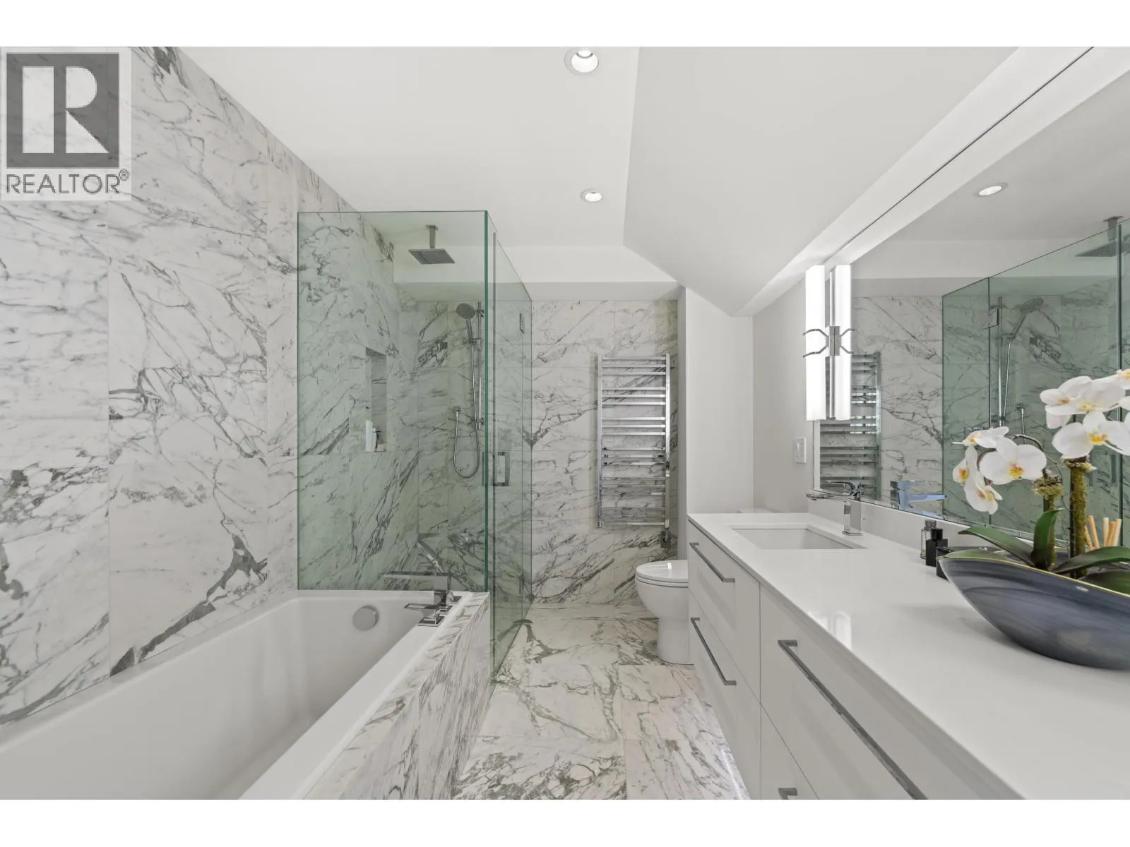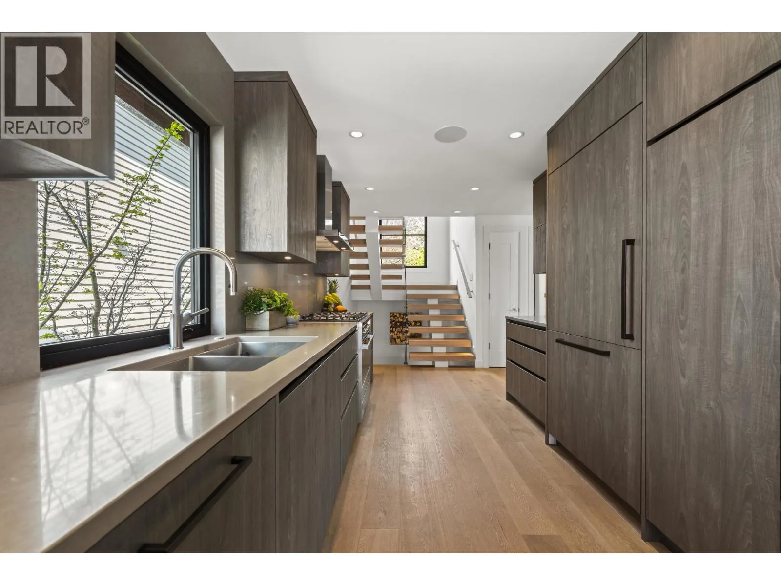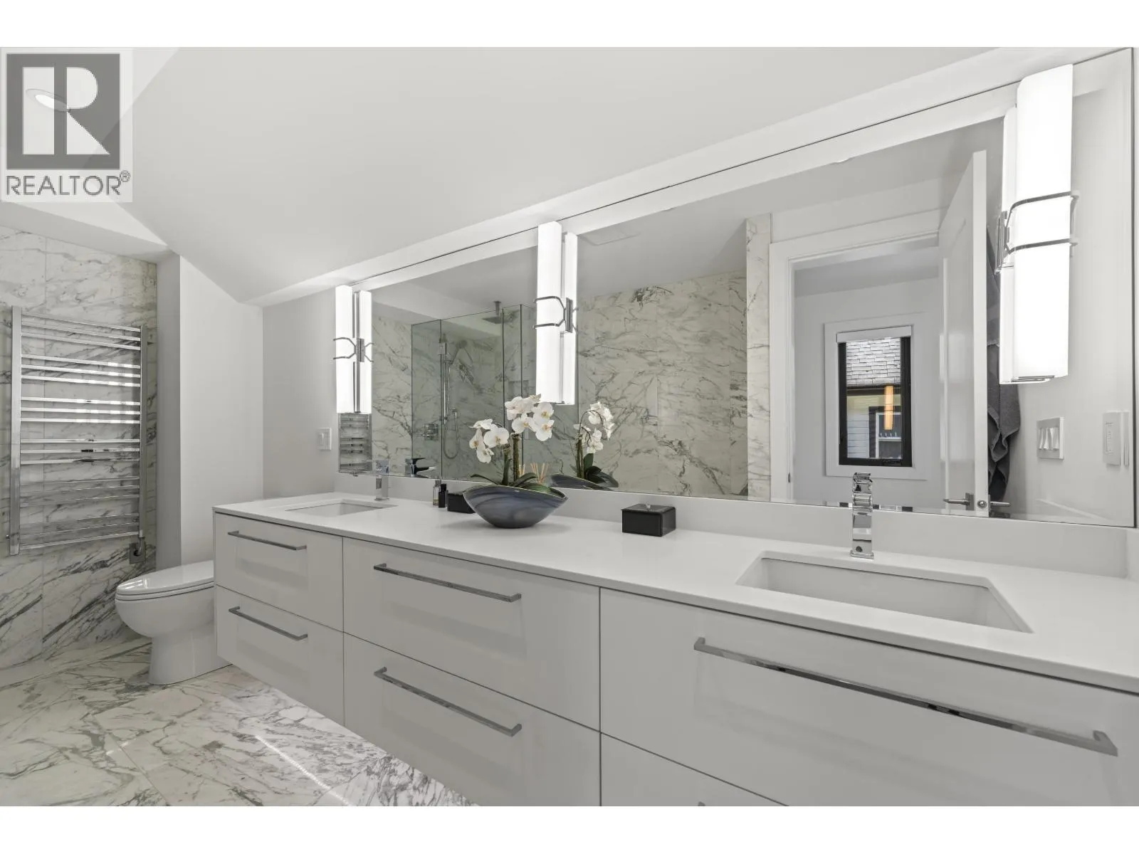 The personal residence of Paul Fedusiak of Goldwood Homes, this exceptional transitional executive home represents a rare offering-where uncompromising craftsmanship meets refined, modern design. Clad in timeless cedar shake, the home makes an immediate architectural statement, while the interiors deliver a sophisticated, light-filled aesthetic defined by clean lines, curated finishes, and effortless flow. Unlike conventional layouts, the upper level is tailored for executive comfort, offering two expansive bedrooms in place of three, including a stunning primary retreat with captivating views to the Lions Gate Bridge and surrounding landscape. The main level unfolds with seamless open-concept living, blending elegance with livability, while a fully self-contained one-bedroom legal suite adds versatility without compromise. Moments from the seawall, cafés, and boutique shopping in the heart of Ambleside. A rare opportunity to own a builder´s own home, where quality is not promised-it is proven. (id:27476)