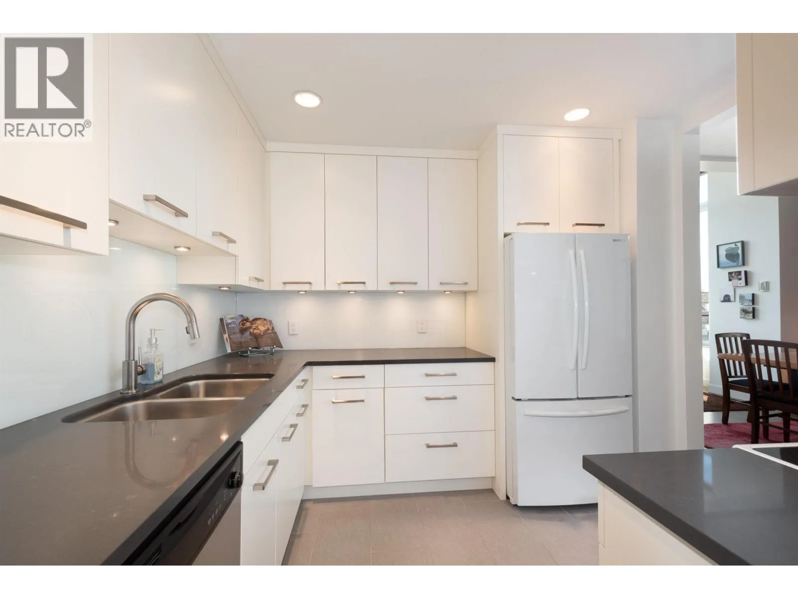 Beautifully updated 2 bed/2 bath at the Westerlies! This suite is on the main floor, no elevator needed. Large principal rooms with 10 foot ceilings, perfect for entertaining. Lovely patio overlooking the gardens. This unit is on the southwest corner w/peek-a-boo views of the ocean/city. Primary bedroom has ensuite, a walk in closet and is big enough for house sized furniture. 2nd bedroom is 160 sq. ft. and is currently being used as a media room. There's also a powder room off the foyer for guests. No unit next door to this one, it's very private & quiet. The strata has a sauna, tennis court, workshop and lounge. The Westerlies is walking distance to everything & perfect for those looking to downsize in a great community. No presentation of offers until 4pm on April 17, 2026. (id:27476)