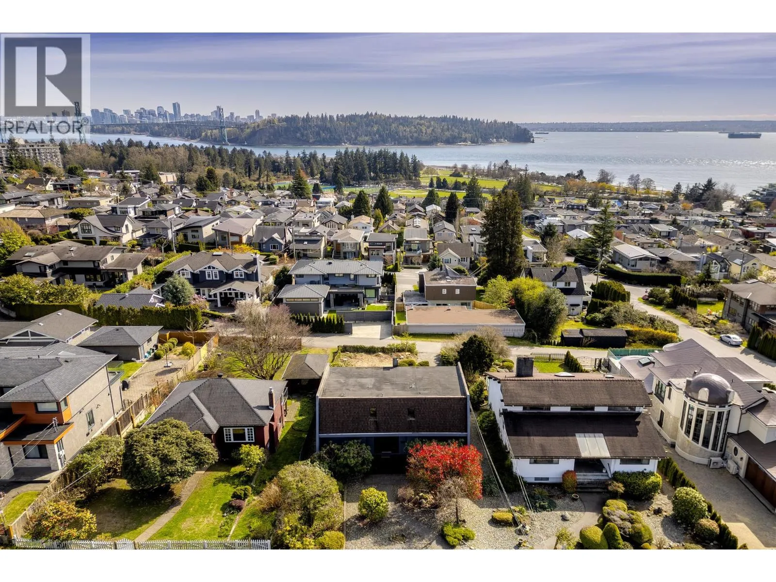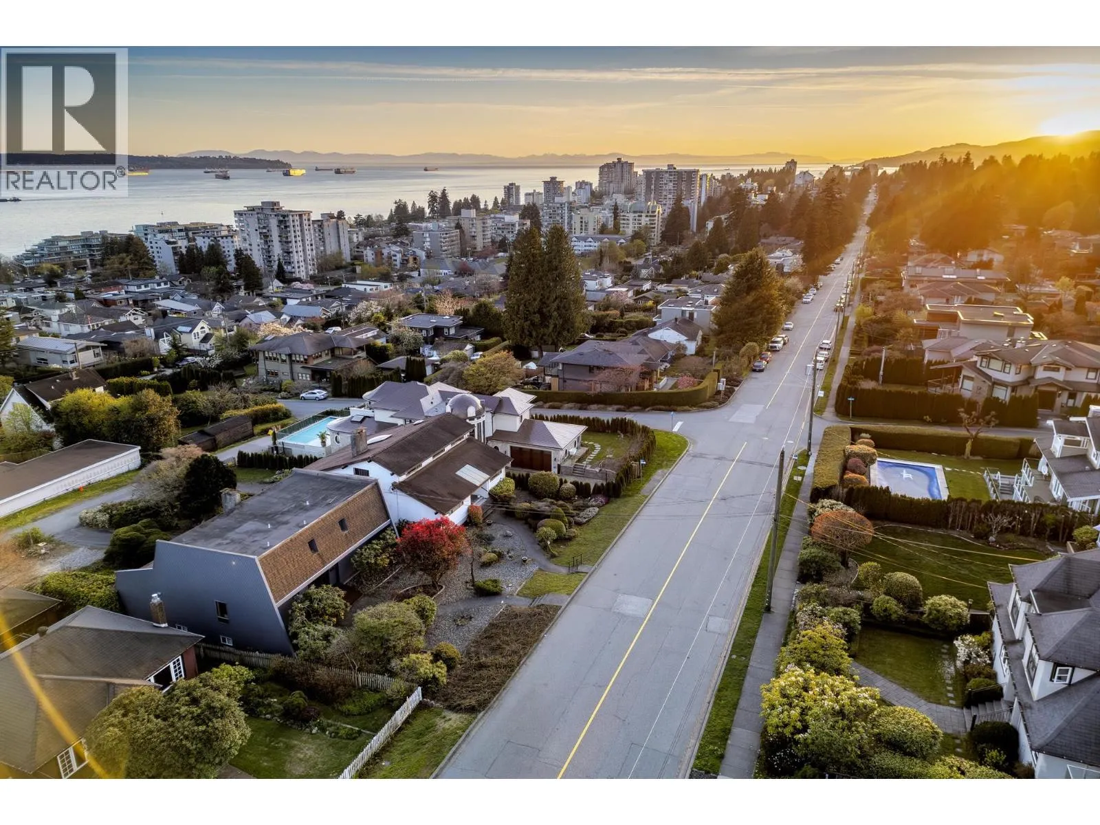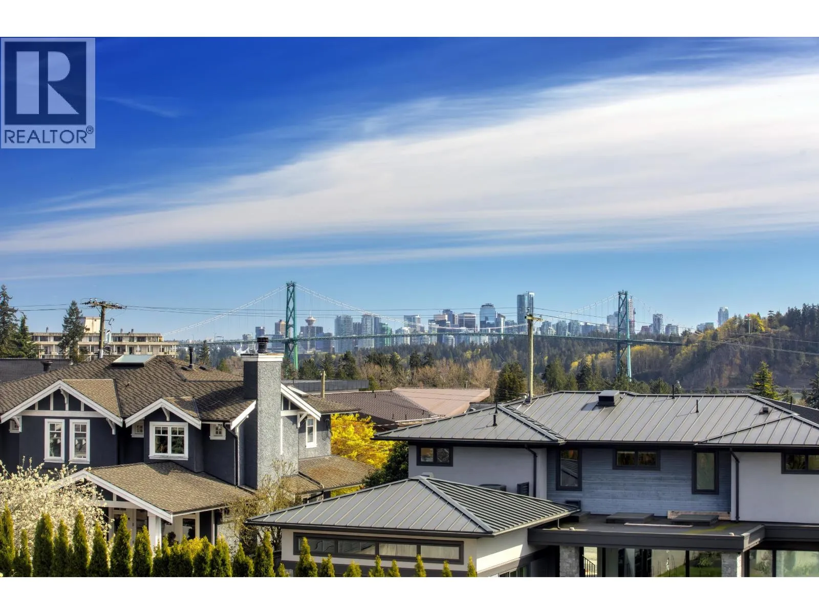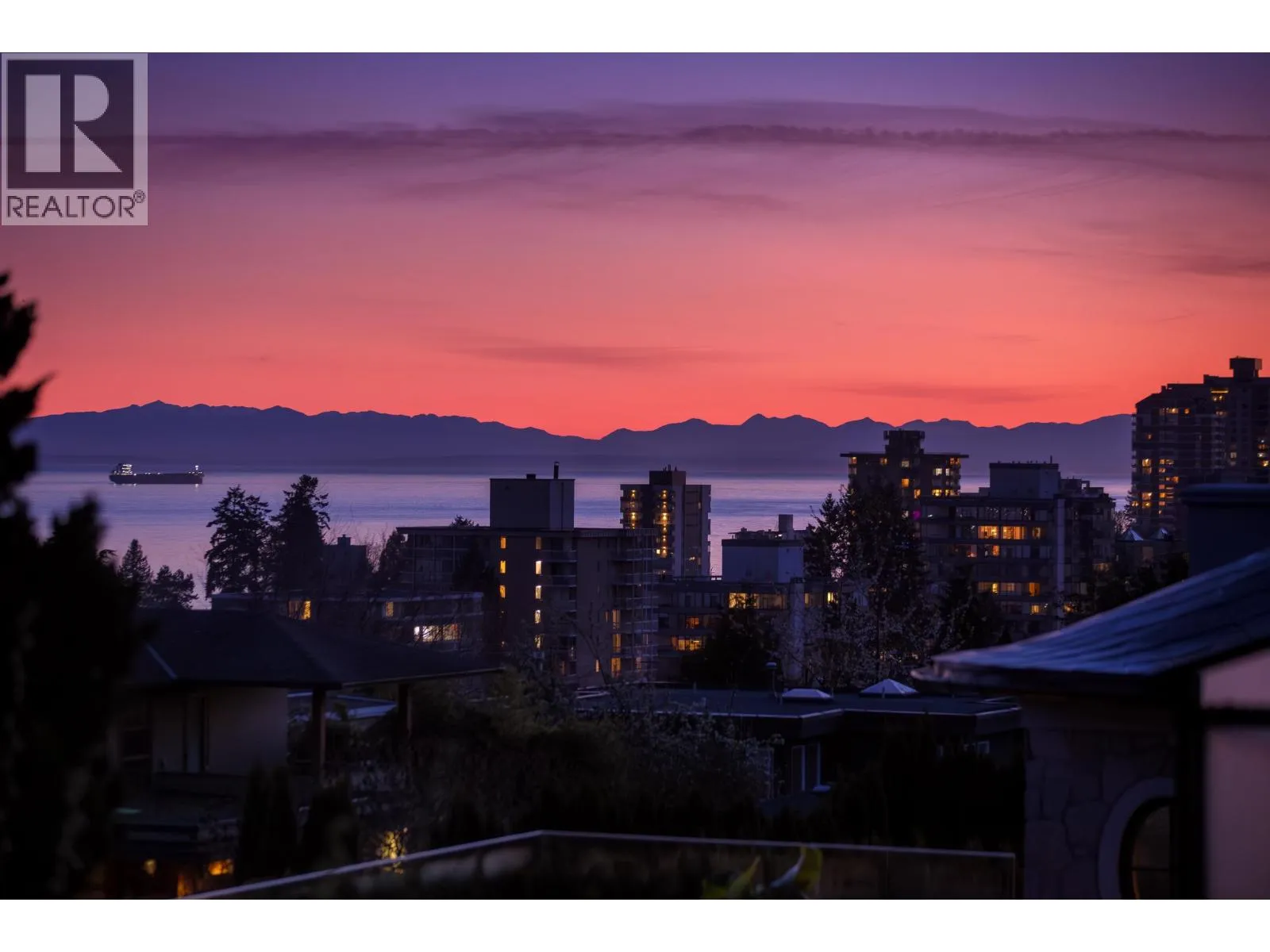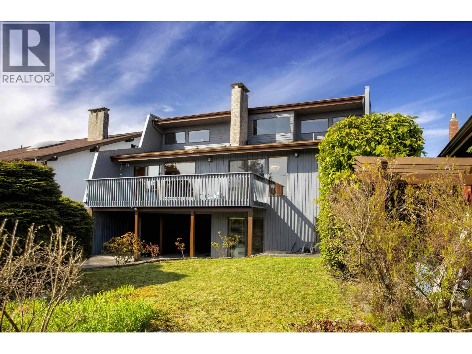 This authentic 1970s West Coast Contemporary is rich in architectural character and lifestyle appeal, positioned to capture beautiful outlooks from a sun-filled flat property toward Burrard Inlet and the Vancouver skyline. Dramatic A-frame inspired rooflines, exposed beams, a striking open-riser staircase, and a spacious main-level deck create seamless indoor-outdoor living with exceptional volume and light. Lovingly maintained with permitted updates in the early 2000s, the home retains its original design integrity, including vintage kitchen and bathrooms, warm cedar accents, and clean-lined details true to its era. Flexible layout with suite rough-ins below and main floor laundry rough-ins. Set on a bright, level 7,500 sq.ft. property ideal for families, with a rare ~500 sq.ft. lane-access carport (4 vehicles). Steps to Ambleside Beach, Park Royal, schools, and amenities. (id:27476)