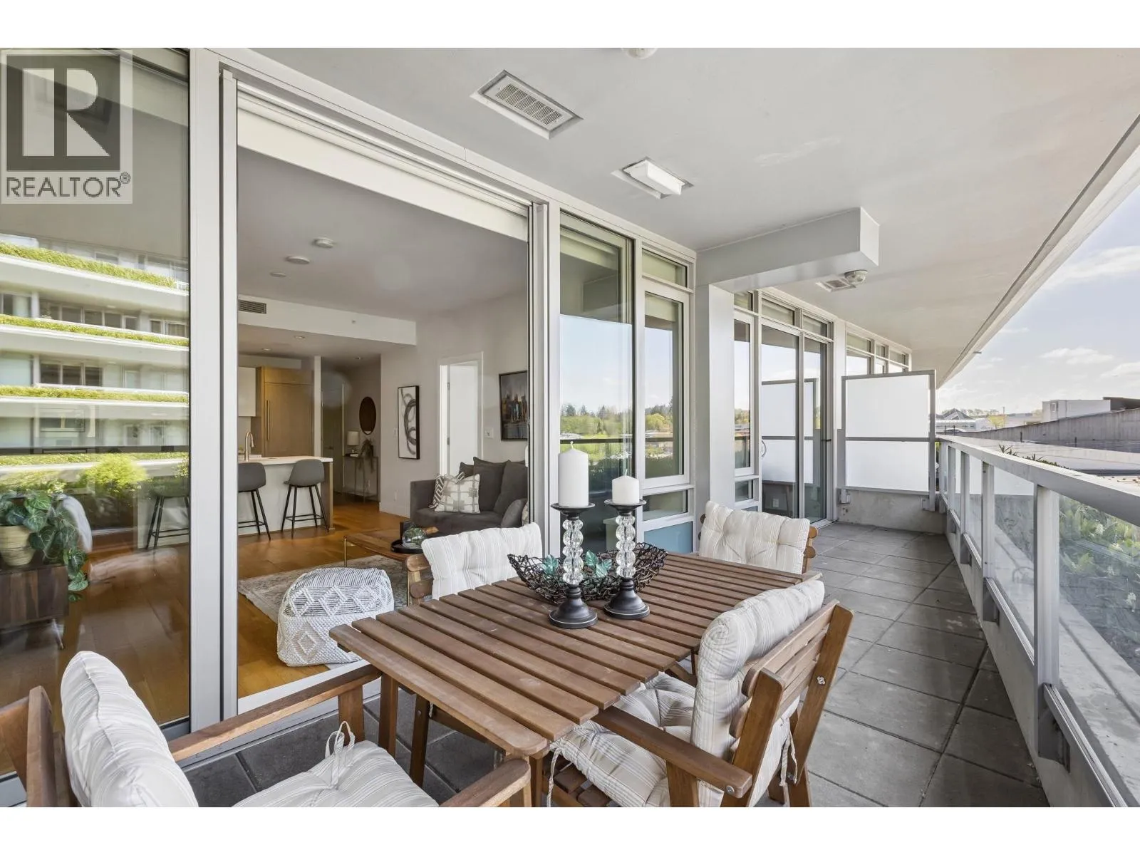 Welcome to Evelyn in Park Royal. This luxurious concrete 2 BED, 2 BATH & DEN (can be 3rd bed) features an open floor plan with higher ceilings & an expansive covered TERRACE, perfect for soaking up sun & Lions Gate views. The gourmet kitchen is a CHEF'S DREAM, fully equipped with premium SubZero & Miele appls, gas cooking & centre island while A/C, eng hardwood & an inviting foyer make entertaining effortless. Retreat to a primary suite w/ample storage & a spa inspired ensuite w/dbl sinks & heated travertine flrs. Enjoy a well equipped fitness centre, steam/sauna, lounge & guest suites. Steps to Park Royal North for groceries, shopping, dining w/easy access to Hwy 1, Lions Gate Bridge, Ambleside or an easy 1.5 hr drive for a weekend in Whistler. 1 parking & oversized locker. (id:27476)