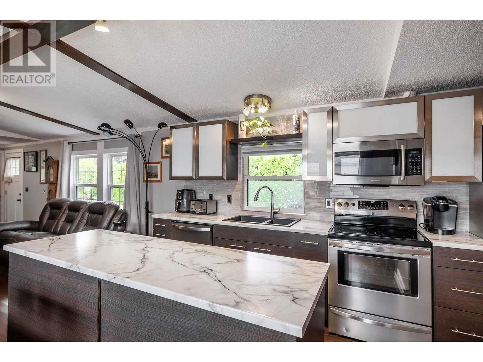 THIS IS ONE OF THE NICEST MOBILE HOMES YOU WILL FIND! This corner lot home features over $80,000 of newer upgrades including a gorgeous kitchen and tiled bathrooms, rich hardwood throughout, brand new fridge, newer siding and trim, new eavestroughs, new PEX plumbing in 2022, just to name a few of the upgrades. This is all tied together by an elegant color/ design theme from inside to outside. If you are looking for privacy, it is hard to beat this large fully fenced and fully irrigated corner lot with a lush cedar hedge surrounding the perimeter, and enjoy your morning coffee on the fully covered and private 300 square foot deck. Room to park 2 vehicles in front and even comes with a garden shed. Extremely well kept, absolutely nothing to do but to move in and enjoy your new home! Roof was done in 2017. (id:27476)