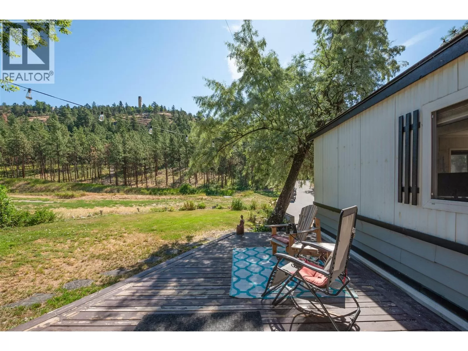 Great Location! This inviting 2-bedroom, 2-bathroom home offers a fantastic opportunity for comfortable and affordable Okanagan living. Step inside this updated (2015) double-wide mobile home, ideally situated in a well managed family park in West Kelowna, where pets are welcome, too! One of the standout features of this home is its generous pad area, creating a truly park-like setting. Image enjoying your mornings on the large covered deck surrounded by green space. This outdoor space is perfect for gardening, dining, relaxing and perfect for kids and pets, too! (One dog and two cats, with park approval and no restrictions on dog breeds or size. No vicious or dangerous dogs allowed. Enjoy the convenience of being just minutes from shopping, restaurants, Okanagan Lake beaches, walking/hiking trails, wineries, a golf course, transit, schools. All the amenities for everyday life. Call today to book a tour and make your move. (id:27476)