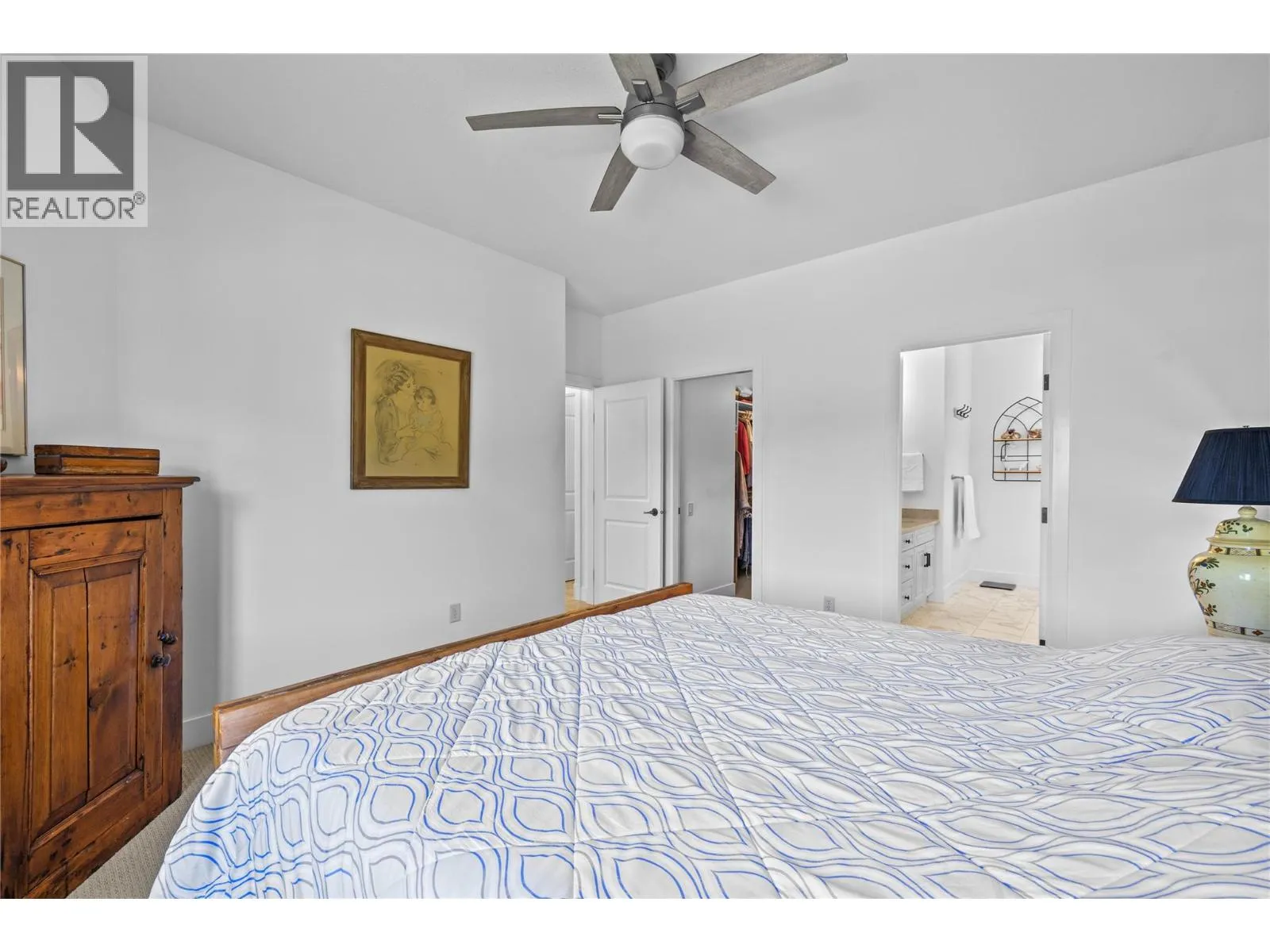 Welcome to carefree living in Sonoma Pines, one of West Kelownaâs most desirable gated communitiesâjust minutes to golf, wineries, shops, and dining. This beautifully renovated walk-out rancher combines comfort, style, and functionality with captivating views of Okanagan Lake and surrounding mountains. The chef-inspired kitchen features new stainless steel appliances, sleek quartz countertops, modern lighting, and a spacious island ideal for hosting. An open-concept main floor filled with natural light flows to the generous upper deck with awning, the perfect spot for morning coffee or evening wine. The spacious primary suite includes a custom walk-in closet and updated en-suite with dual quartz vanities. A functional den, laundry, and easy garage access complete the main level. Downstairs is ideal for guests, teens, or in-laws with a second primary bedroom featuring its own en-suite and walk-in, plus a third bedroom, full bath, and large rec room. Enjoy outdoor living with a covered lower patio and low-maintenance landscaping. Parking is effortless with a double garage, golf cart bay, and space for three more vehicles. Sonoma Pines offers a clubhouse, fitness center, and social events, creating a true sense of community. Whether youâre downsizing without compromise or seeking a move-in ready family home, this property checks every box for Okanagan living at its best. (id:27476)