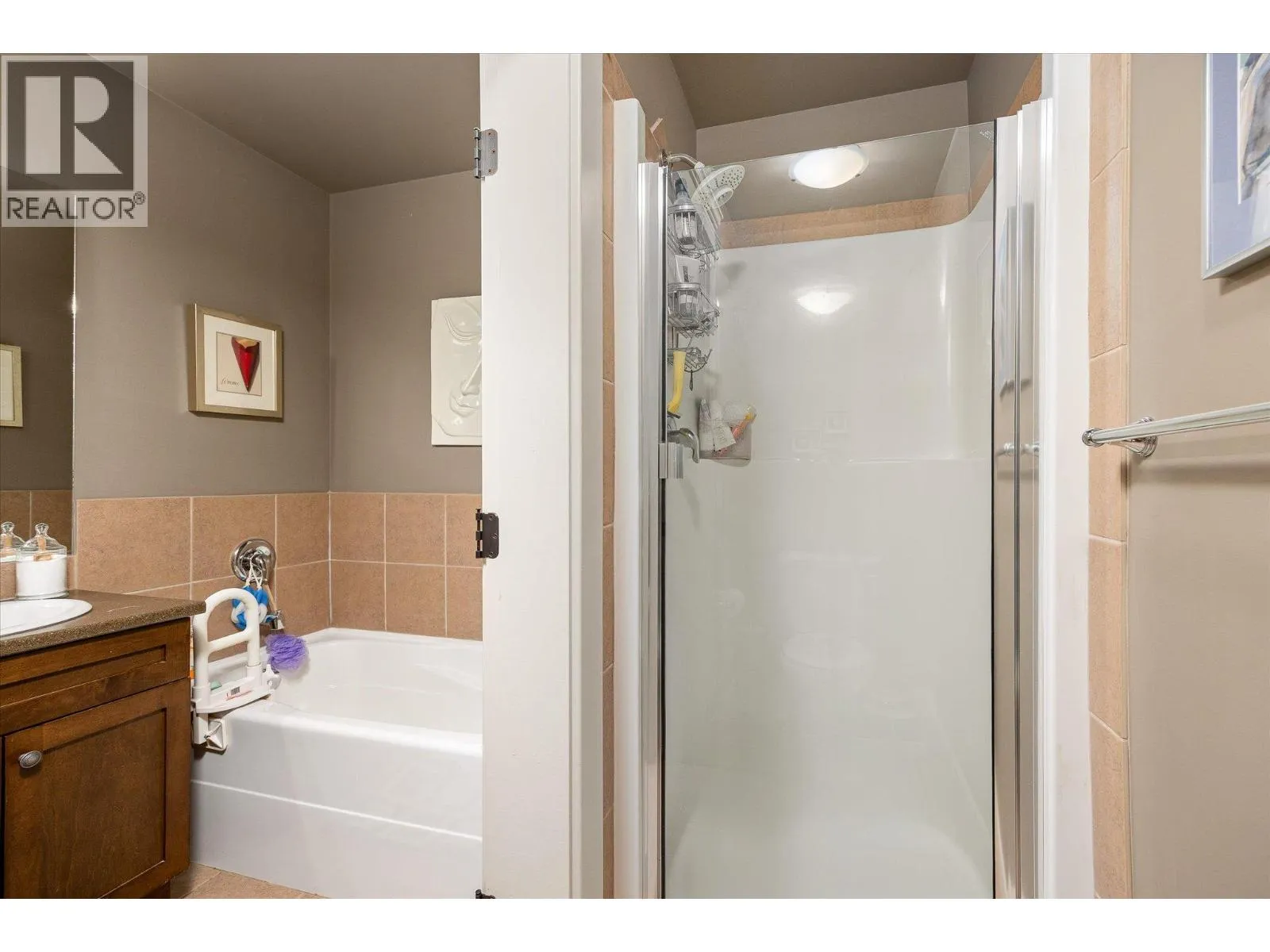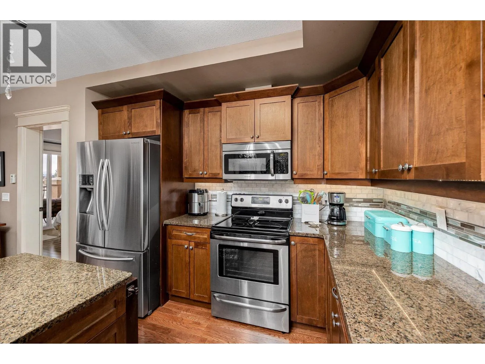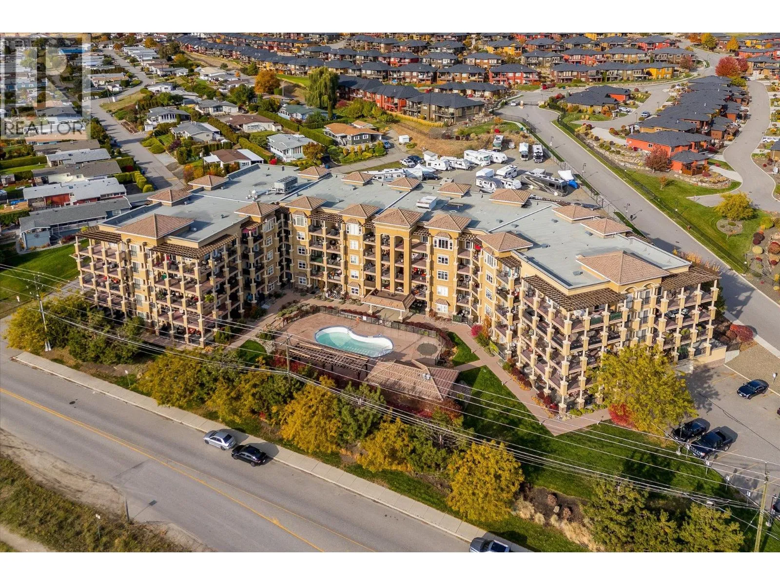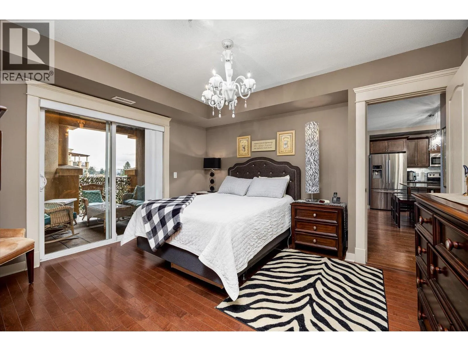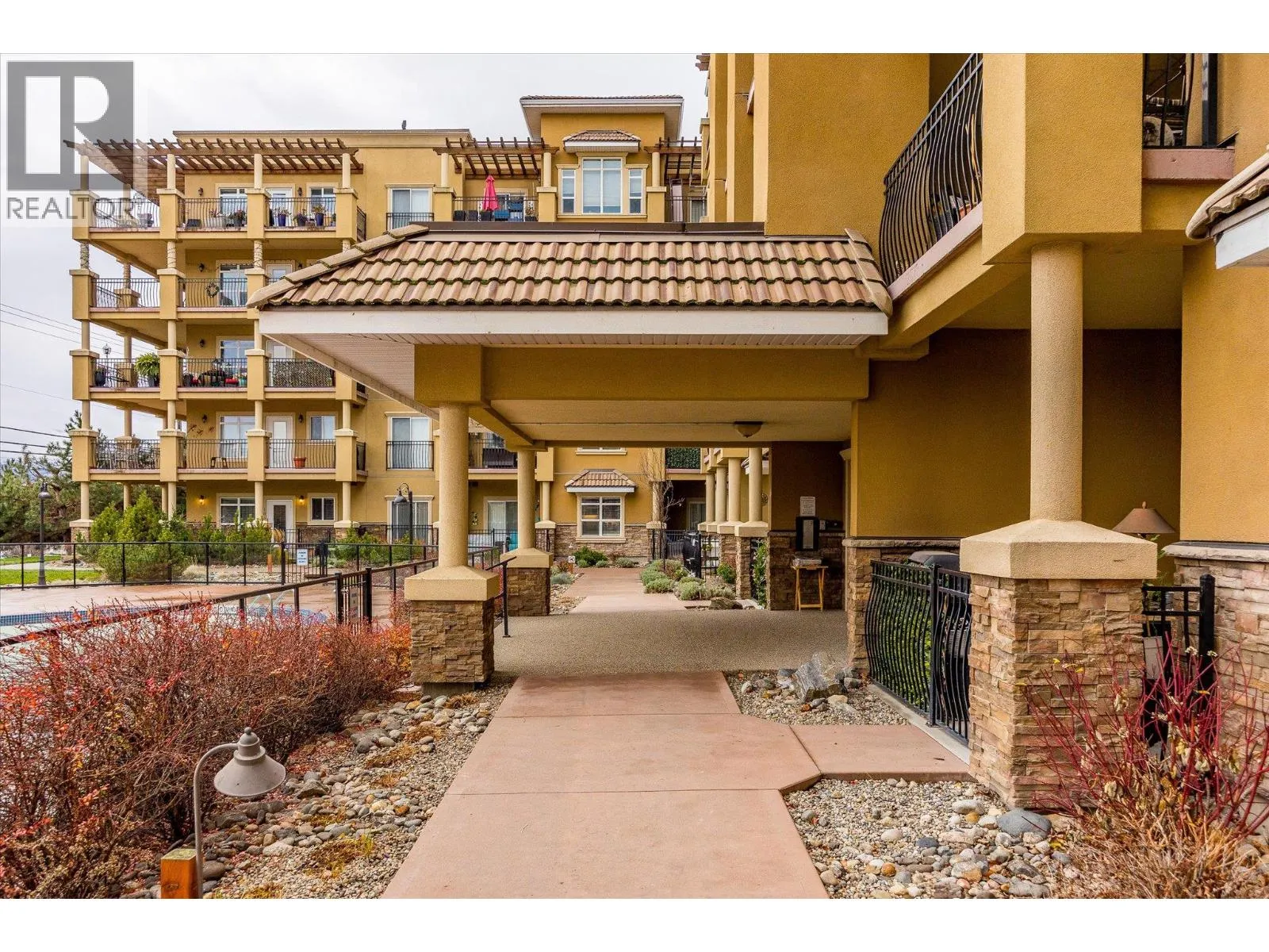 Experience panoramic lake and mountain vistas from this refined fourth floor condo, thoughtfully designed for comfort, luxury, and privacy. Gleaming hardwood floors run throughout the bright, open-concept living area, anchored by a sleek gourmet kitchen with stainless steel appliances, granite countertops, and a large bar island thatâs perfect for both entertaining and everyday living. The highly sought-after dual primary layout offers exceptional flexibility, with two spacious bedrooms, each featuring its own walk-in closet and spa-inspired ensuite. A versatile den and third full bathroom provide ideal space for a home office, media room, or guests. Indoor living flows seamlessly onto two private decksâhost gatherings on the main deck overlooking Okanagan Lake, or relax on the second deck framed by tranquil mountain views. Additional highlights include secure underground gated parking and a generous storage locker. Situated on the renowned Boucherie Wine Trail, youâre just minutes from wineries, beaches, golf, and all Westbank amenities. This is Okanagan living at its finest. (id:27476)