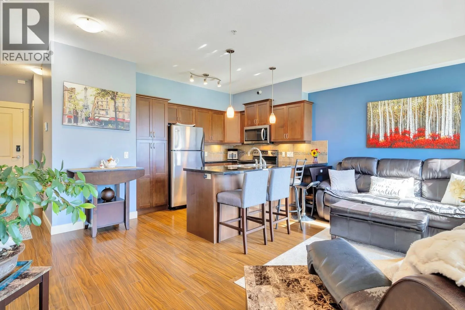Live on the Fairway at Two Eagles - Hereâs your chance to own a piece of the Okanagan lifestyle without breaking the bank. This 1 bedroom with a den is set directly on the renowned Two Eagles Golf Course, offering front row views of the 8th holeâyet priced as one of the most affordable options in the area. Inside, youâll find a bright, open-concept layout designed for everyday comfort suitable for a single person or couple. The large kitchen flows into the living and dining space, while oversized windows frame the lush greens right outside your patio door. Itâs the perfect spot to relax with a morning coffee or unwind after a day on the course. The primary bedroom provides a cozy retreat, with access to the bathroom from either the bedroom or main living space. The den is a true bonus offering a large enough space to double as a home office/ guest room or store bikes, sports gear, or seasonal items. 1 underground parking stall and storage locker is allocated to this unit giving you peace of mind for security. Just outside your door, everyday convenience & golf is at your fingertips - restaurants and grocery stores within minutes, with shopping and professional services close by to make errands a breeze. For leisure, youâre only a short stroll from fitness studios, local wineries, and the lakefront! Enjoy golf right outside your door and appreciate the ease of low-maintenance condo living. Pets allowed. No PTT. Lease monthly payment of $202.71 (id:27476)