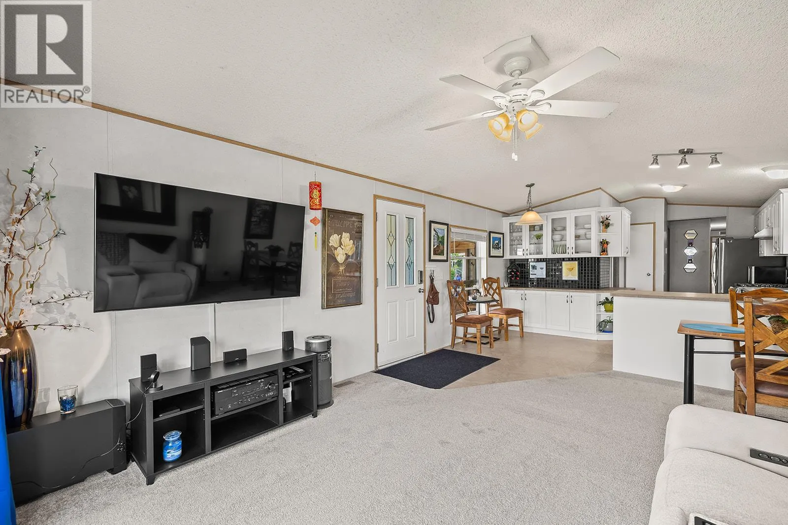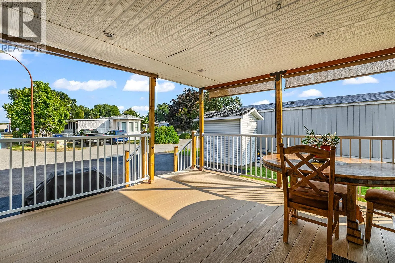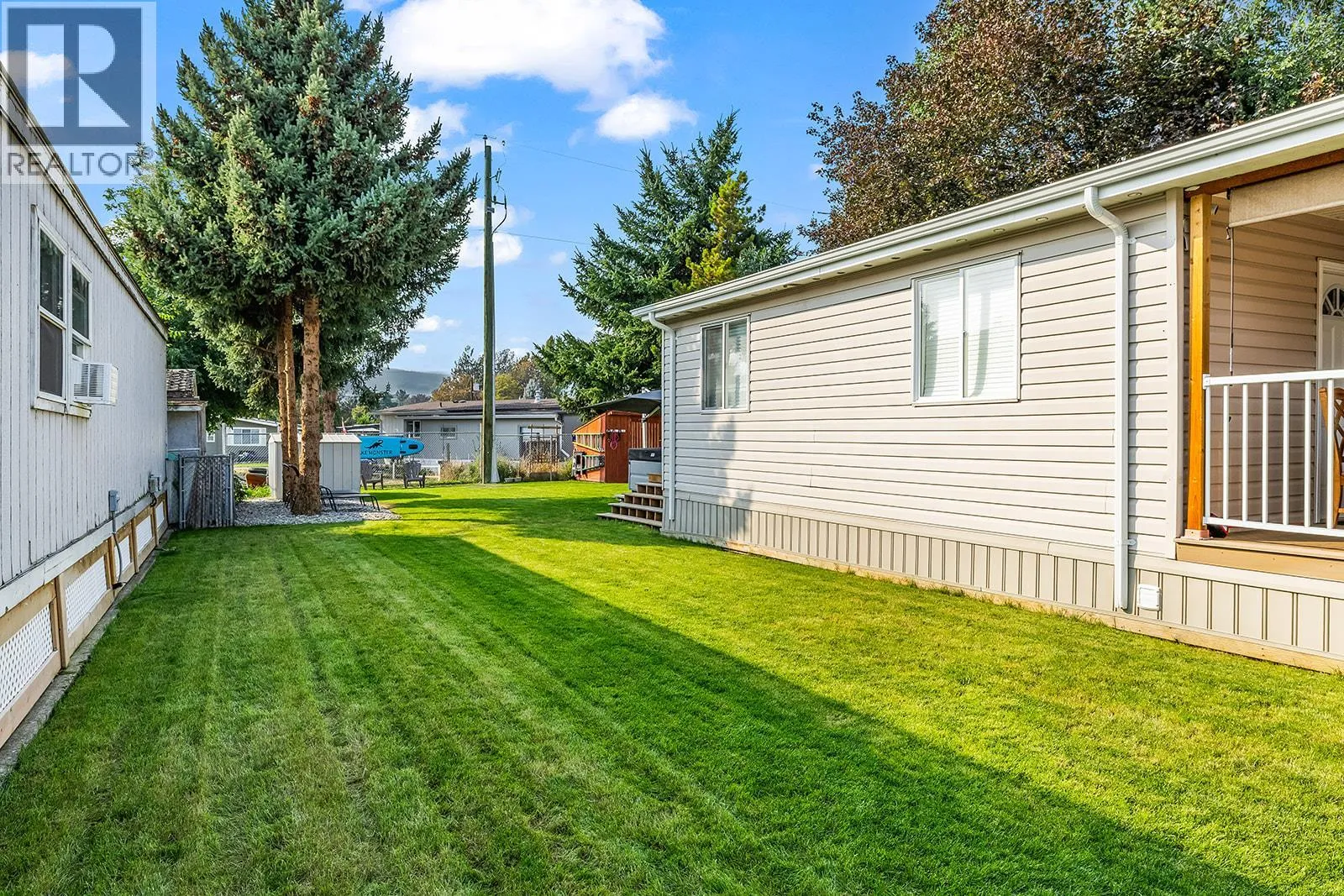 Meticulously maintained home in sought-after Jubilee Park, just a short stroll to the lake and private beach. This bright and inviting residence features 3 bedrooms plus a versatile denâperfect for a home office or flex space. Recent updates include a 4-year-old AC system, newer high-end appliances (fridge, gas stove, dishwasher), ensuring comfort and convenience. The thoughtfully designed layout offers a bright, airy feel with plenty of natural light. Outdoors, enjoy low-maintenance living with synthetic front lawn, an irrigated backyard oasis, and a durable rubberized parking pad with room for two vehicles. Entertain or unwind on the expansive TimberTech deck, soak in the luxury Jacuzzi spa, and take advantage of two storage sheds. All electrical has been inspected and is up to date for added peace of mind. With all homes in the community owner-occupied, Jubilee Park offers a friendly, secure environmentâperfect for those seeking a relaxed Okanagan lifestyle. Newer hottub & 2 storage sheds included. FLEXIBLE CLOSING DATE. Park requirements: Minimum 730 credit score, no dogs (cats permitted if neutered and kept indoors). Park approval requires a minimum of 10 business days. (id:27476)