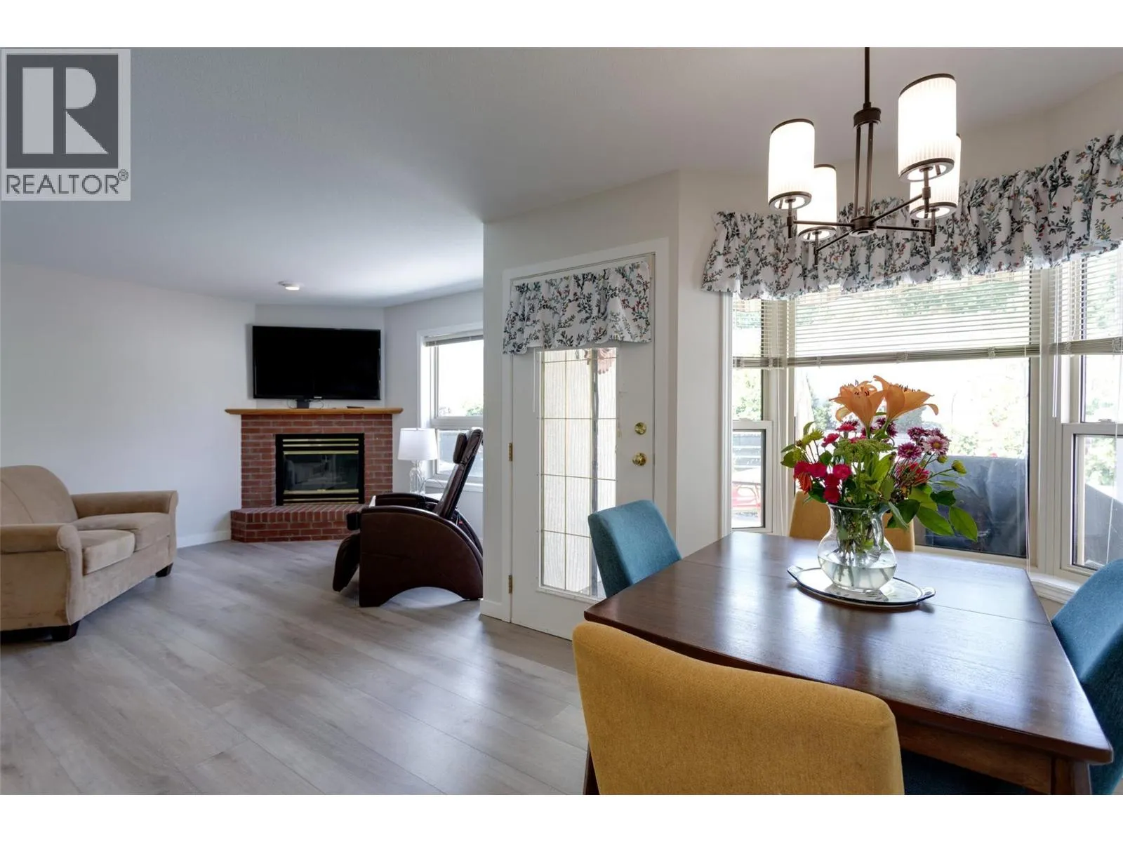 PRE-PAID LEASE! Welcome to Sun Village, a desirable 45+ gated community in the heart of Westbank. This bright and spacious 2-bedroom, 2-bath rancher offers comfortable living with a thoughtful, wheelchair-accessible layout throughout. Step inside to find large windows, 3 skylights, and tasteful updates including laminate flooring, baseboards, trim, light fixtures, and fresh paint (2023). The kitchen features a newer fridge and gas range, and the cozy living room is highlighted by a gas fireplace. The primary suite includes a jetted safety tub, a walk-in closet, and an ensuite designed for accessibility. Additional features include a double garage, bay window breakfast nook, and an 8â covered patio awningâperfect for enjoying summer BBQs rain or shine. The roof, furnace, and hot water tank were replaced approximately 8â9 years ago. Sun Village residents enjoy fantastic amenities: a clubhouse, indoor pool, hot tub, pool tables, library, gym, communal kitchen, and event rental options. Centrally located and walking distance to groceries, pharmacies, restaurants, and shopsâyouâll love the convenience and community feel. Pets: Up to 2 dogs permitted with a height restriction of 20â. All pets must be approved by the strata. Quick possession available. (All measurements from iGuide.) DOES NOT BACK ON TO BUTT RD. (id:27476)