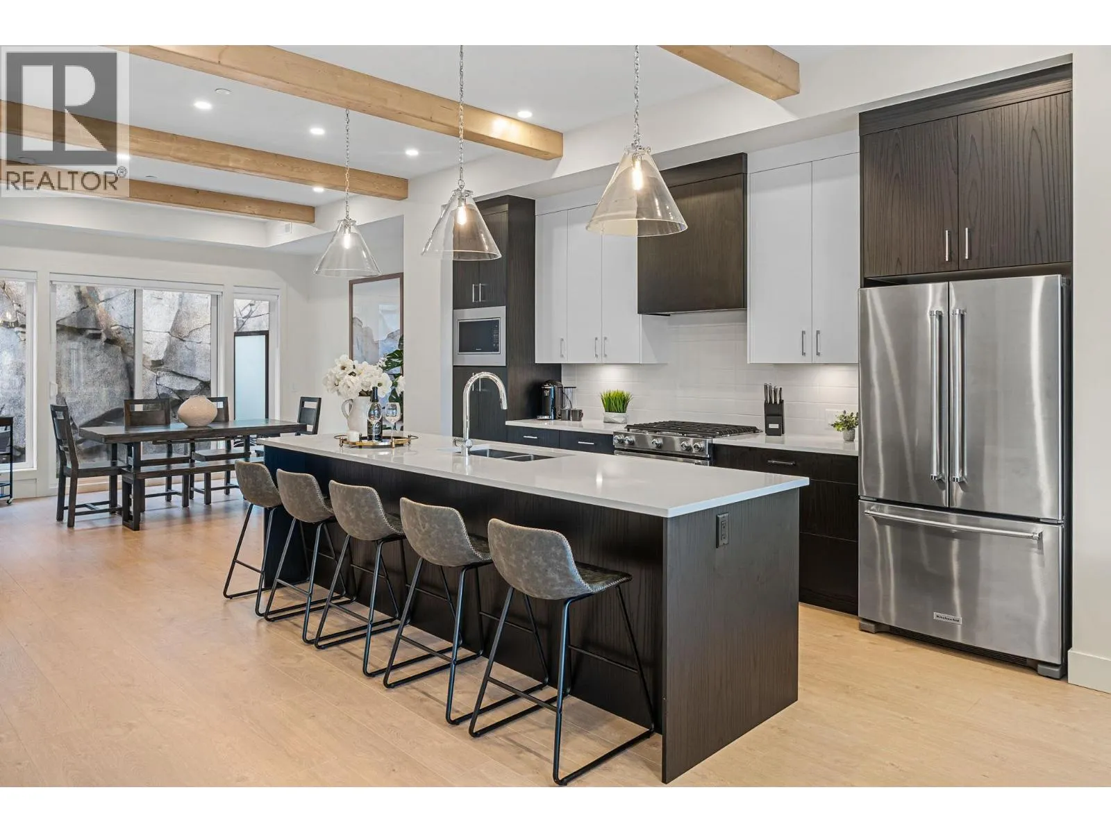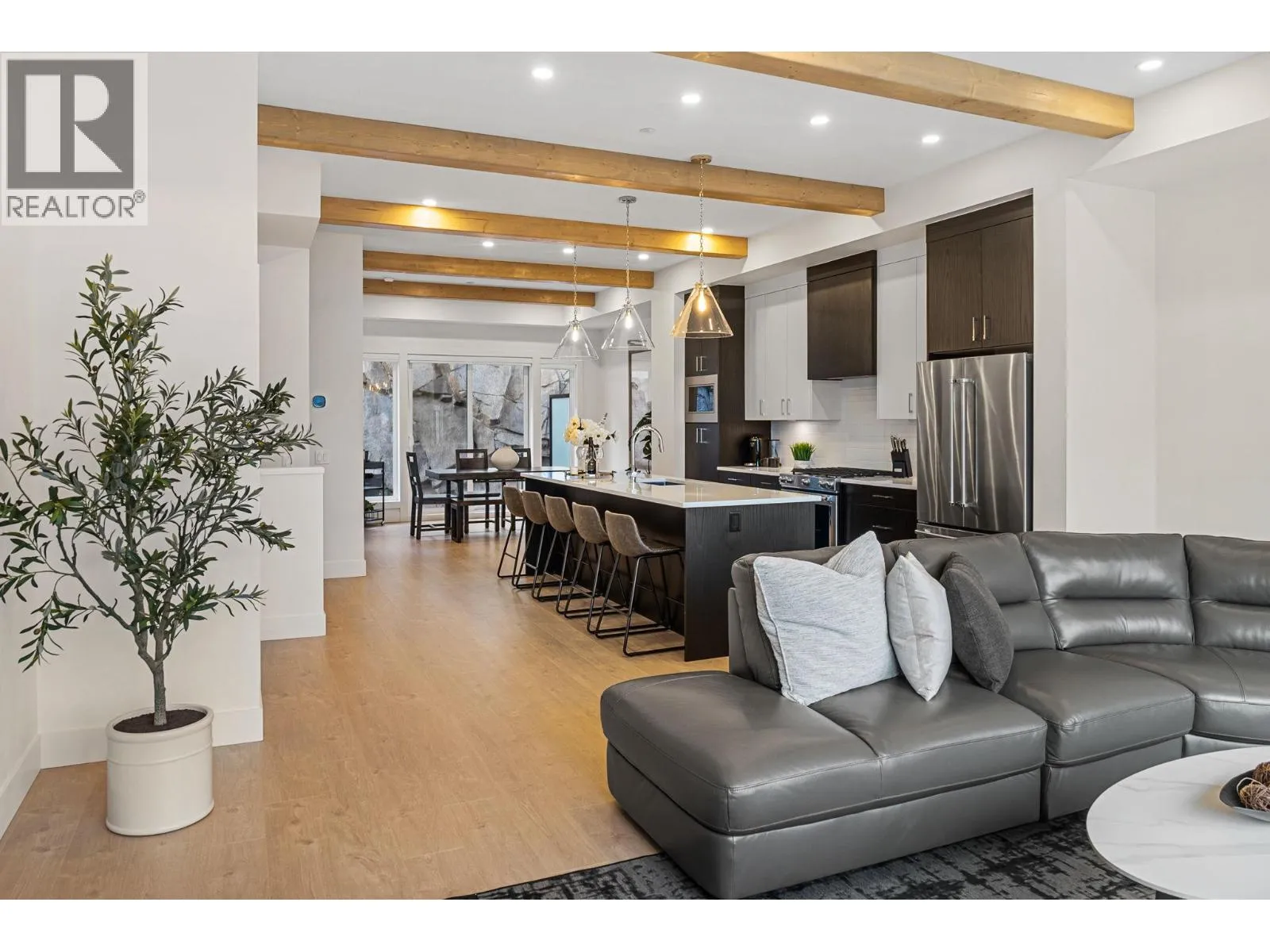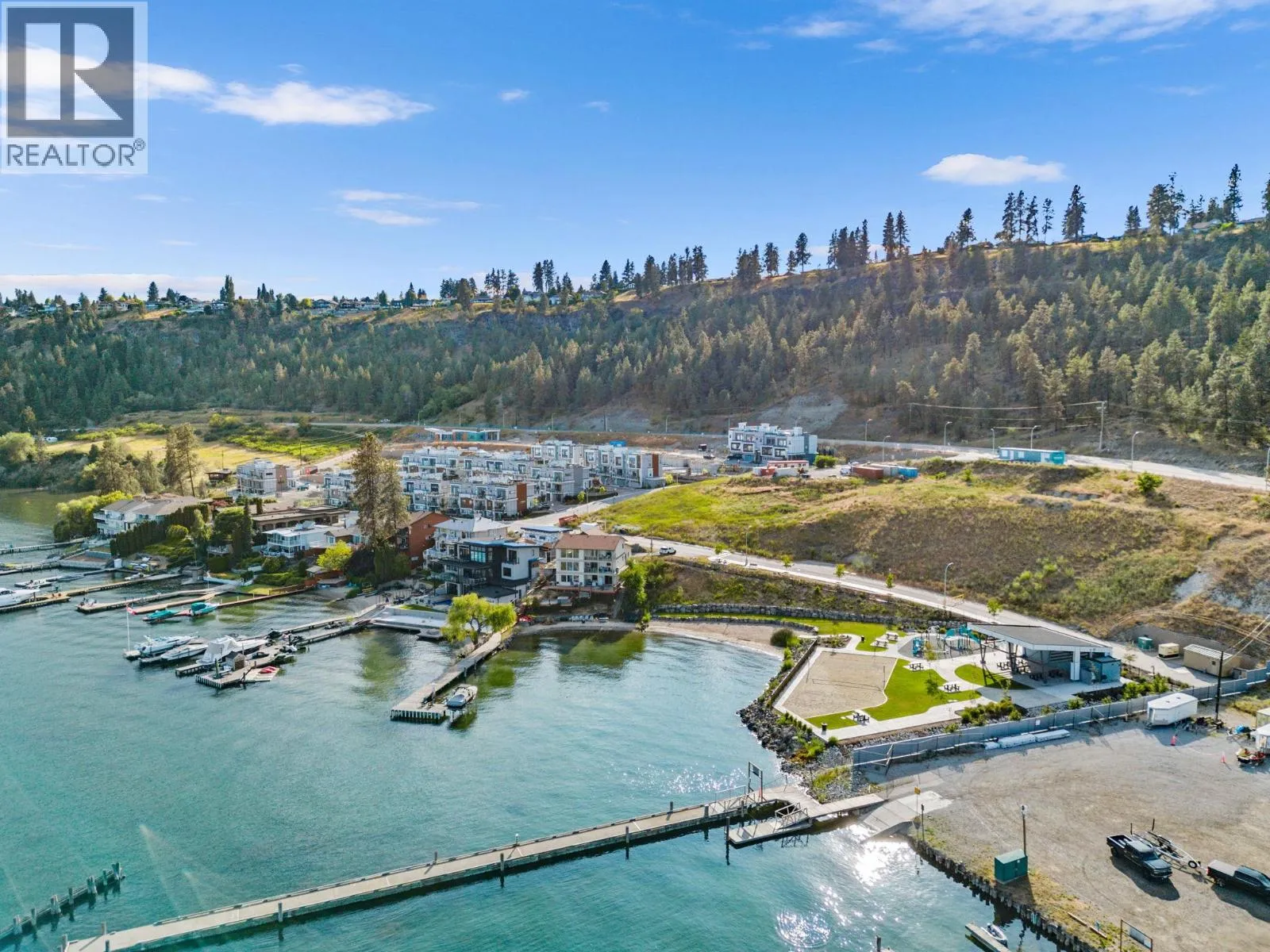 TURN KEY, FULLY FURNISHED, SHORT TERM RENTAL FRIENDLY, NO GST, NO PROPERTY TRANSFER TAX AND NO SPECULATION TAX!!! This is one of those opportunities thatâs worth taking a closer look at: a near lakeside townhome with luxury finishings, offering refined modern living with stunning lake views from every level, while being located just minutes from downtown Kelowna. With one of the most desirable layouts in the complex, the U1 plan features 5 bedrooms PLUS a flex room, with a private elevator taking you between each of the 4 levels. Some notable features include an extra-wide layout, side-by-side double garage, open-concept design with exposed wood beams, private rear patio, high-end appliances and finishes throughout, and of course, a private roof top terrace. The terrace provides the perfect setting for entertaining with panoramic lake views, and is complete with a hot tub and built-in outdoor kitchen. Shelter Bay has quite the amenities: A private waterfront park is nearby, with a sandy beach, childrenâs playground, beach volleyball, a beach pavilion and picnic area as well as a wharf that is to be built. Once completed, the amenities centre will include a pool, hot tub, theatre, golf simulator, gym and open air sundeck on the upper level overlooking the lake, with a lower level complete with a lounge area, games room, and second sundeck. Upgrades to this townhome include a roof top built in BBQ and kitchen, hot tub, epoxy garage flooring & EV charger. (id:27476)