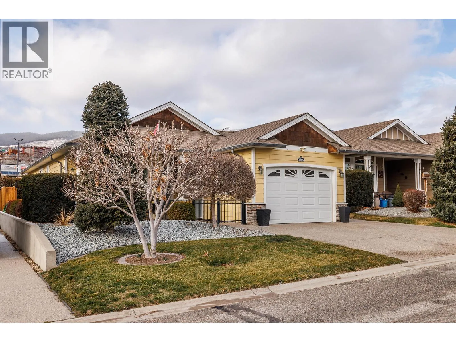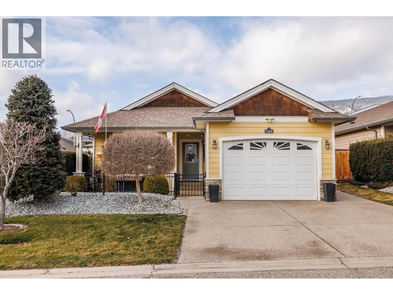 Located in the much sought after community of Sage Creek. A vibrant 45+ gated community, centrally located, close to shopping and recreation. This two bedroom plus den, two bath rancher with oversize garage is bright and open. Great curb appeal with an aluminum railed large front veranda and exposed aggregate driveway and sidewalk. Situated on a concrete crawl space, this one level living is ideal for retirement living! Enjoy your private back and side yard, with an enormous 40x9 no step aggregate concrete patio, perfect for entertaining. The spacious kitchen features an kitchen island with breakfast bar and plenty of counter and cupboard space. The kitchen overlooks the great room with bright and roomy living and dining room areas. Two good sized bedrooms, a smaller den/office and 1 ensuite and bathroom, and mudroom/laundry complete this well laid out floorplan. Many recent updates include newer vinyl plank flooring, stainless steel appliances only 5 years old, including a gas range, 220 power upgrade to the garage, new patio French doors and upgraded pot lights. This home is truly move in ready! Book your showing today! Electric Fire Place and TV brackets not included. (id:27476)