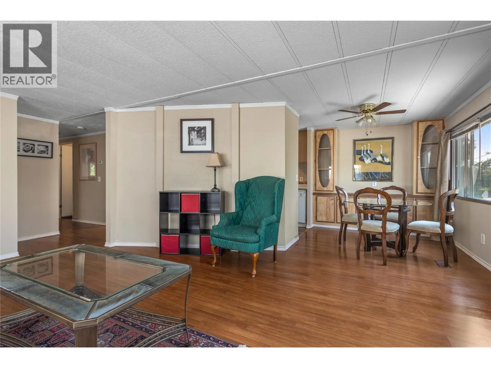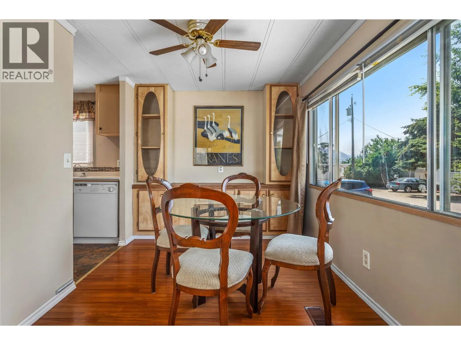 Tucked away in a quiet, beautifully maintained park, this charming double-wide home offers an ideal mix of tranquility and convenience. Backing onto a gentle creek, the peaceful setting is surrounded by nature, creating a truly relaxing atmosphere. Inside, the well-designed floor plan features 2 comfortable bedrooms, 1 bathroom, and a bright, open-concept kitchen and living space that feels both spacious and inviting. Step outside to your own private backyard retreat, complete with multiple planter boxes for gardening enthusiasts and a mature cherry tree that provides both shade and character. Just minutes from the lake, renowned wineries, and two exceptional golf courses, youâll enjoy having some of the areaâs best amenities right at your doorstep. Situated in a friendly 55+ community, this home offers the perfect opportunity to embrace a quiet, low-maintenance lifestyle in a wonderful setting. (id:27476)