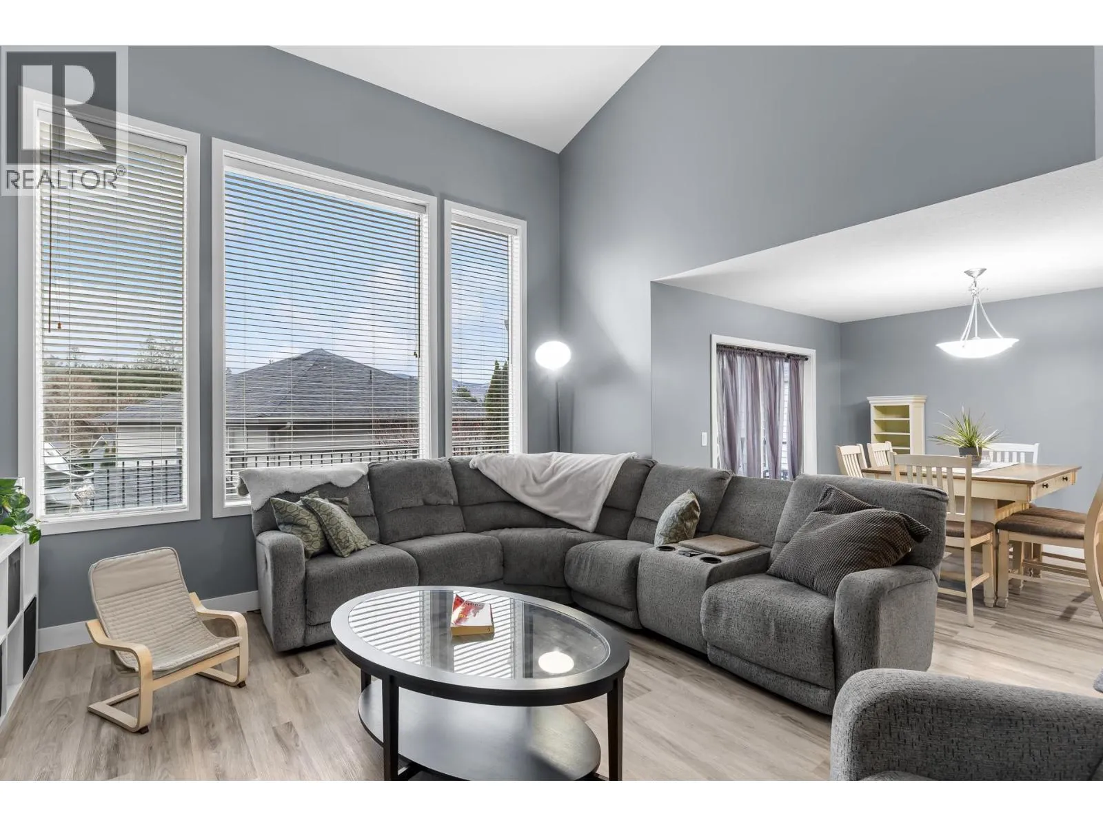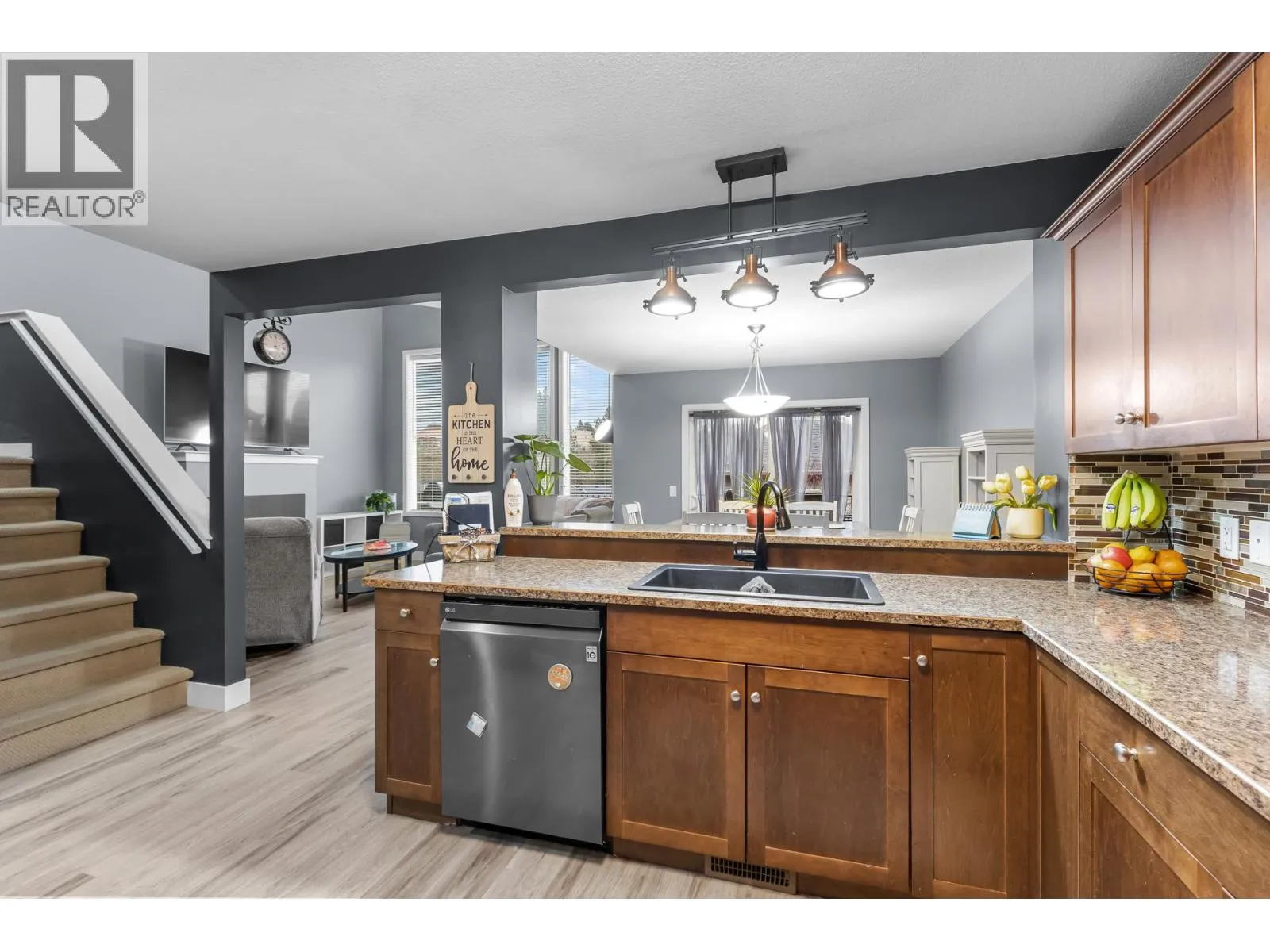 This affordable 4 bedroom move-in ready home is thoughtfully laid out with a generous and versatile floor plan. As you step through the ground level entry and foyer, you will find the main level to be light and inviting with expansive windows, 17ft vaulted ceilings, and open concept living. The spacious kitchen, living, and dining areas are a dream for entertaining. The second level features all three bedrooms, an ideal layout for families. In the fully finished walkout basement you will find a handy 1 bedroom in-law suite with a separate entrance. The home is found in Crown Town, a family and pet friendly community just 15min away from downtown Kelowna, near to award winning Two Eagles Golf Course, and minutes away from the beaches of Okanagan Lake, schools, hiking trails and other amenities. With low strata fees and no Property Transfer Tax it is the perfect place to call home for savvy investors and first-time buyers. (id:27476)