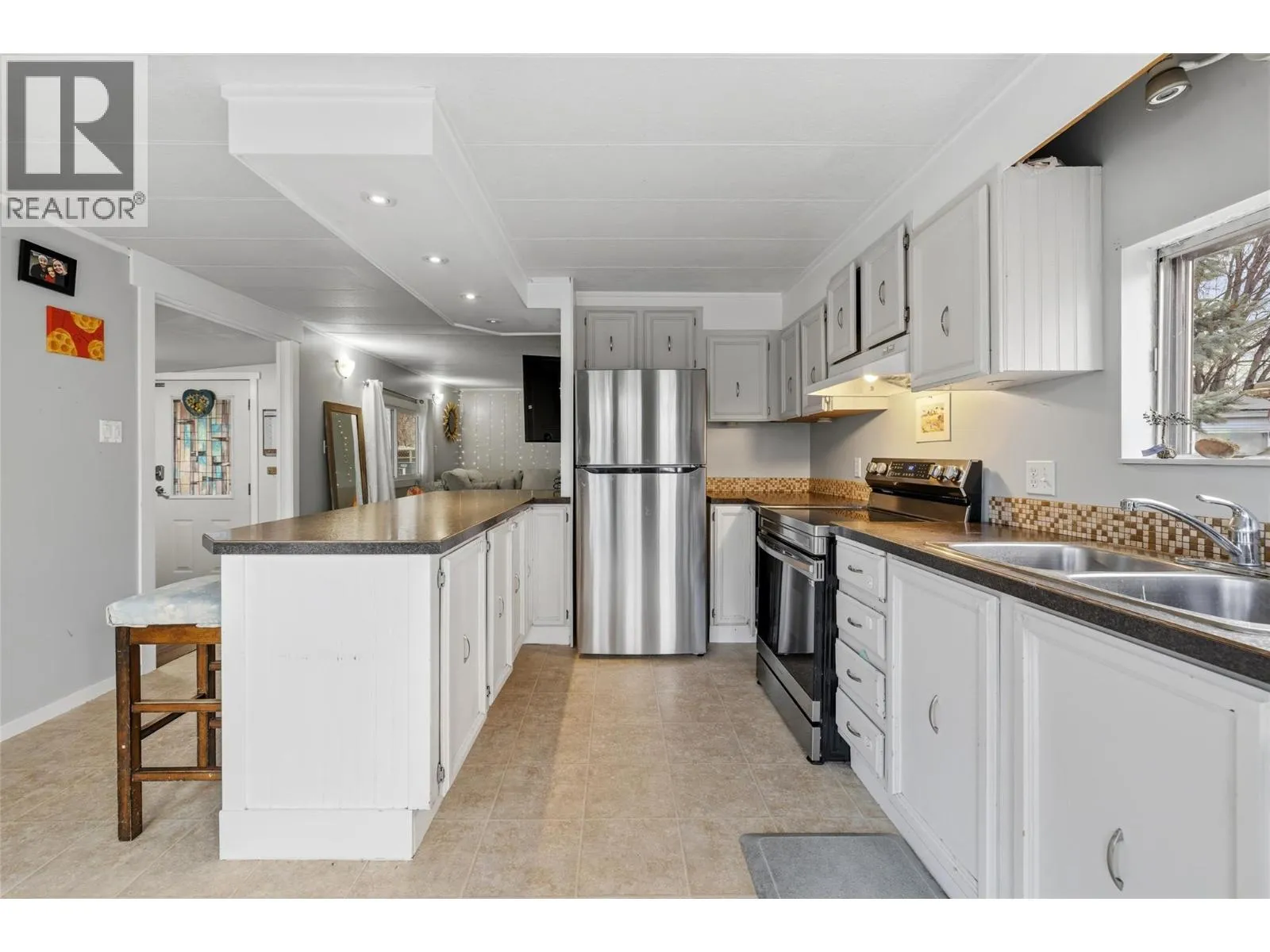 Welcome to easy Okanagan living just steps from the lake. Located in a family-friendly Westbank First Nations leasehold park in West Kelowna, this well-kept 3-bedroom manufactured home offers a blend of comfort, updates, and outdoor enjoyment â with lake views right from the kitchen sink. Inside, the home has been thoughtfully updated with drywall, recessed lighting, laminate flooring, fresh paint, and upgraded stainless steel appliances that give the space a clean, modern feel. Important improvements include a furnace replaced in November 2024, fridge replaced this year, stove replaced in 2024, wood-burning stove replaced in 2022, and most windows replaced in 2023 â offering peace of mind for the next owner. Outside, youâll love the private fenced yard, charming pond, 10 x 12 Hobby shed and ample parking with room for oversized vehicles. Whether youâre enjoying your morning coffee with a glimpse of the lake, relaxing in the backyard, or taking a short stroll to the water or nearby park, this home offers a lifestyle that is both peaceful and convenient. Priced to sell, this is a fantastic opportunity to enjoy affordable Okanagan living in a welcoming community close to nature and recreation. Please note: no dogs are permitted in the park, and park approval requires a minimum credit score of 730. Check out the listing video here: https://youtu.be/TLDdw6PLtr8 (id:27476)