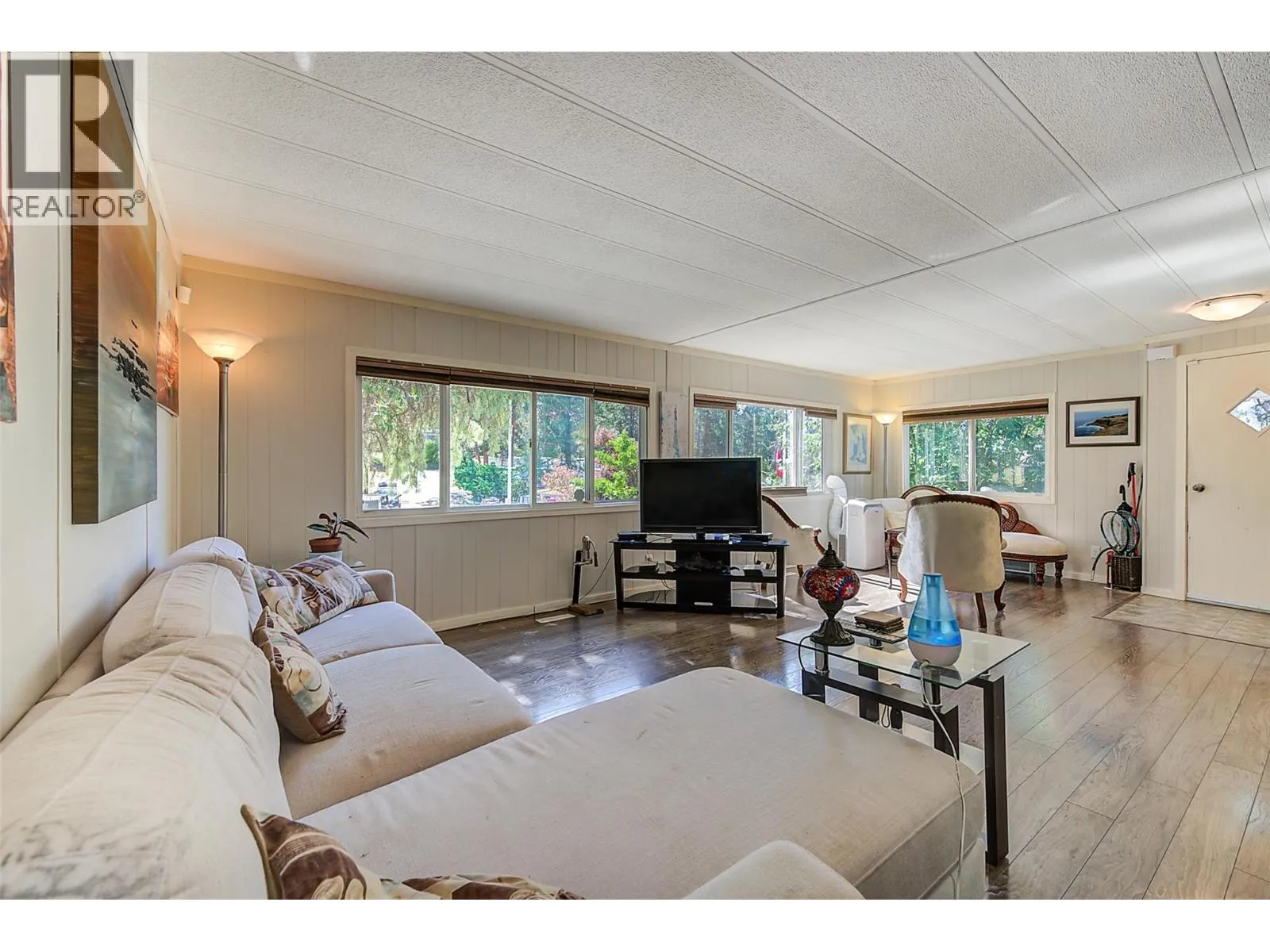 Great Location! This inviting 2-bedroom, 2-bathroom home offers a fantastic opportunity for comfortable and affordable Okanagan living. Step inside this updated (2015) double-wide mobile home, ideally situated in a well managed family park in West Kelowna, where pets are welcome, too! One of the standout features of this home is its generous pad area, creating a truly park-like setting. Image enjoying your mornings on the large covered deck surrounded by green space. This outdoor space is perfect for gardening, dining, relaxing and perfect for kids and pets, too! (One dog and two cats, with park approval and no restrictions on dog breeds or size. No vicious or dangerous dogs allowed. Enjoy the convenience of being just minutes from shopping, restaurants, Okanagan Lake beaches, walking/hiking trails, wineries, a golf course, transit, schools. All the amenities for everyday life. Call today to book a tour and make your move. (id:27476)