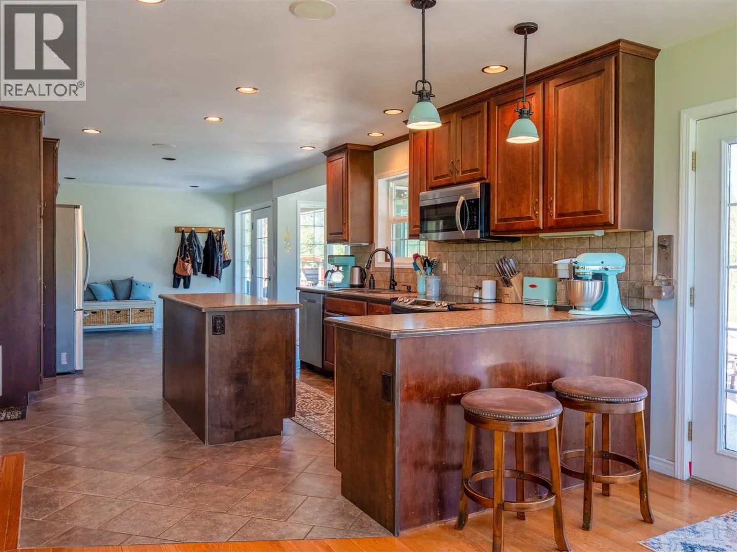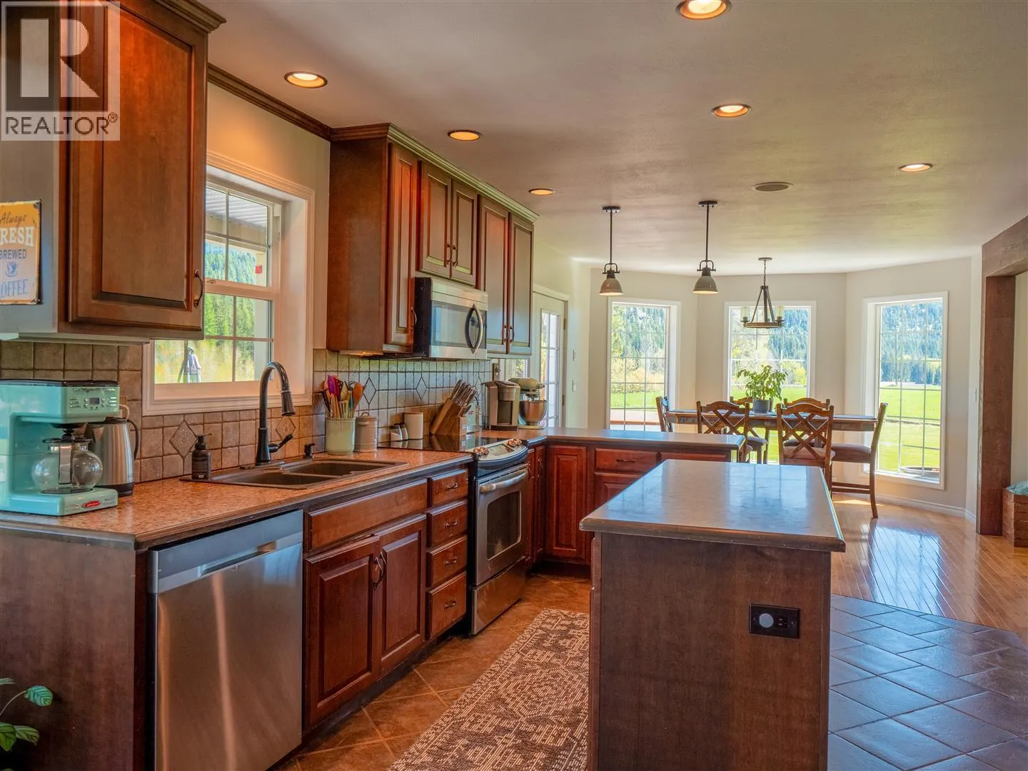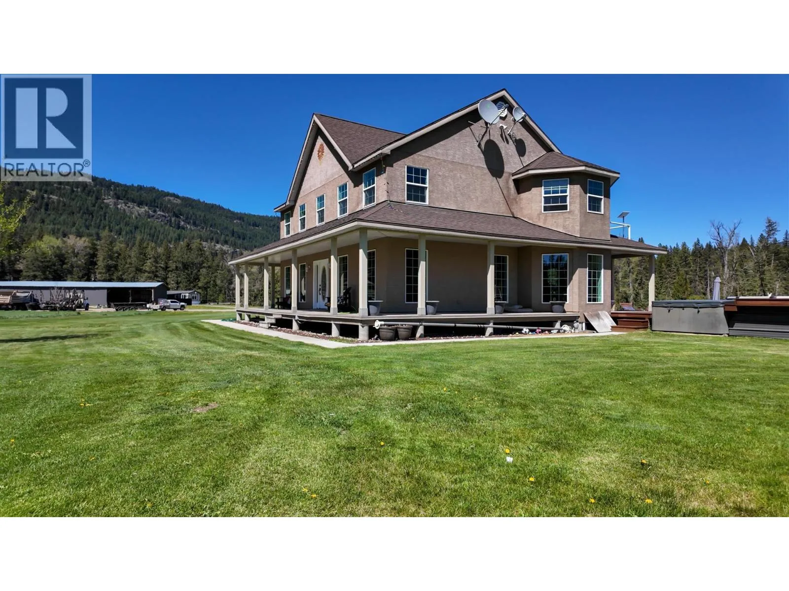 This exceptional property offers two homes, a large garage/workshop, multiple outbuildings, expansive pastures, hay-producing fields, and over a mile of breathtaking Kettle River frontage. Ideal for a multi-family homestead, equestrian retreat, or farming operation, this ALR property has been organic for over 30 years, with 85 acres currently in hay production. The irrigation system includes gravity-fed water and high-volume wells, distributed via wheel and hand lines. The custom 2,600 ft2 primary home features five bedrooms, three bathrooms, an open-concept layout with stunning views, a private balcony, and a basement roughed in for a suite. The second 2,000 ft2 modular home, renovated in 2023, includes four bedrooms, two bathrooms, a fenced yard, a screened deck, and an above-ground pool, generating strong Afrbnb rental income. Outdoor amenities abound, from decks, patios, and hot tubs to a deep swimming hole and prime fishing spots. Additional structures include a horse shelter, hay storage, a large open-air workshop, and chicken coops. The fully fenced agricultural land is divided into irrigated hay fields and pastures. (id:27476)